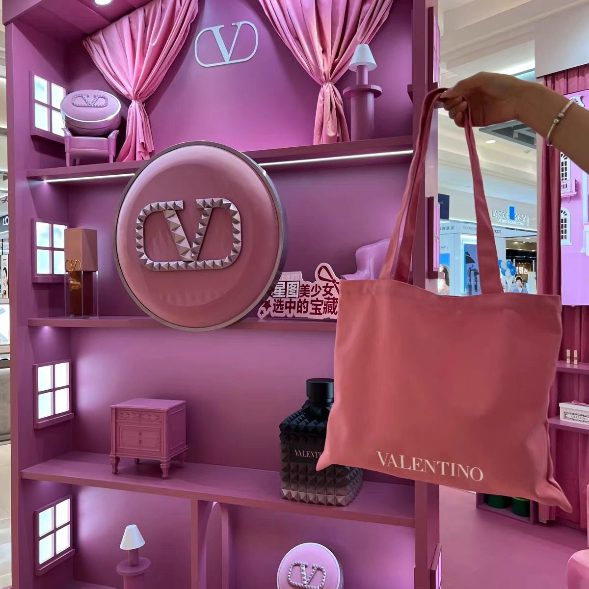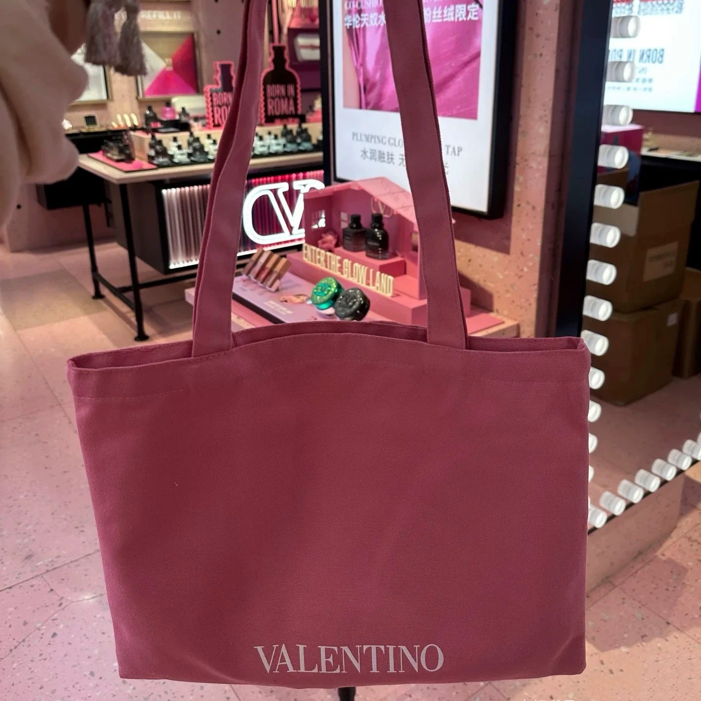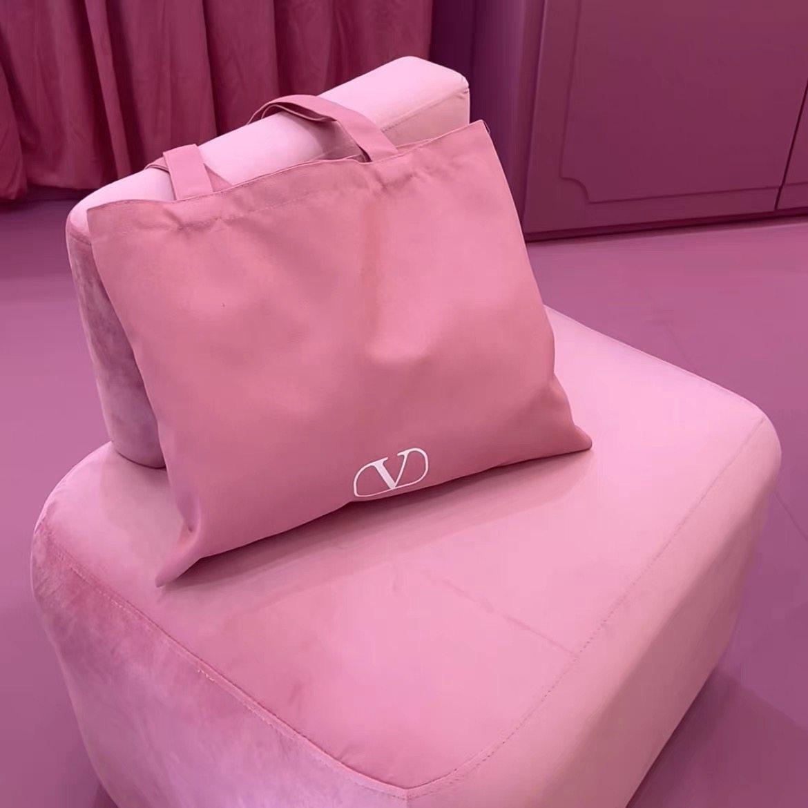 Keep It for Yourself~ Check It Out~ Valentino Pink Tote Canvas Bag, Shoulder Bag, Eco-Friendly Shopping Bag, Large Capacity