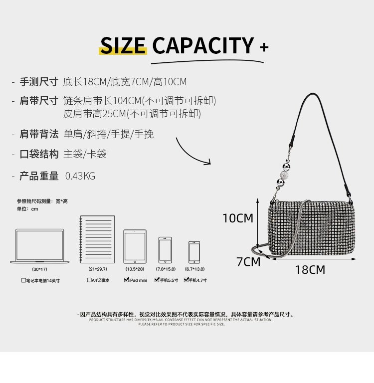Ur Bag for Women, Summer Austrian Rhinestone Small Square Bag, Large Diamond Bag, Versatile Shoulder Bag, Crossbody Bag, Handbag, Underarm Bag