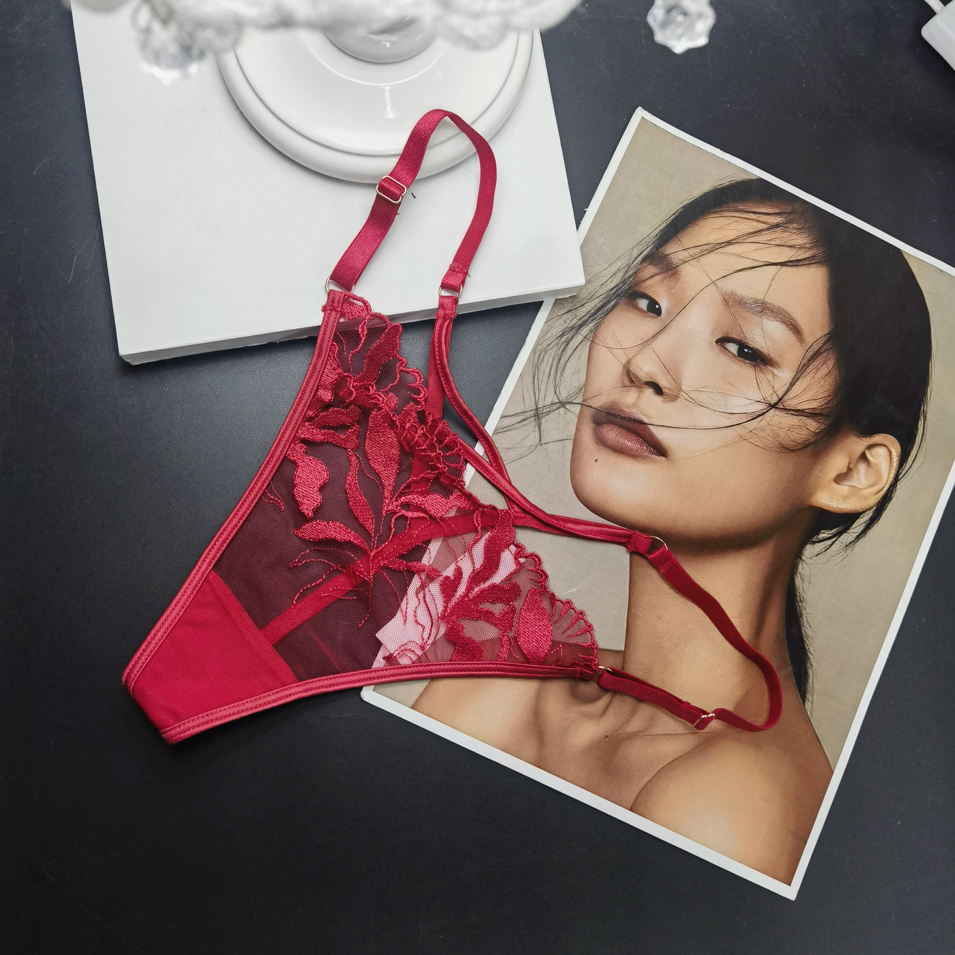 Embroidered Lace Women's Underwear T-Back Thong Sexy Hot Low-Waist Peach Butt-Enhancing Seductive Shorts Plus Size