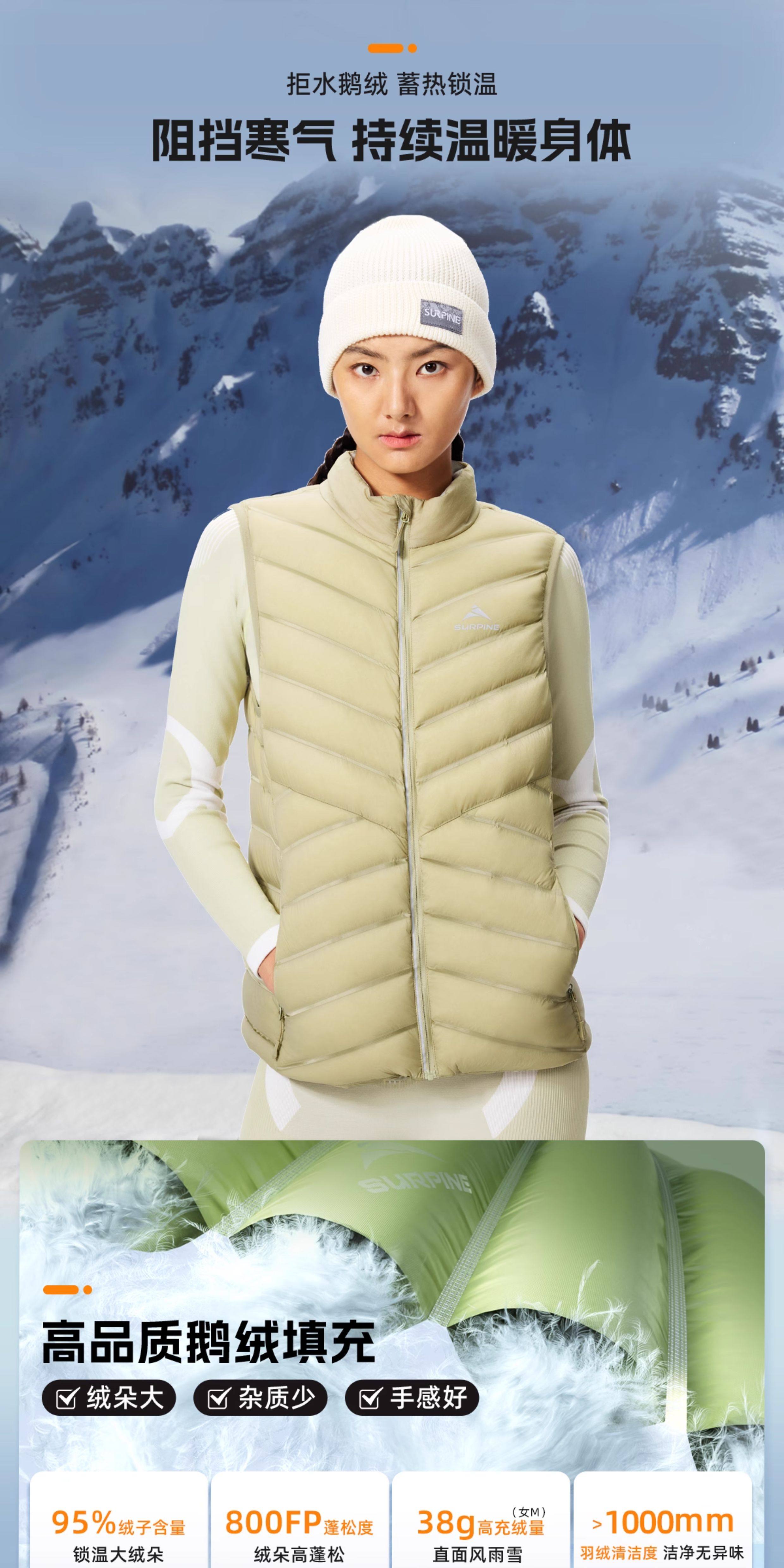 Surpine Matsuno Pai Lightweight, Warm, Breathable Goose down Inner Vest for Outdoor Sports and Skiing in Winter
