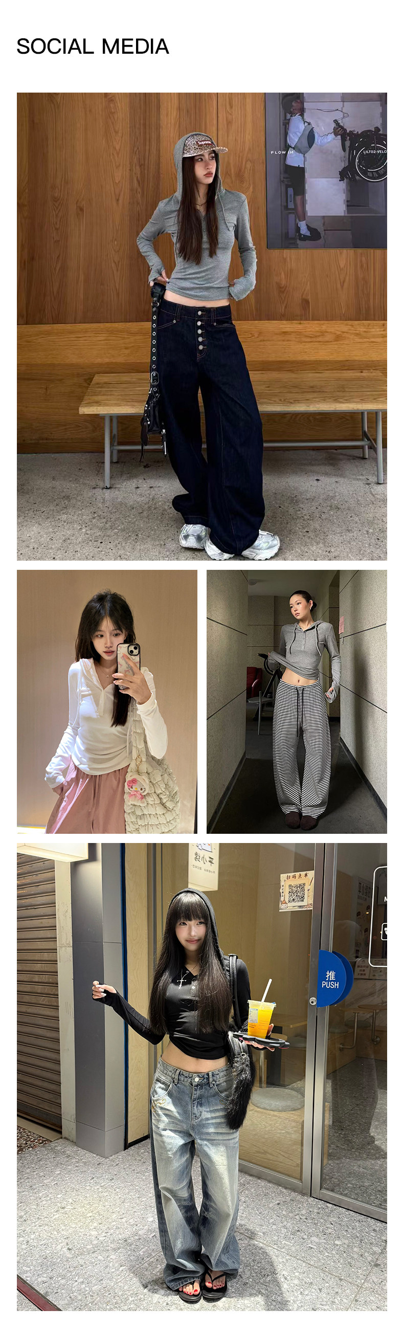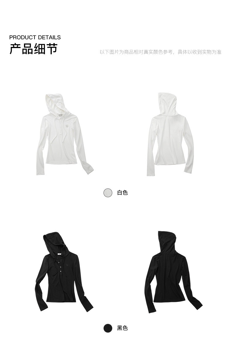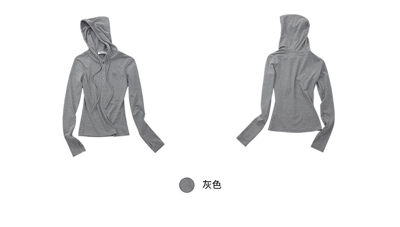 Climax Vision Soft and Elastic/Classic Henry Collar Slim Fit Knitted Hooded Long-Sleeved T-Shirt for Women