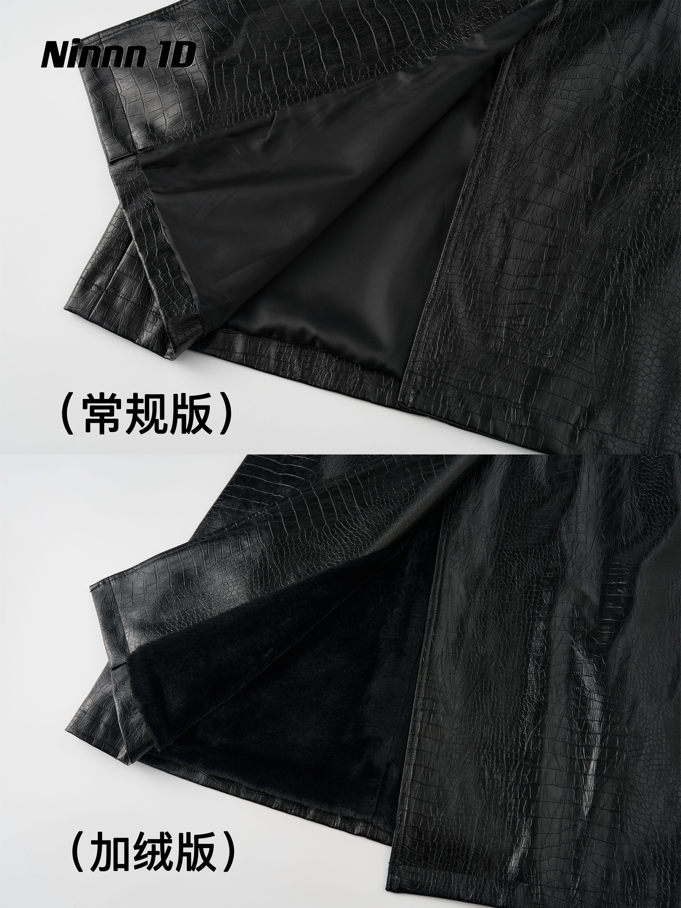 Ninnn 1D【Classic Cool Girl】Crocodile Pattern High-Quality Leather Jacket for Women, Autumn and Winter Slimming Long Trench Coat