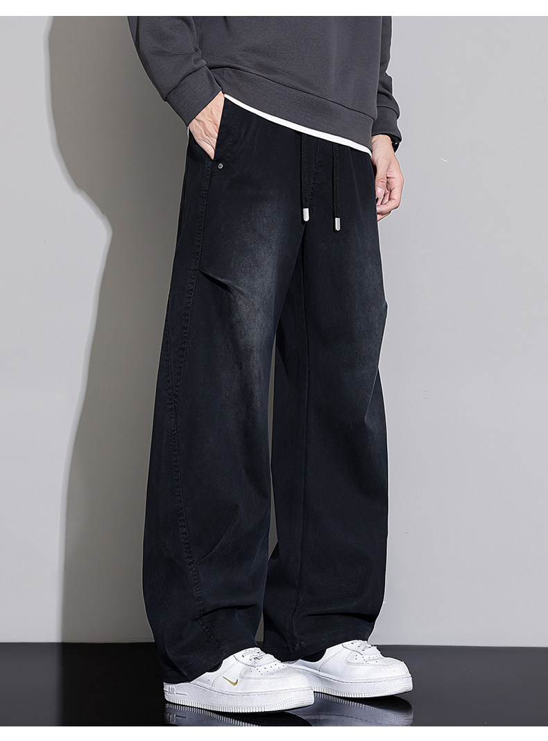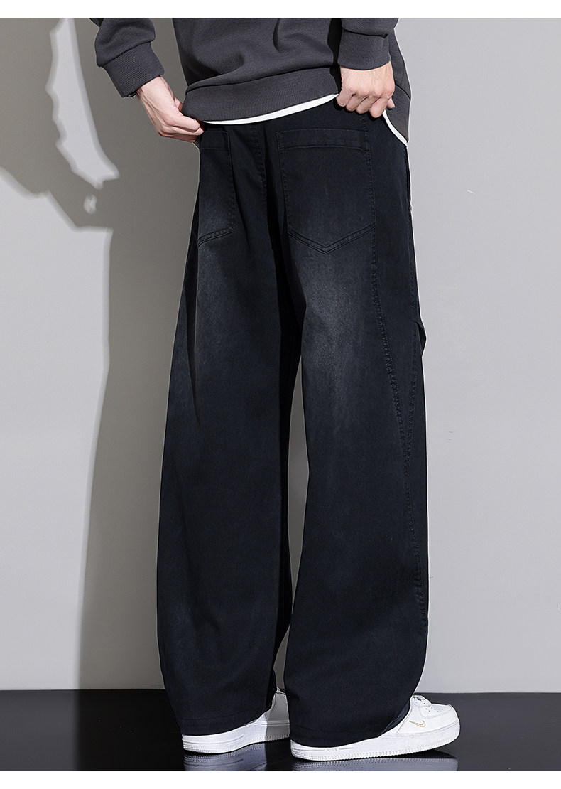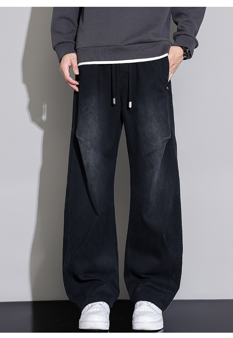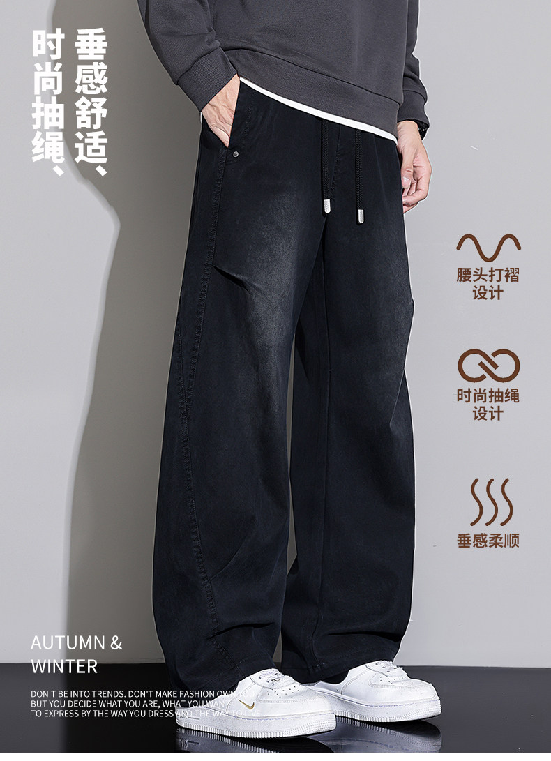 Black Scimitar Jeans for Men, 2025 Autumn and Winter New Style, Fleece-Lined and Thickened, Straight-Leg, Loose-Fitting, American-Style Trendy Casual Long Pants