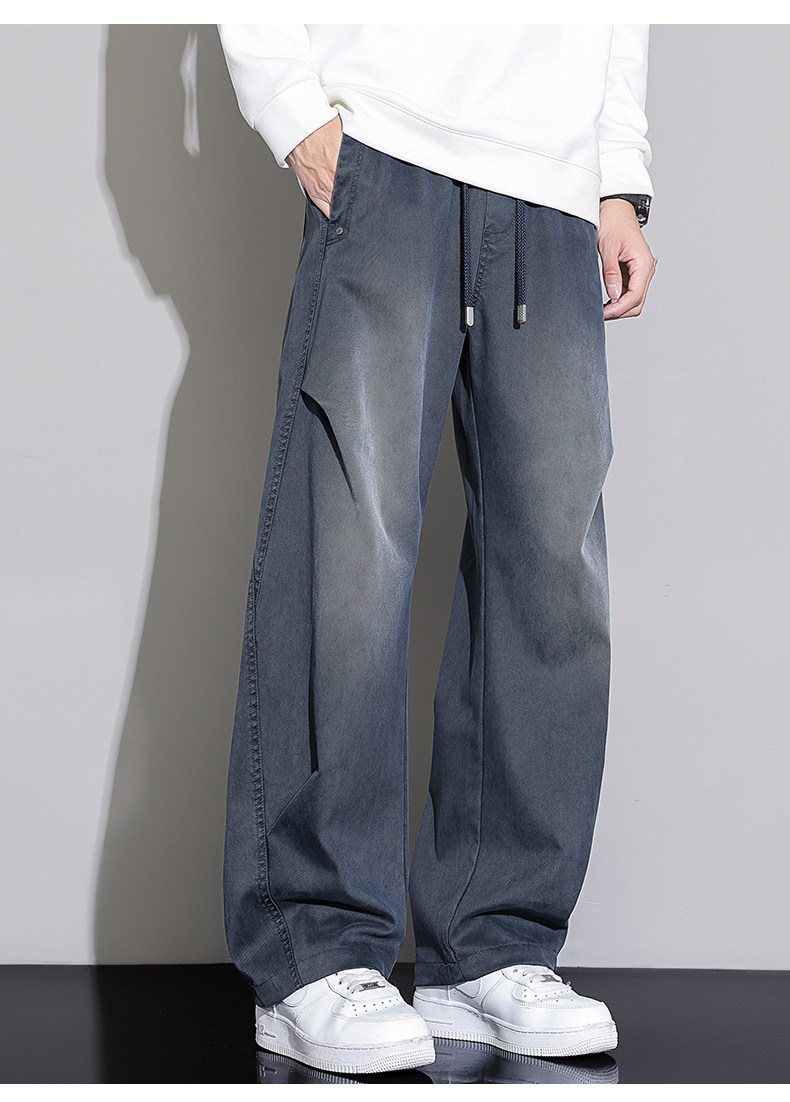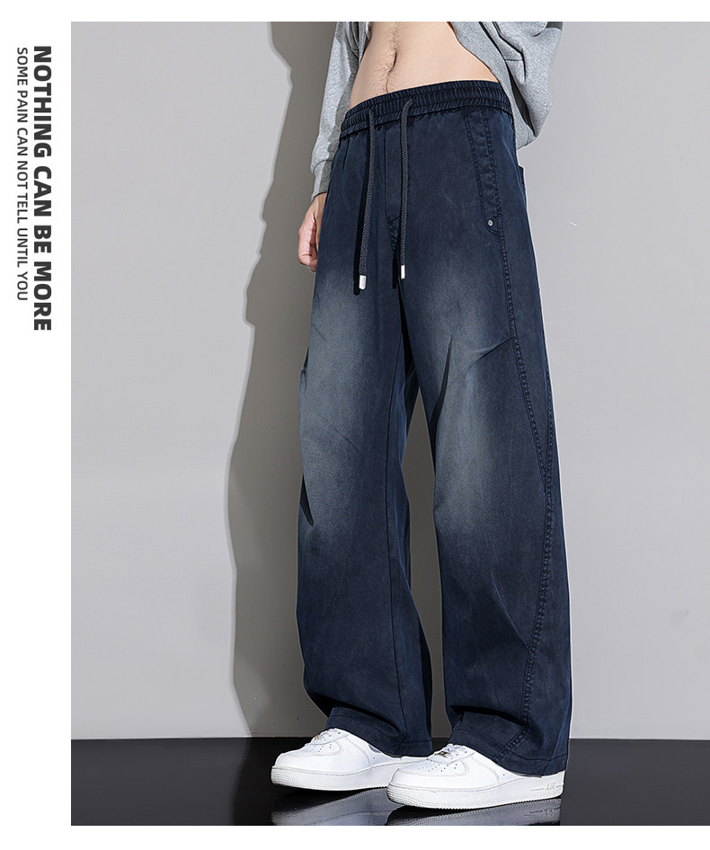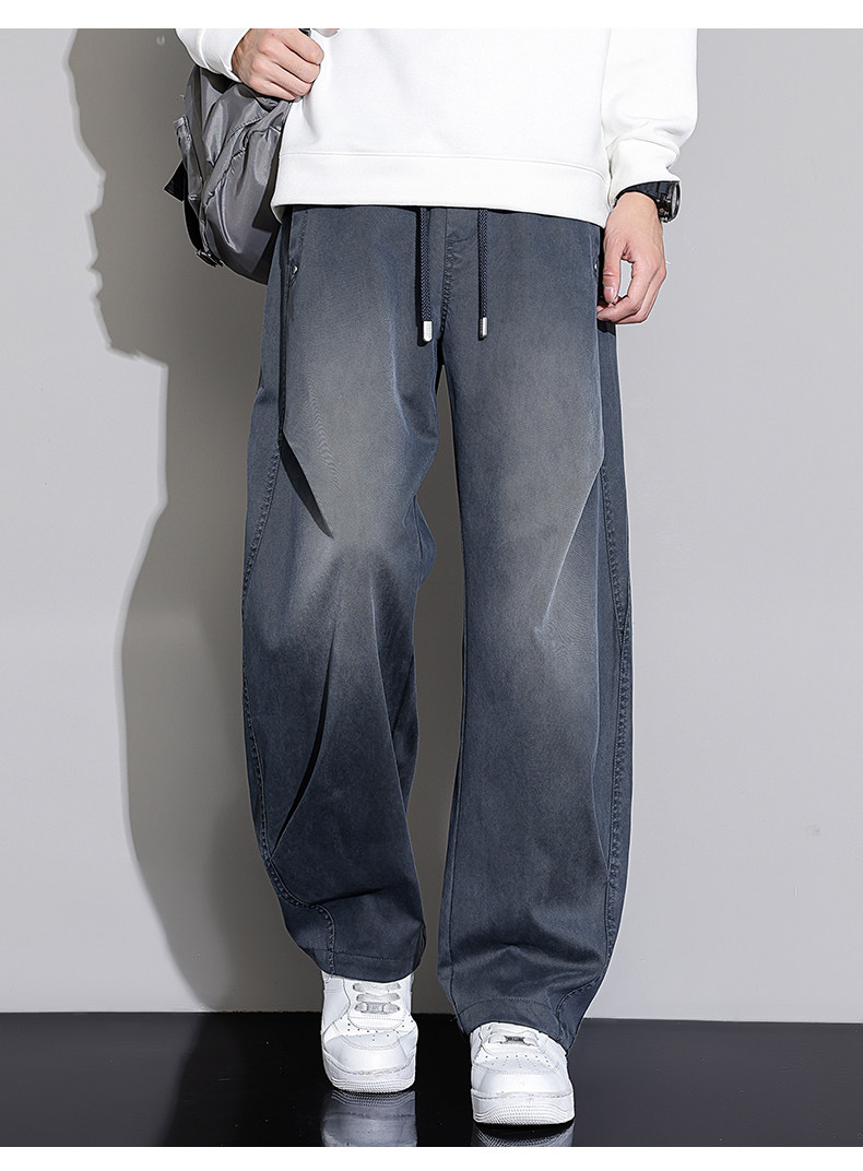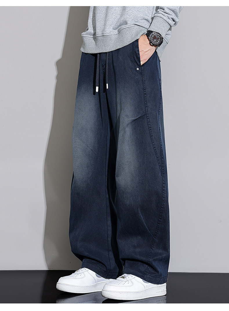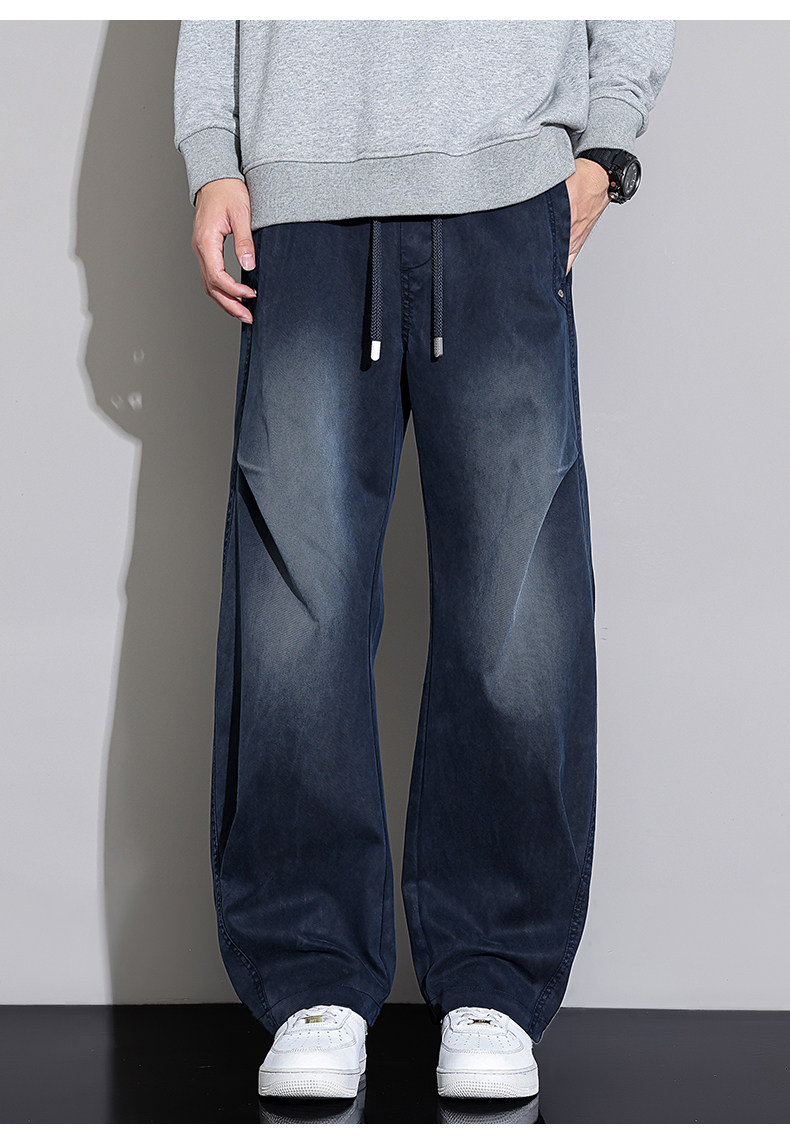 Black Scimitar Jeans for Men, 2025 Autumn and Winter New Style, Fleece-Lined and Thickened, Straight-Leg, Loose-Fitting, American-Style Trendy Casual Long Pants