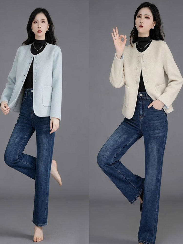 2025 New Reversible Handmade Cashmere Coat Autumn and Winter Short Double-Sided Wool Coat for Women