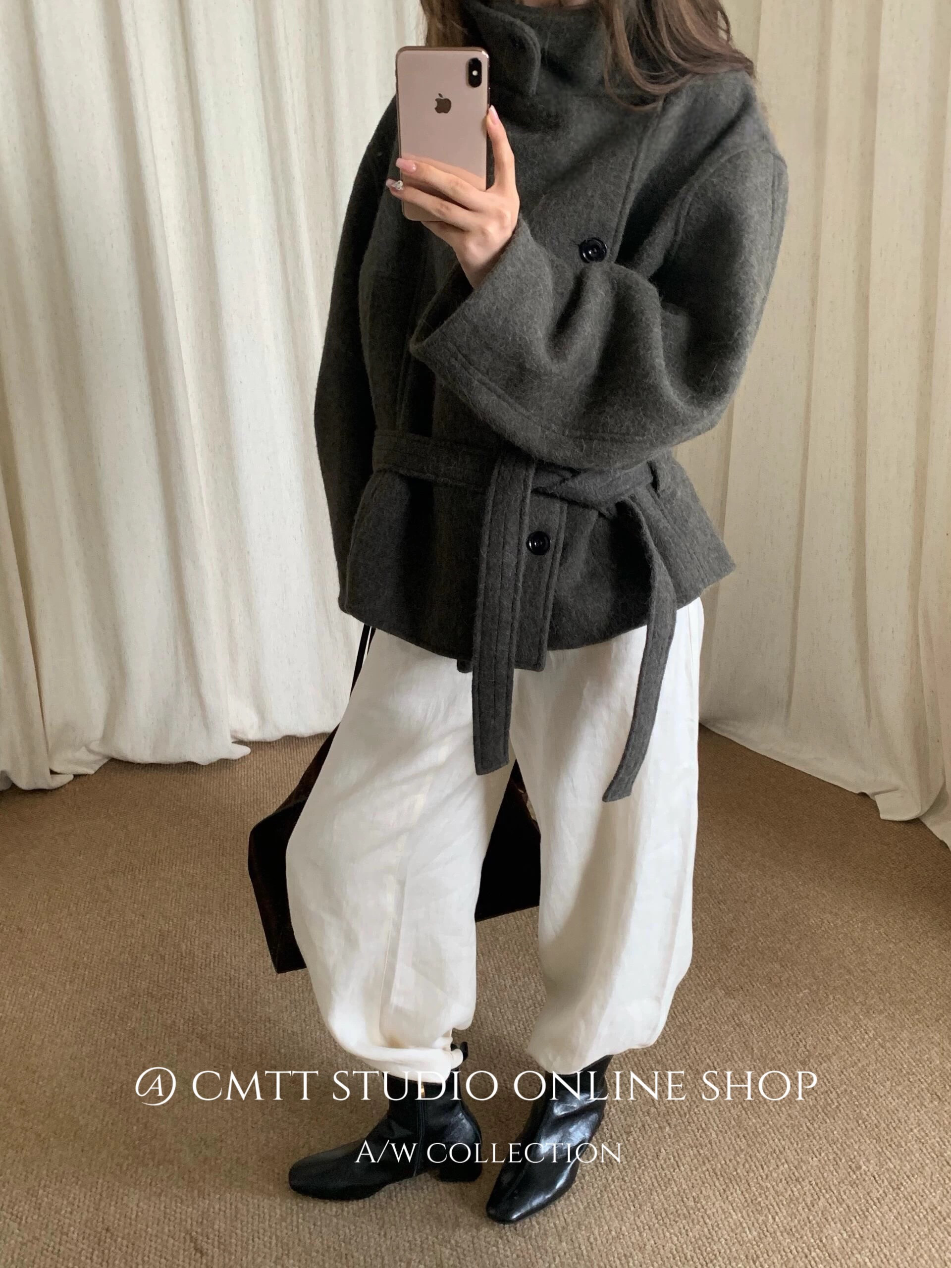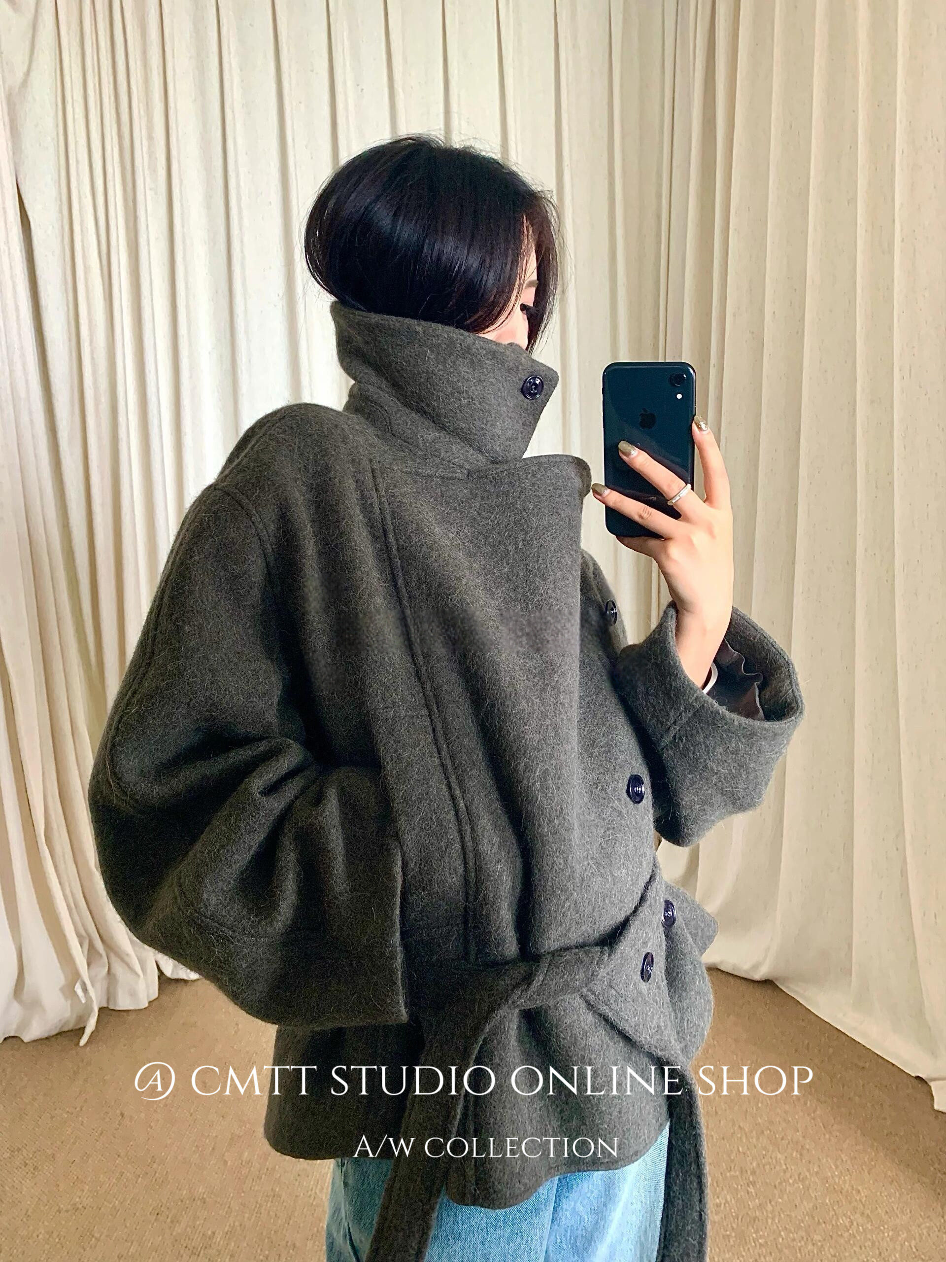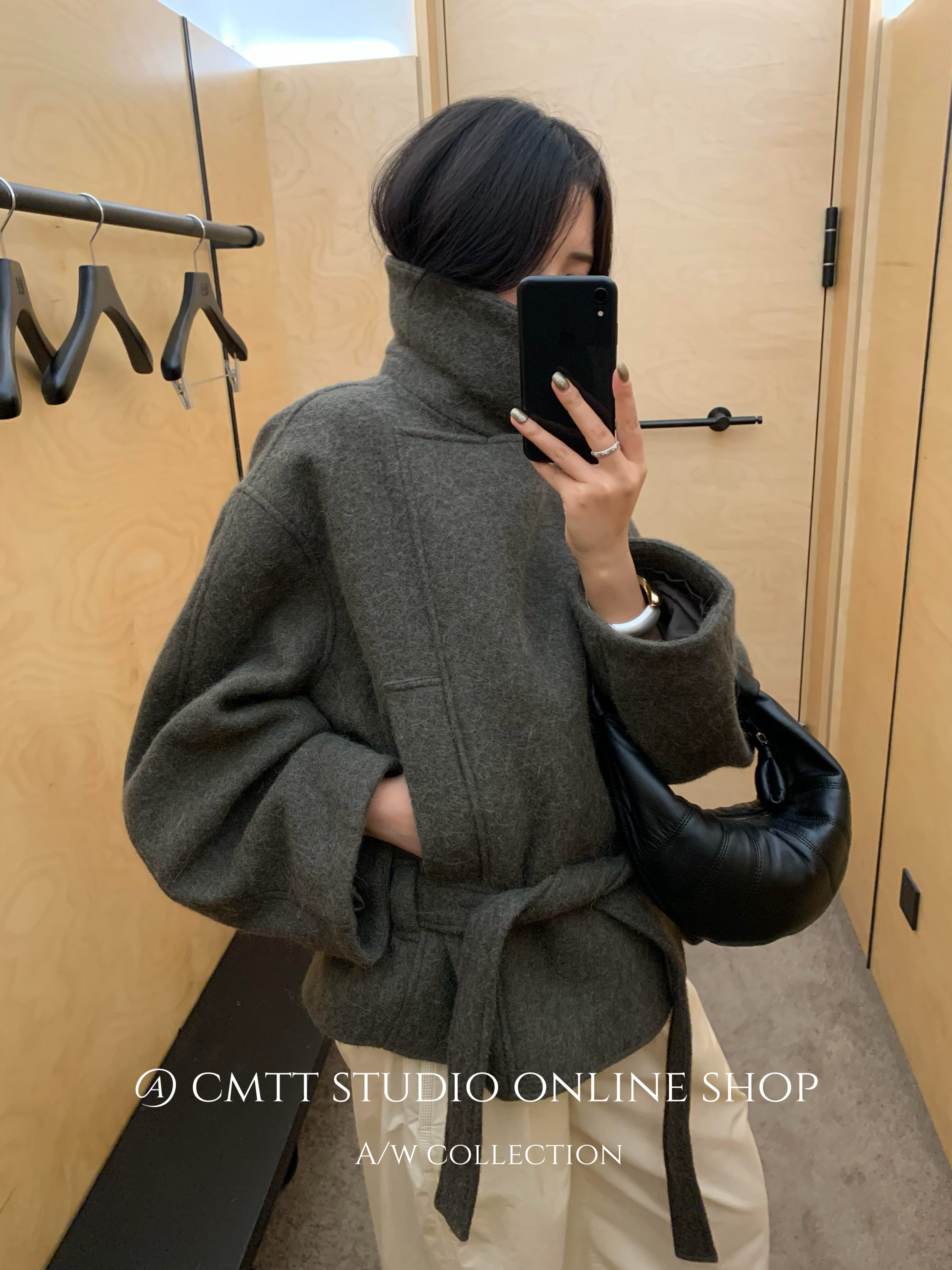 (Now) Heavyweight Lem* Kim Min-Hee Old Money Style Lapel Alpaca Wool Short Woolen Coat Bathrobe Woolen Jacket