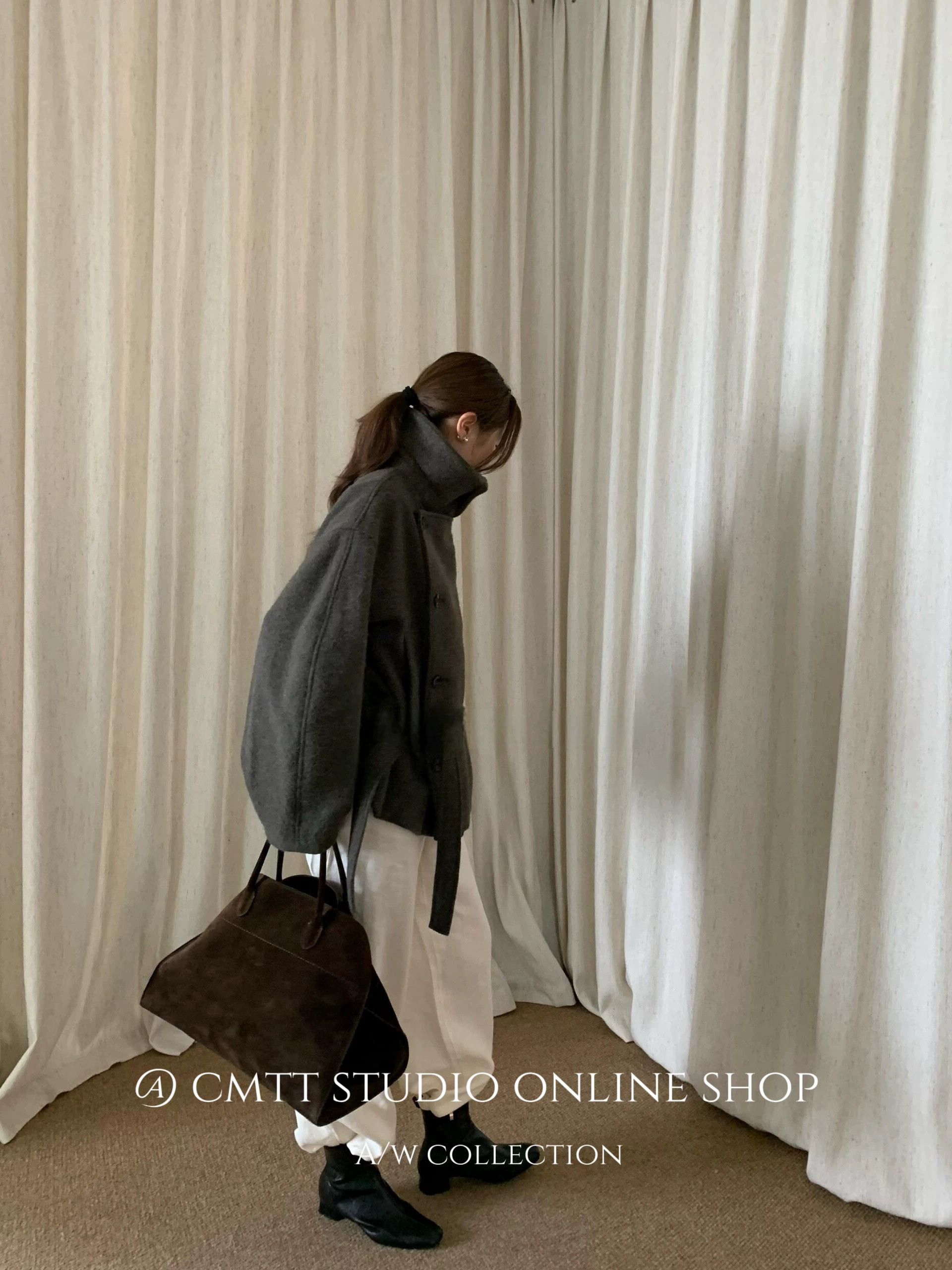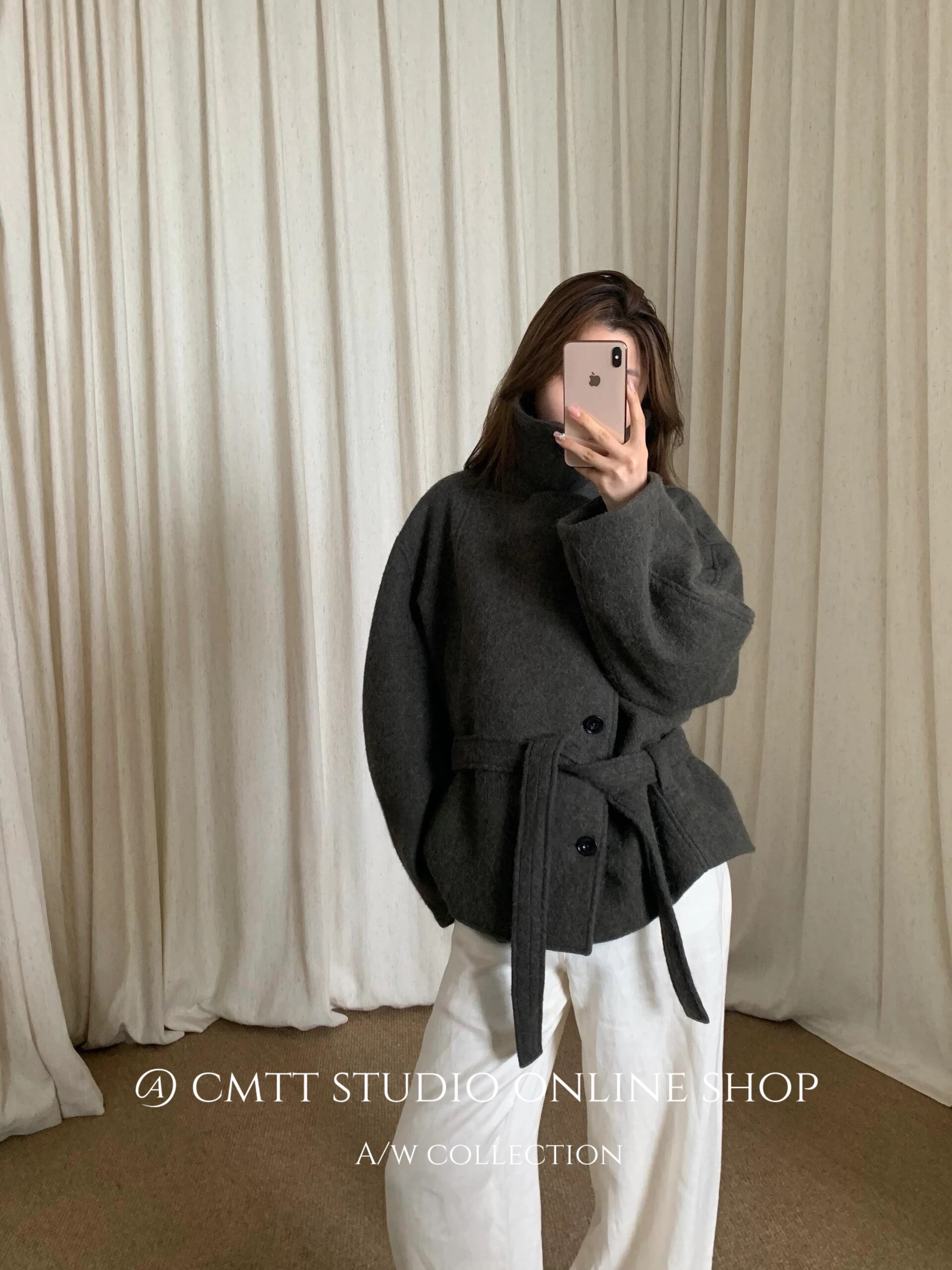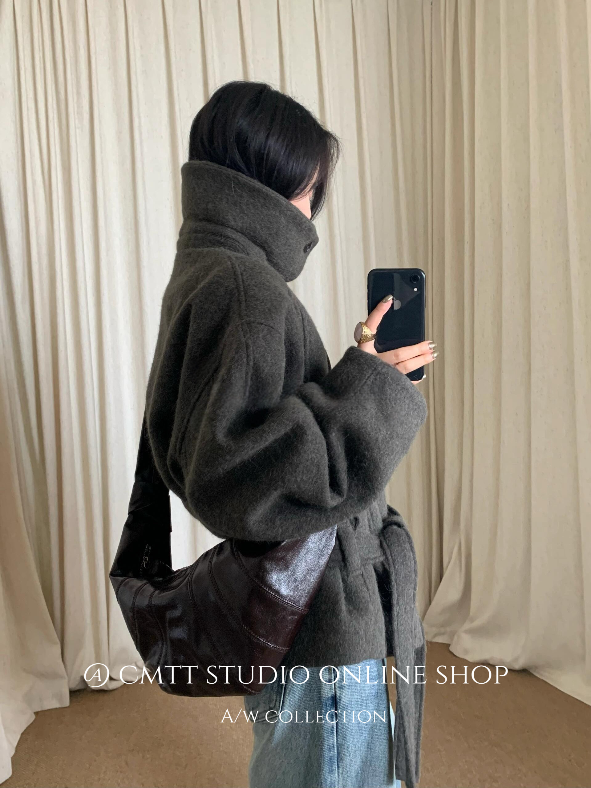 (Now) Heavyweight Lem* Kim Min-Hee Old Money Style Lapel Alpaca Wool Short Woolen Coat Bathrobe Woolen Jacket