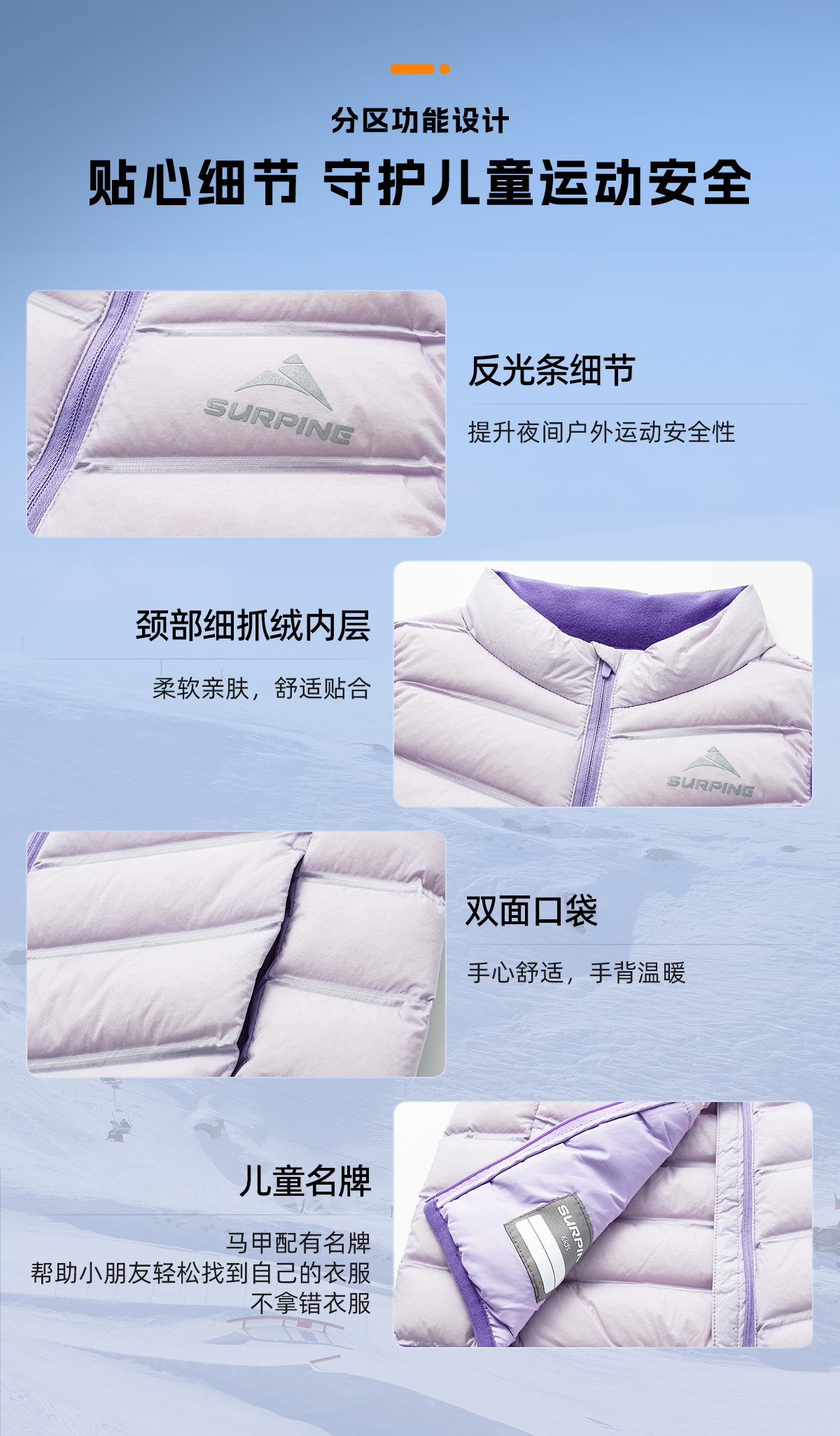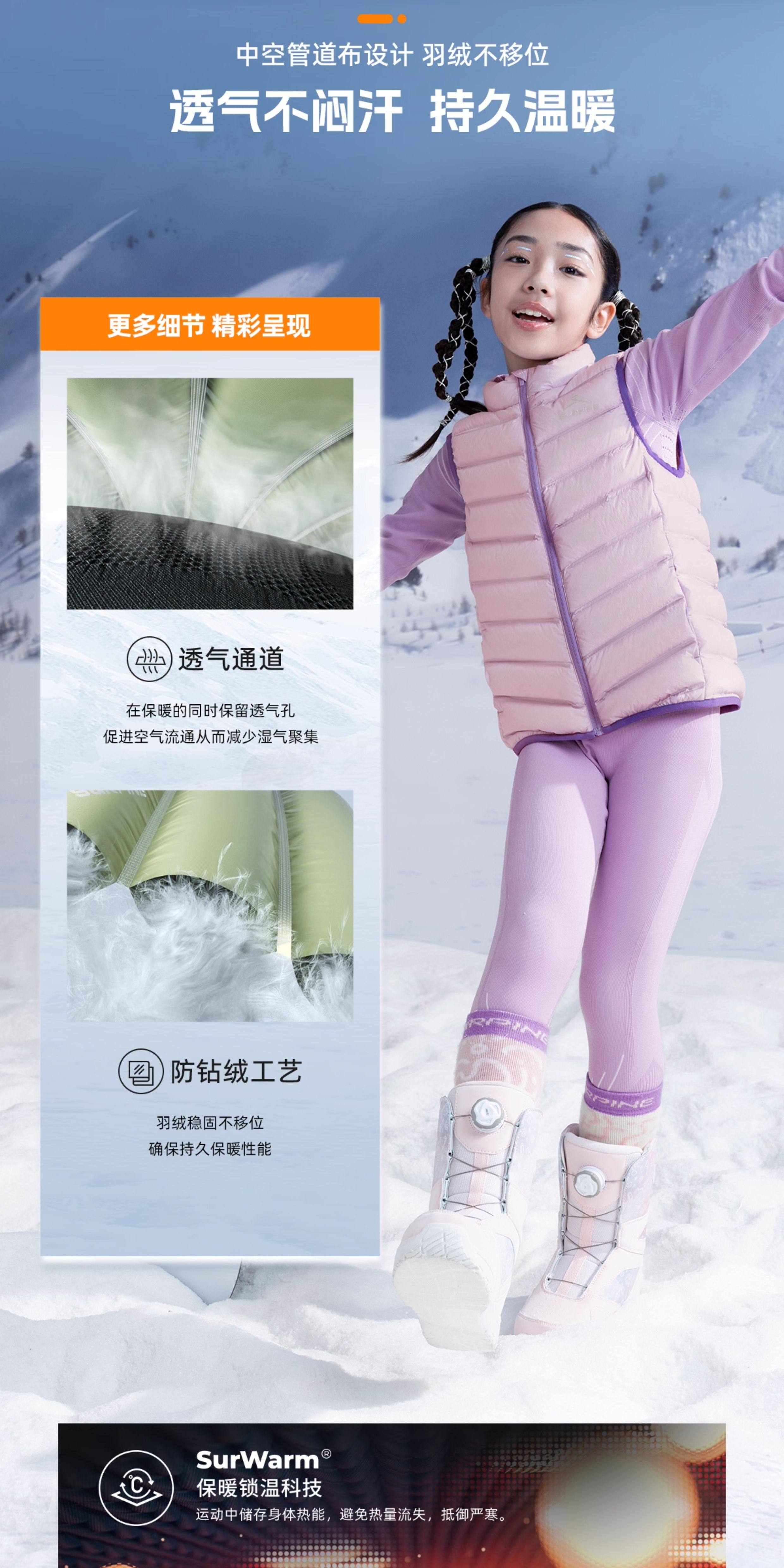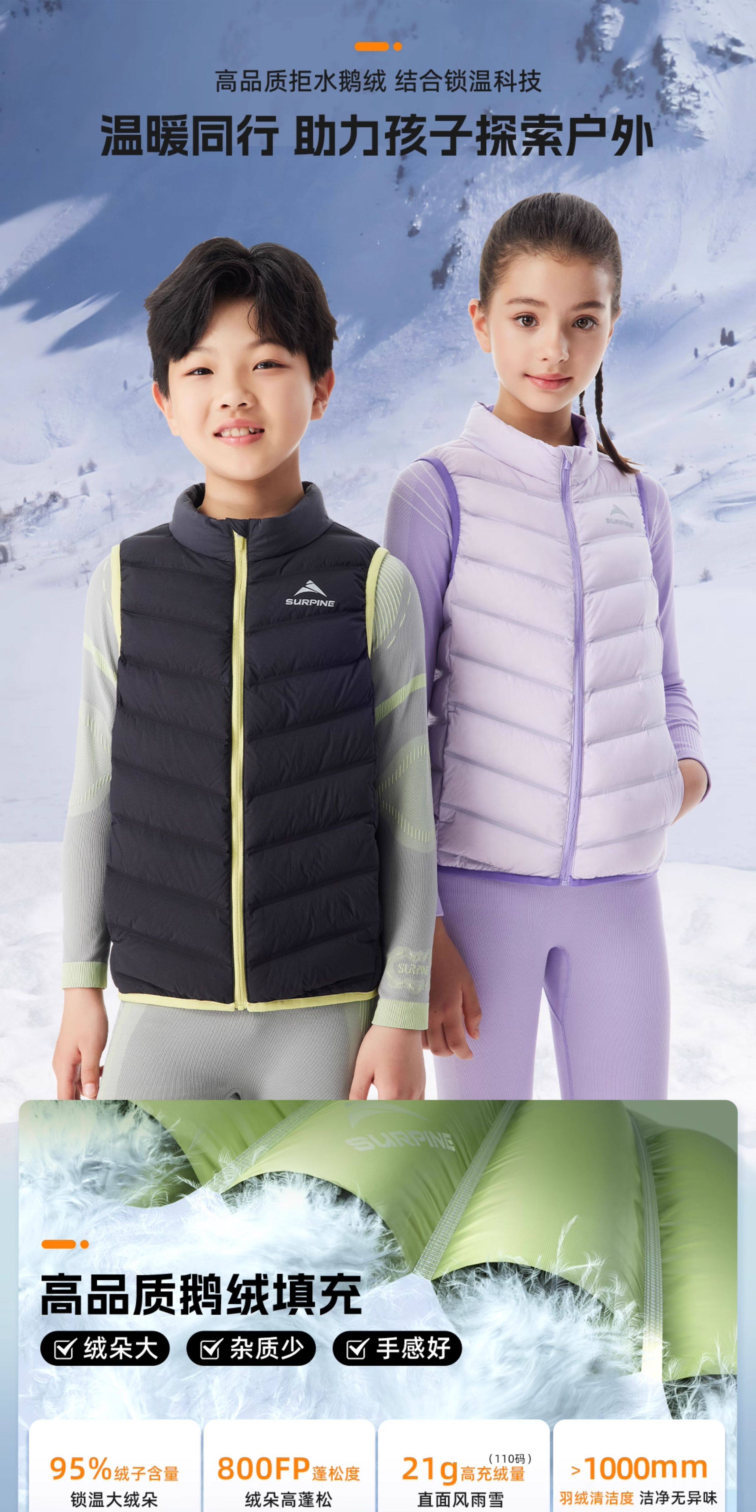 Surpine Matsuno Pai Children's Lightweight, Warm, Breathable Goose down Vest Liner for Outdoor Sports and Skiing