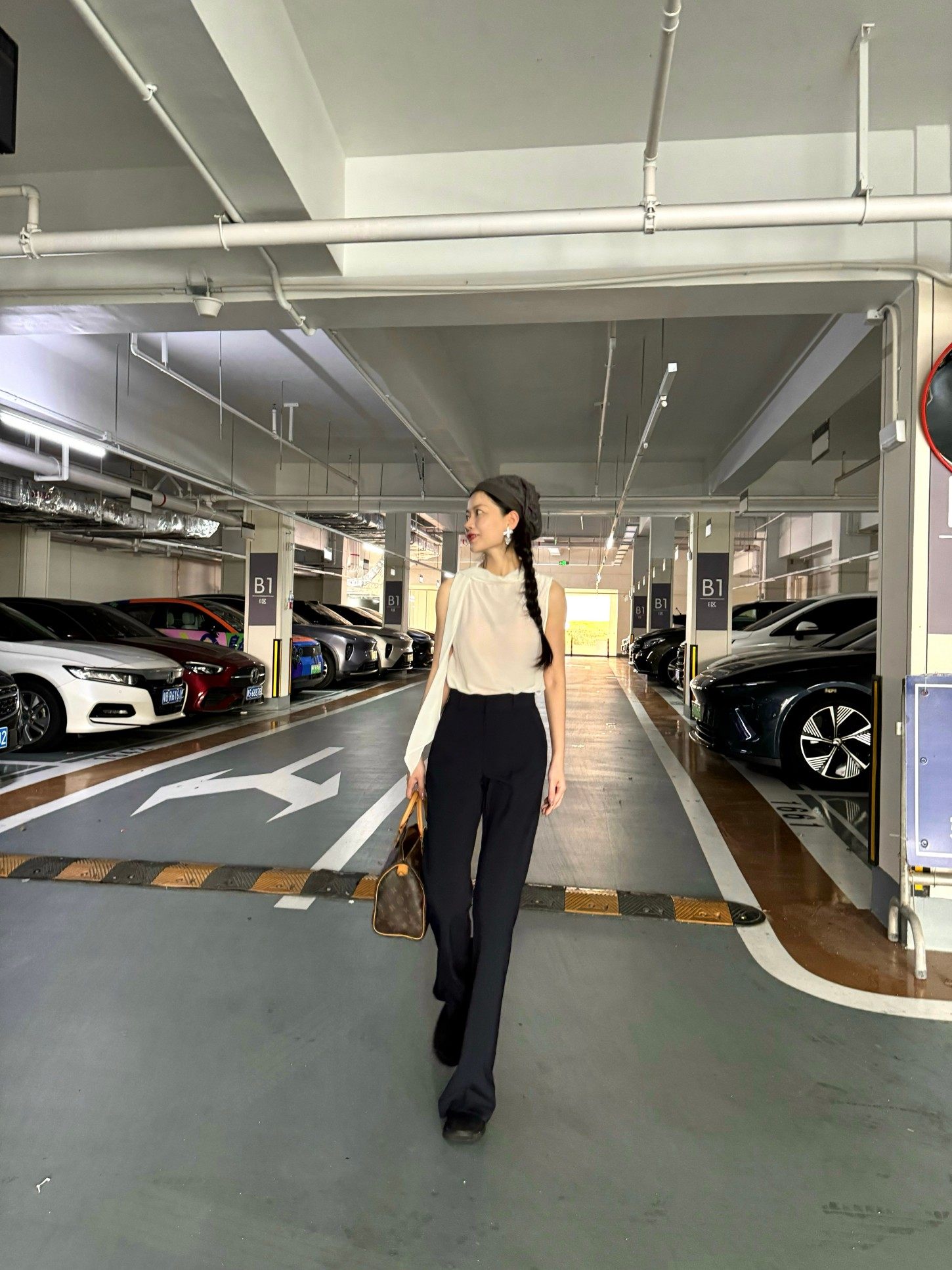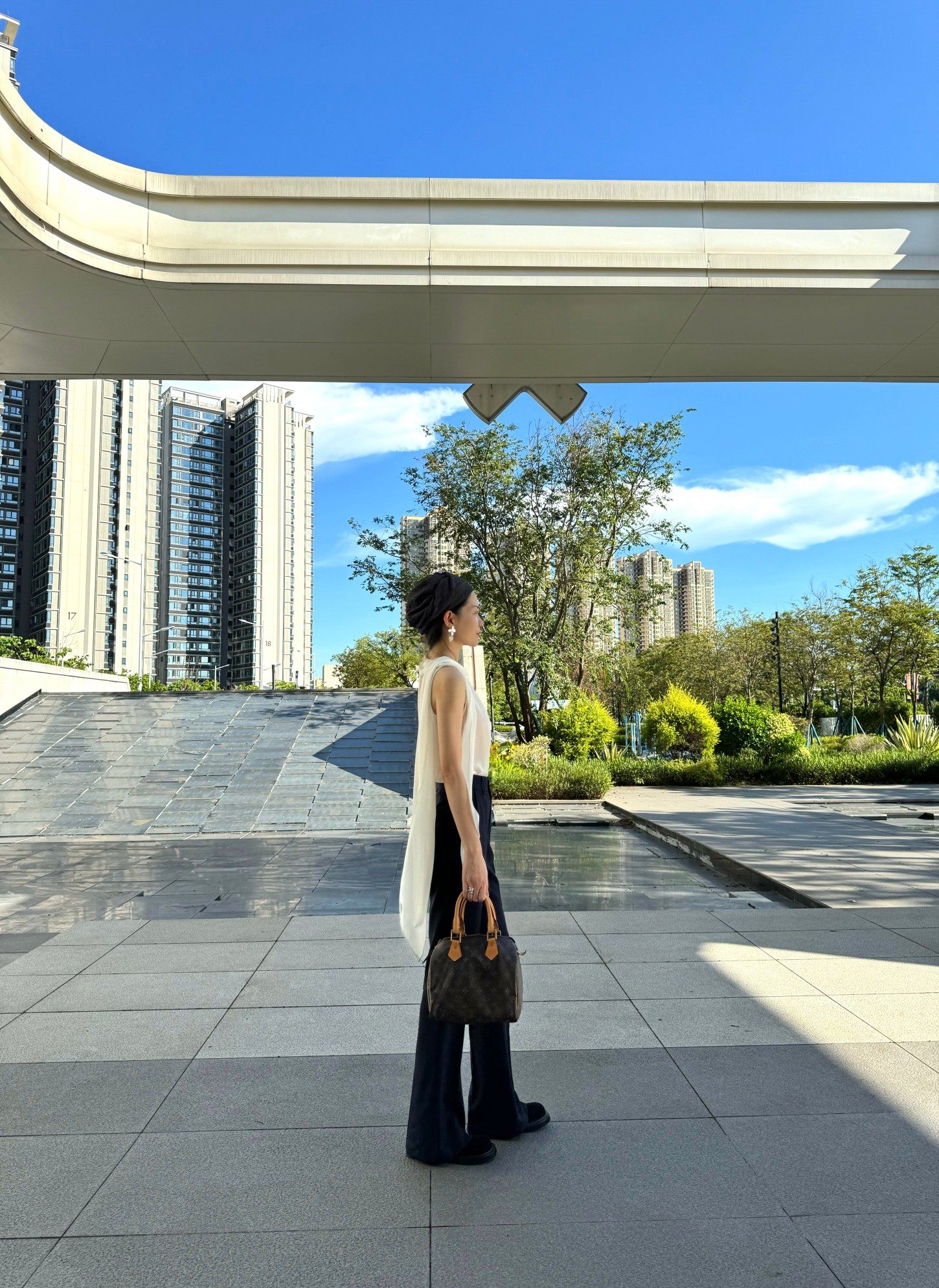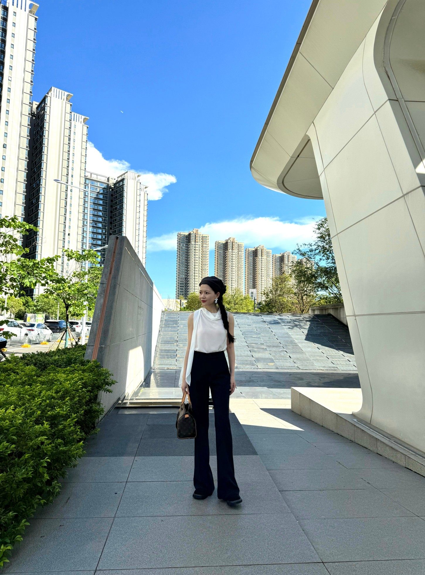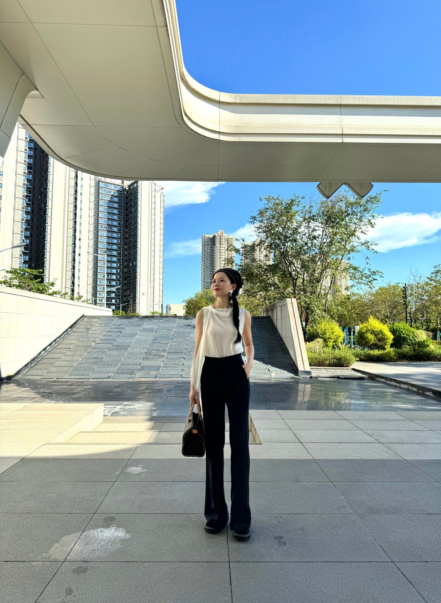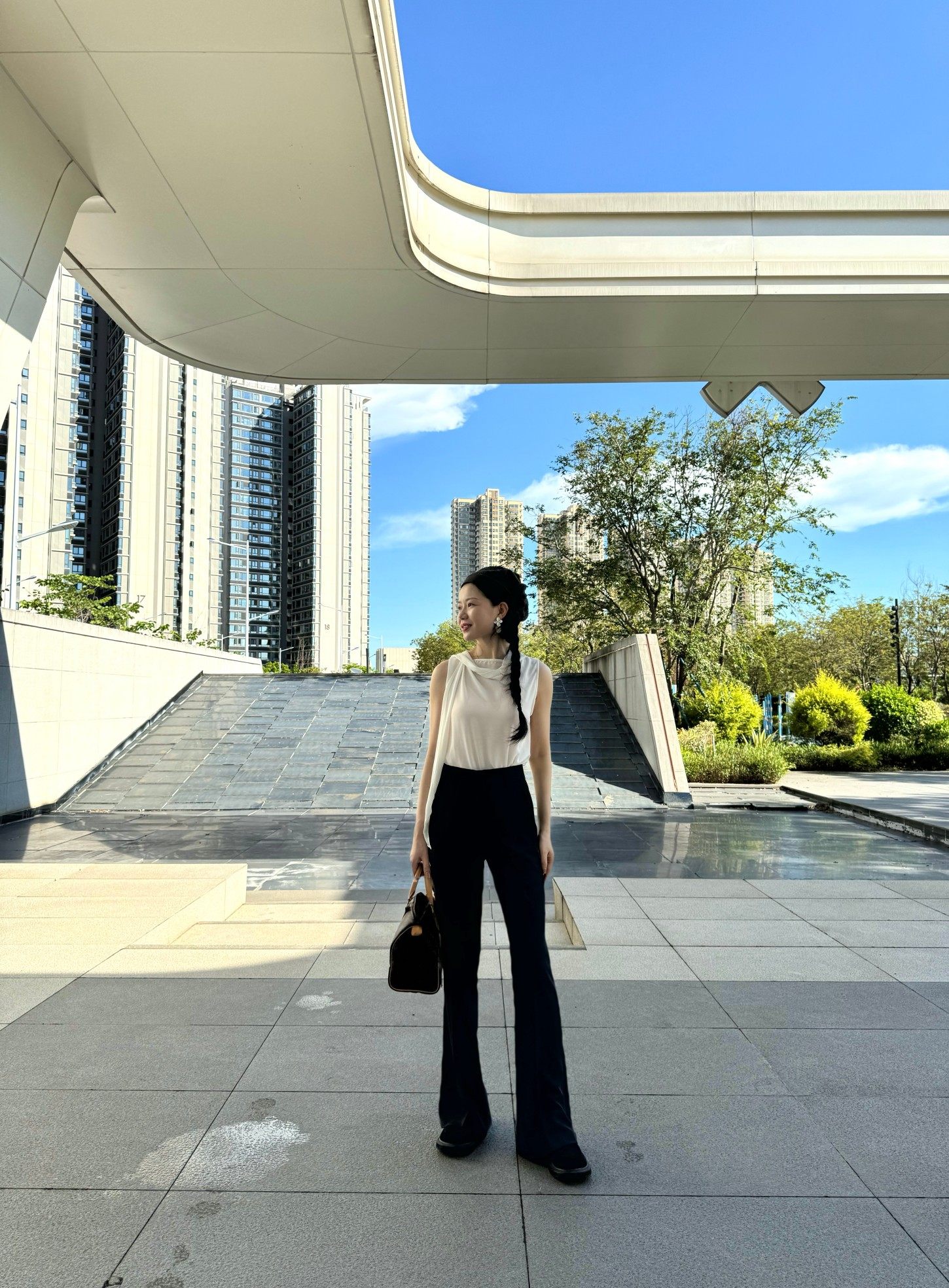 Cat Realm Exclusive High-Waisted Navy Blue Slim-Fit Thin Drape No-Iron Flared Extended Trousers
