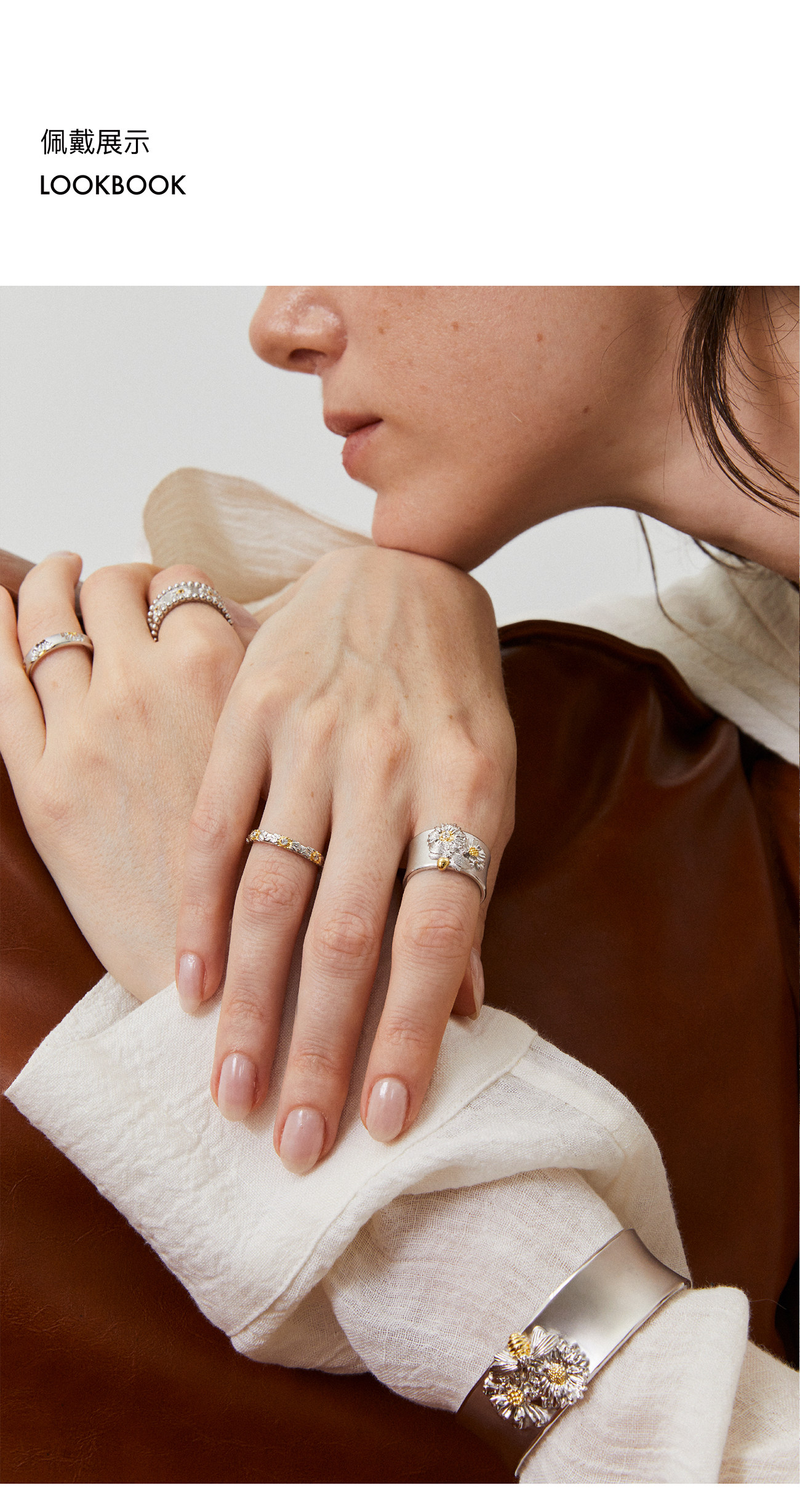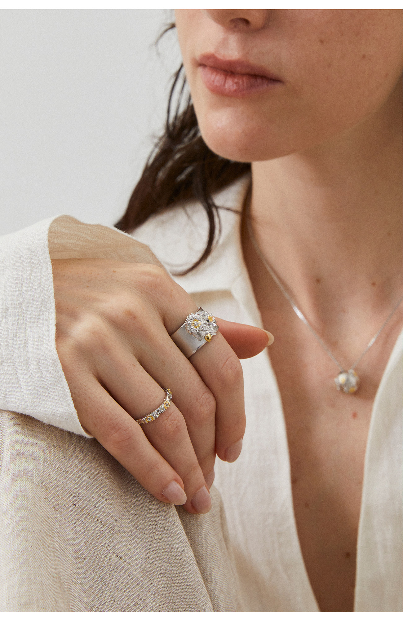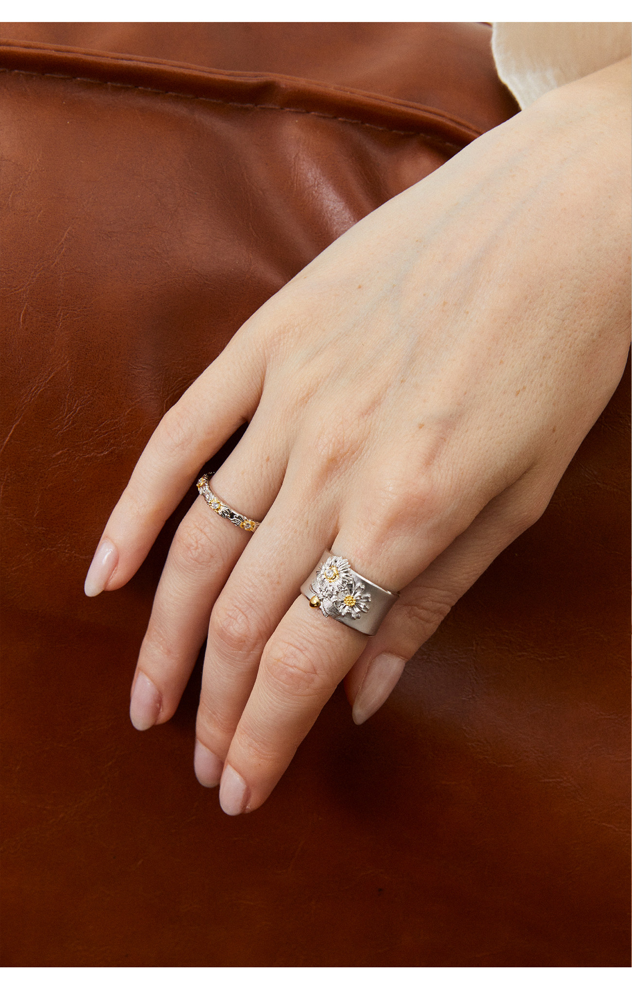 Mouhooland Daisy Series Daisy Flower Stamen Thin Ring Original Design Niche Ring for Couples