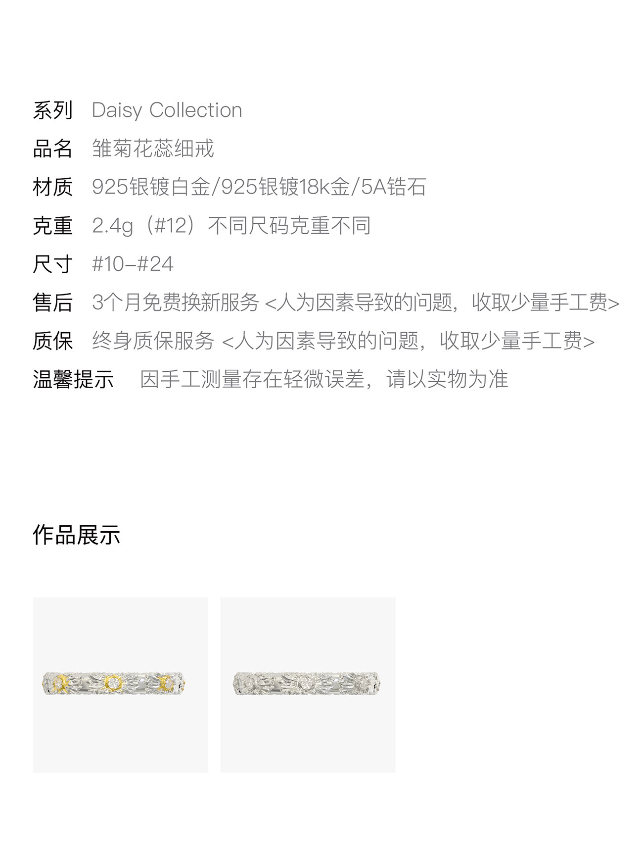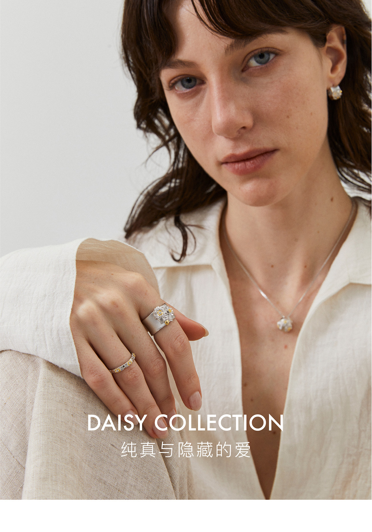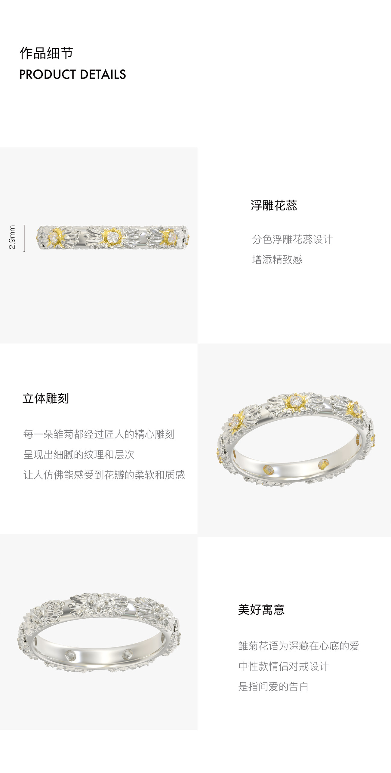 Mouhooland Daisy Series Daisy Flower Stamen Thin Ring Original Design Niche Ring for Couples