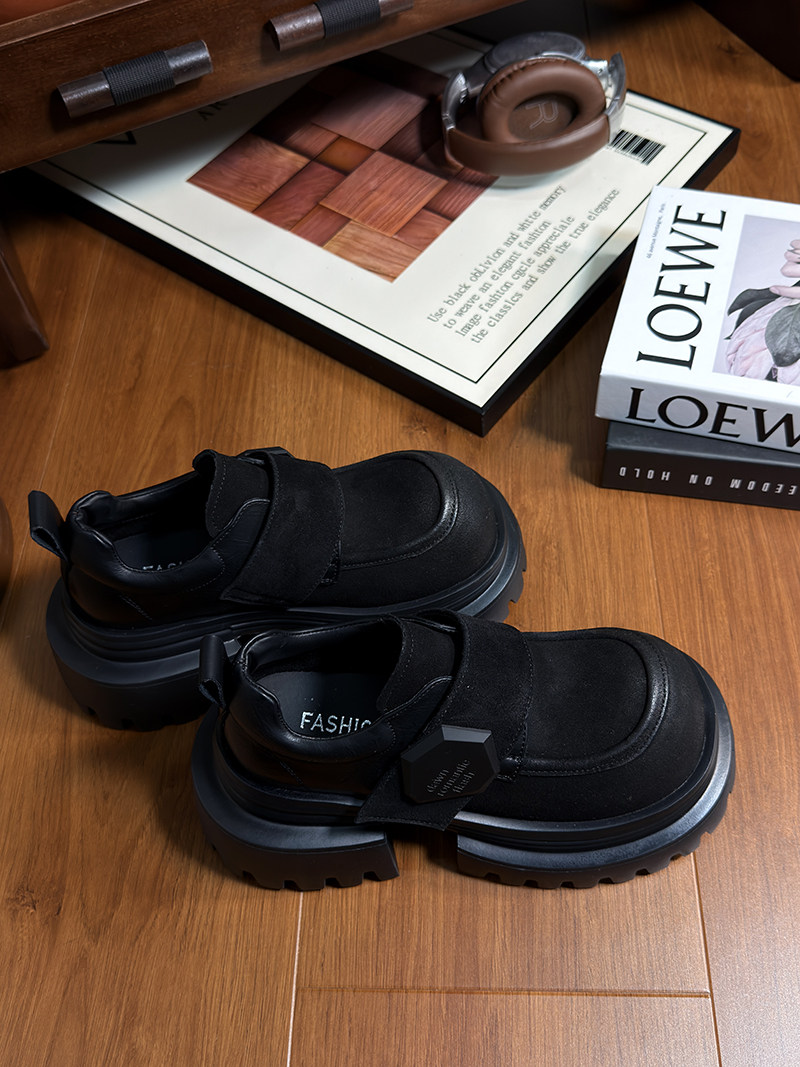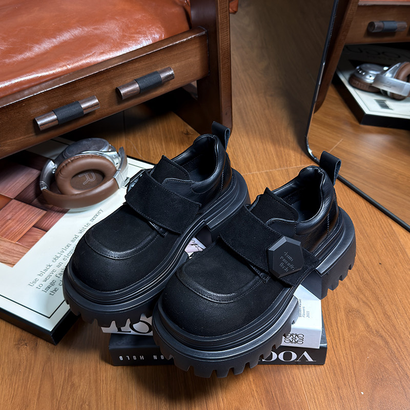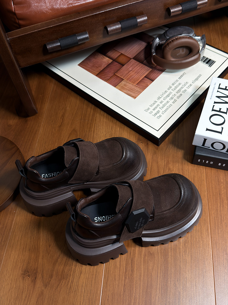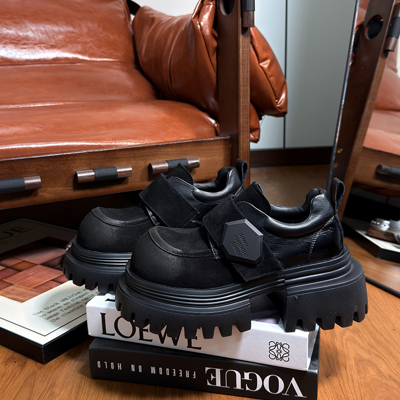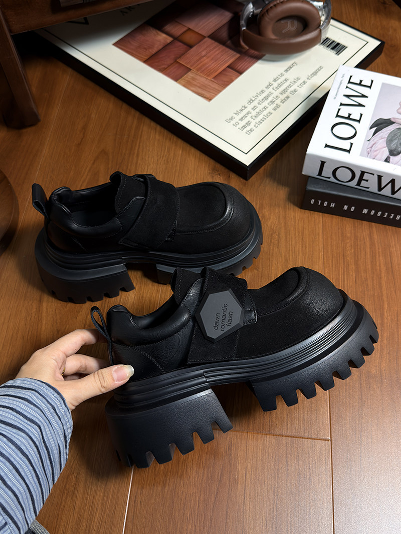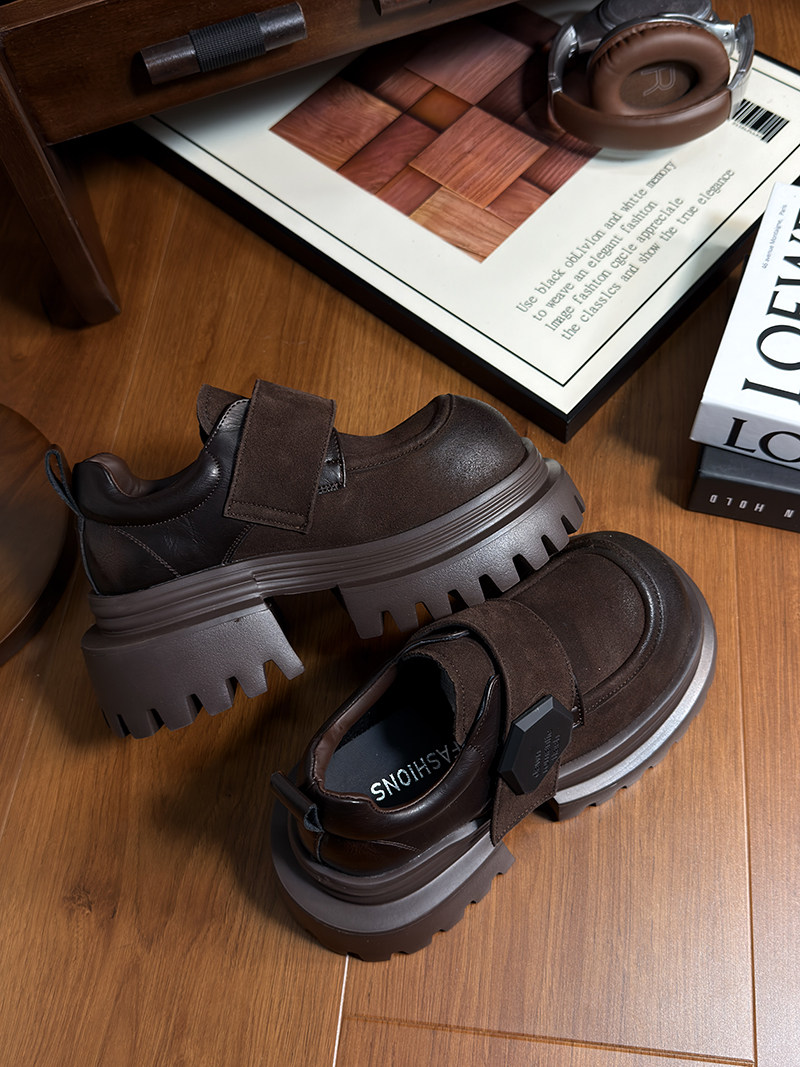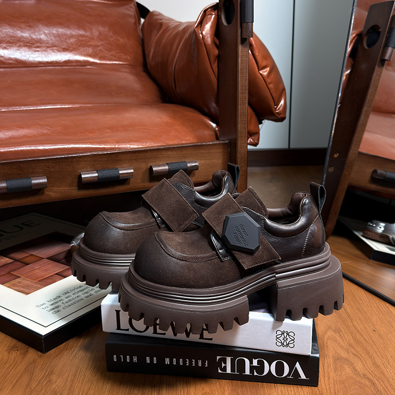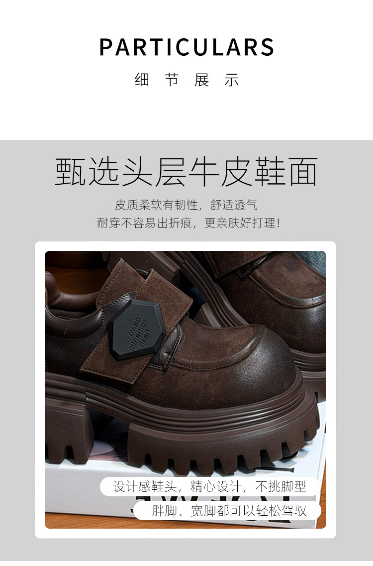 Hong Kong Retro Genuine Leather Platform Thick-Soled Small Leather Shoes for Women 2025 Autumn and Winter British Round-Toe Derby Shoes Height-Increasing Loafers