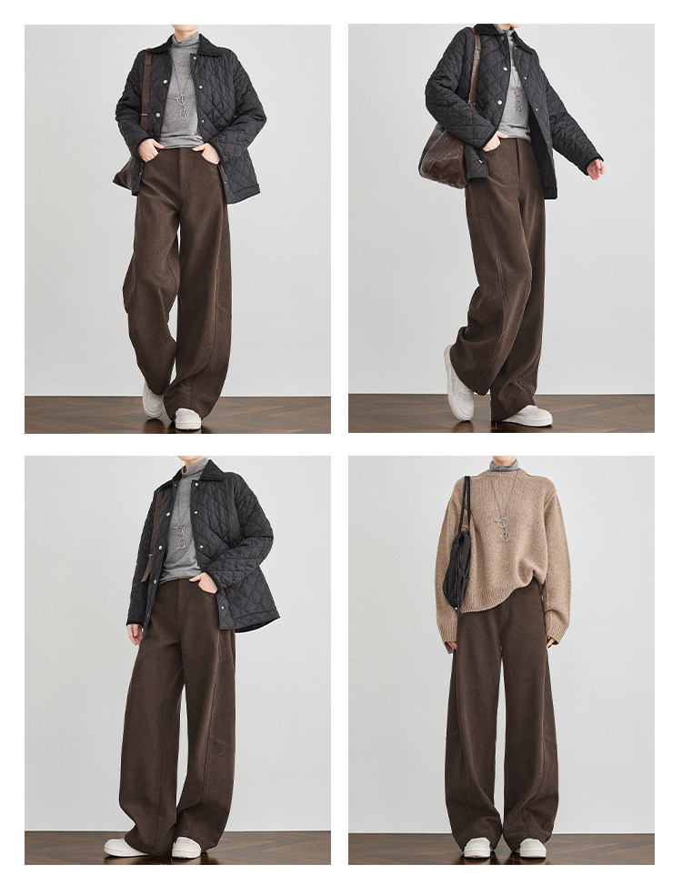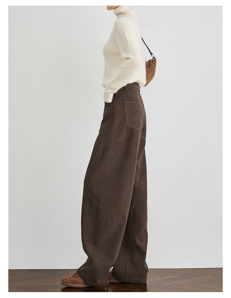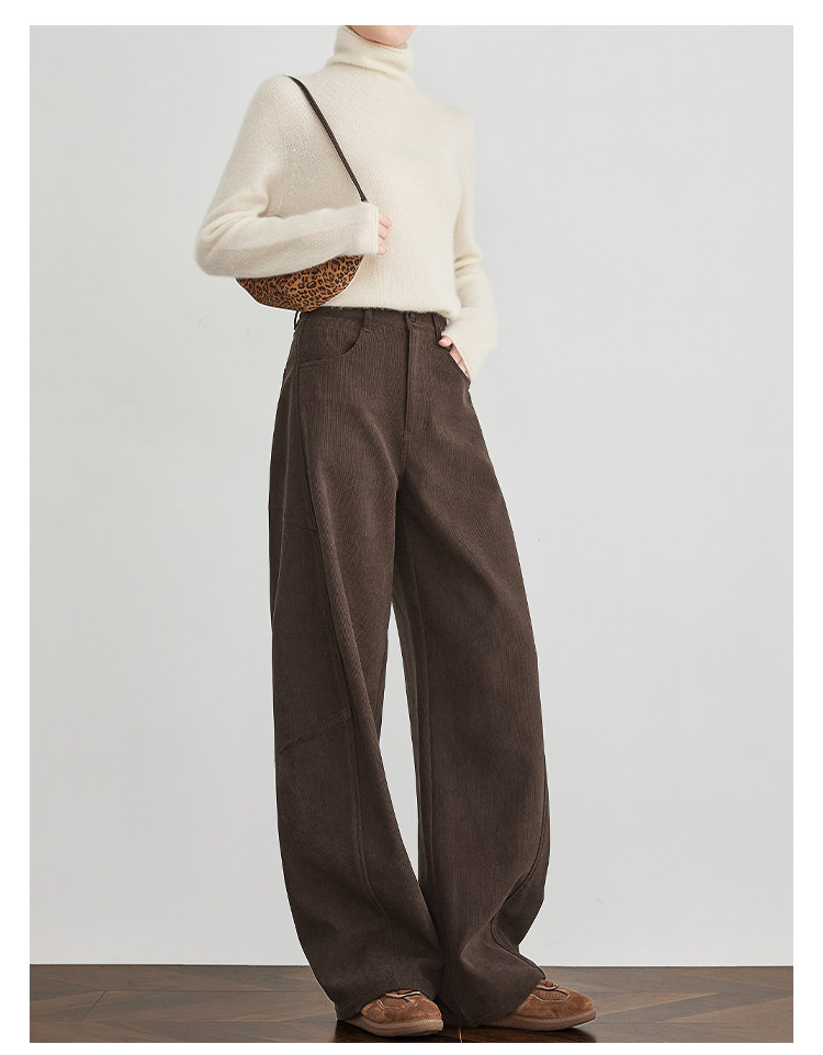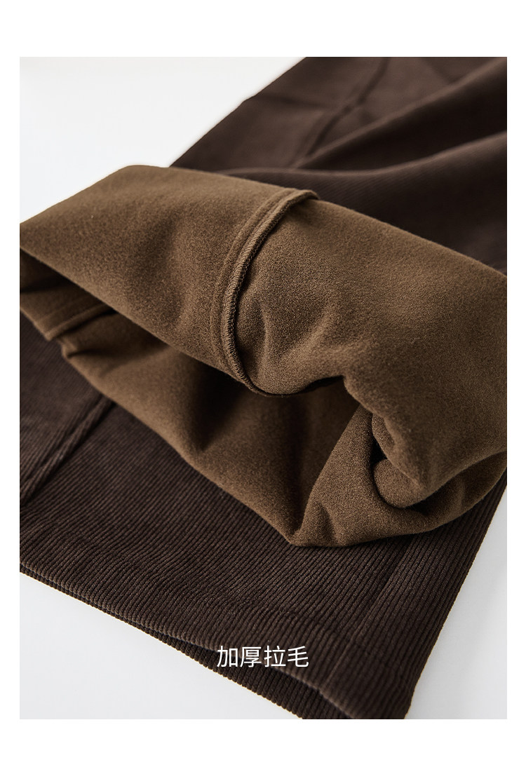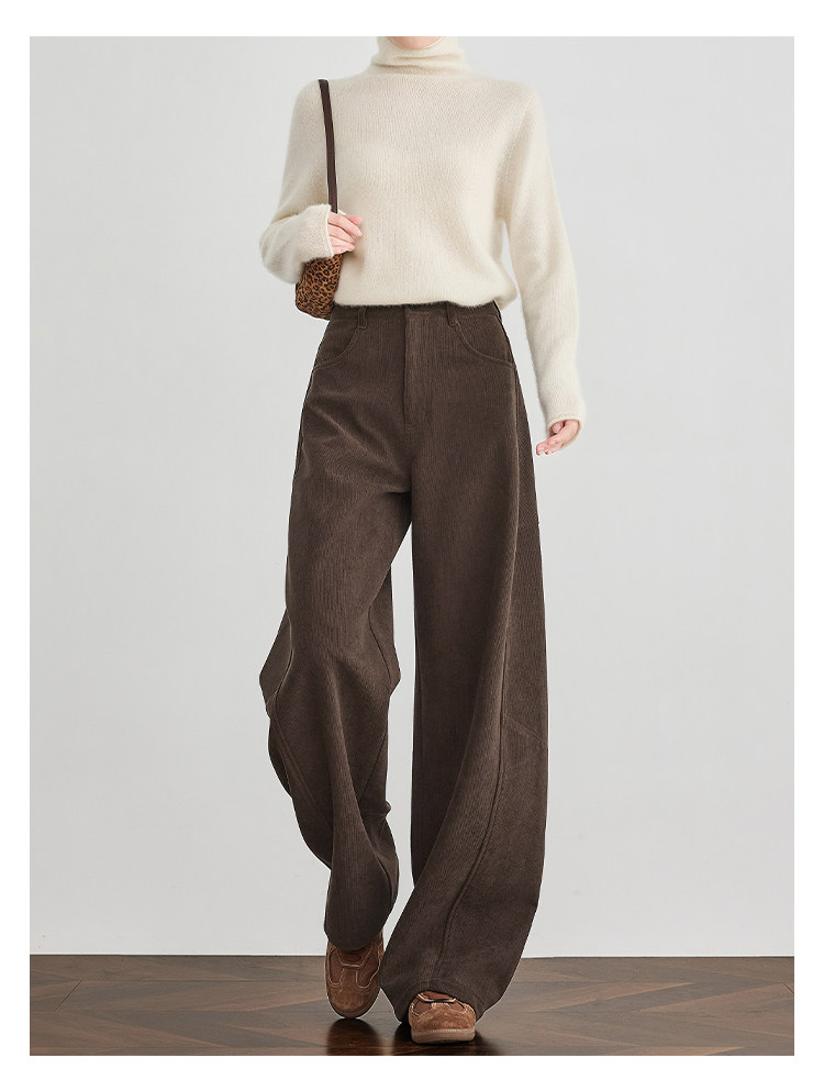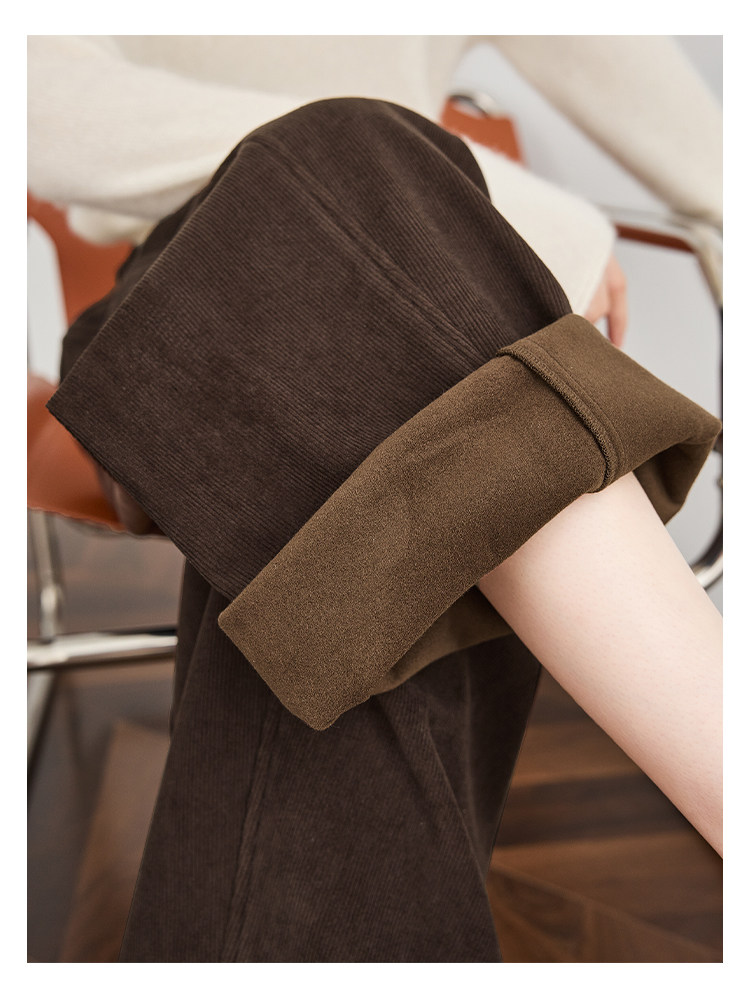 Faesslin【Vintage Melard】Coffee-Colored Corduroy Scimitar Pants with Fleece Lining, Thickened Wide-Leg Pants for Women, Winter Pants