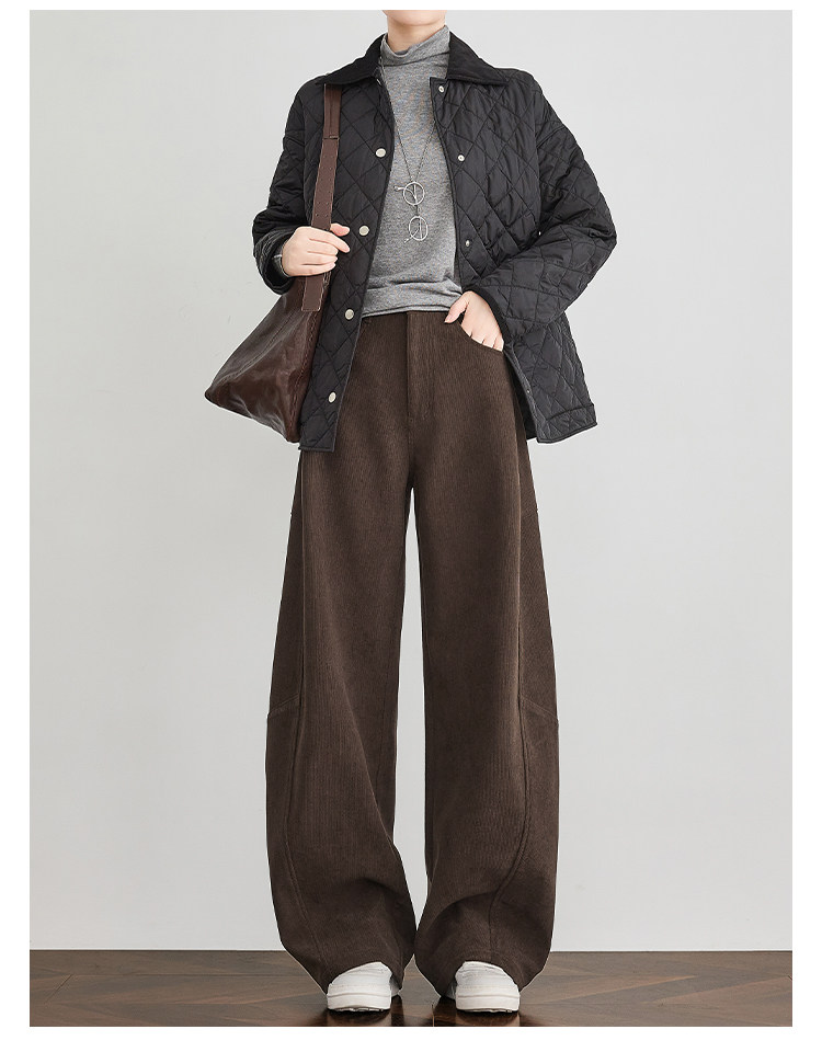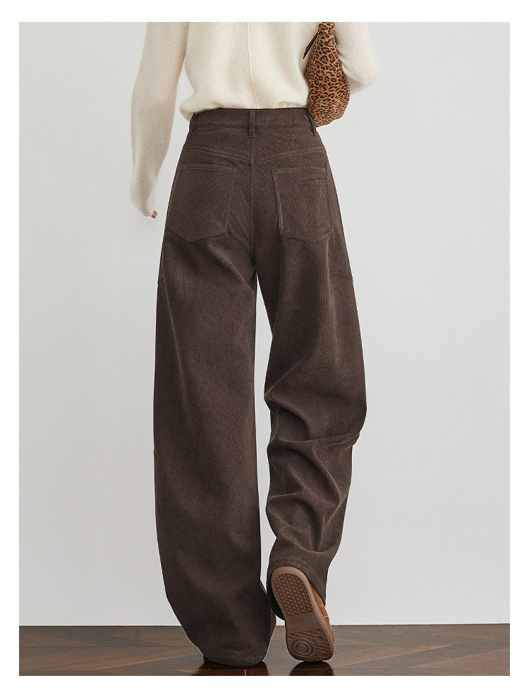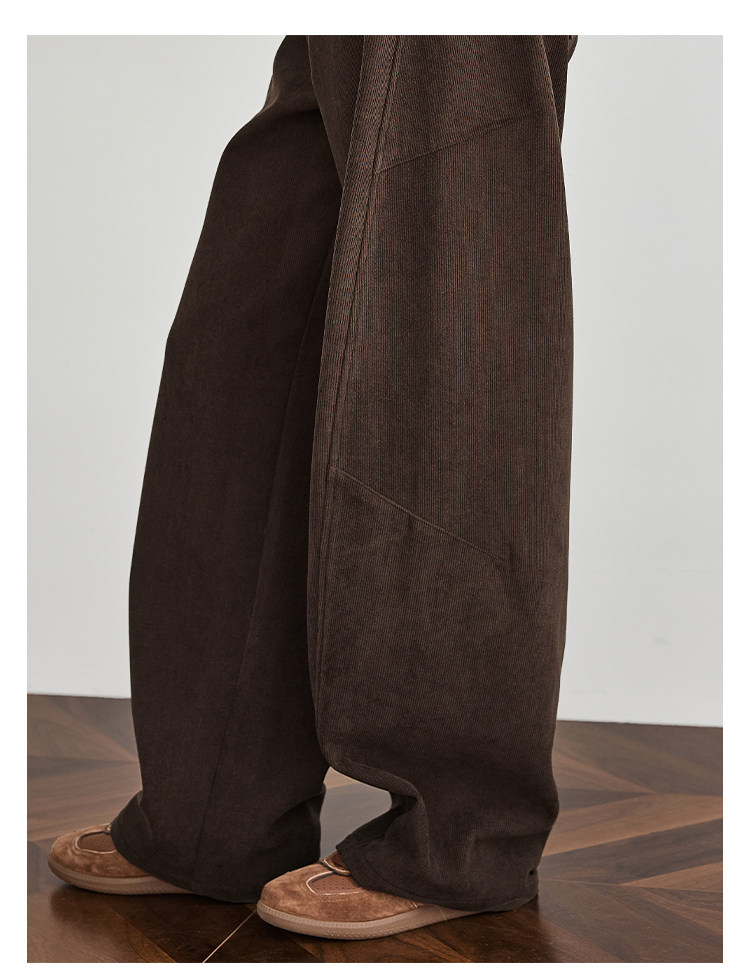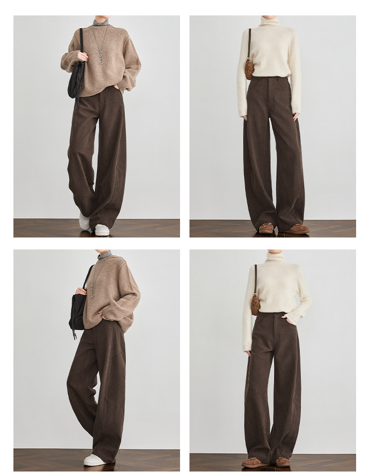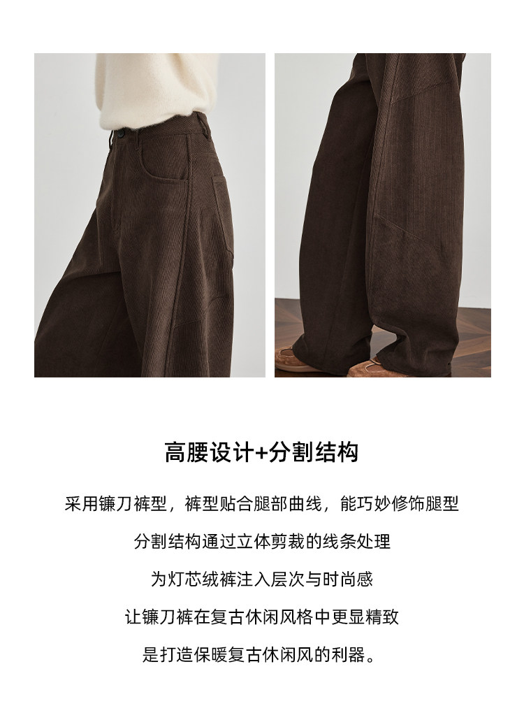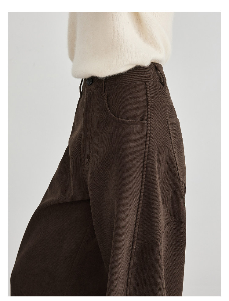 Faesslin【Vintage Melard】Coffee-Colored Corduroy Scimitar Pants with Fleece Lining, Thickened Wide-Leg Pants for Women, Winter Pants