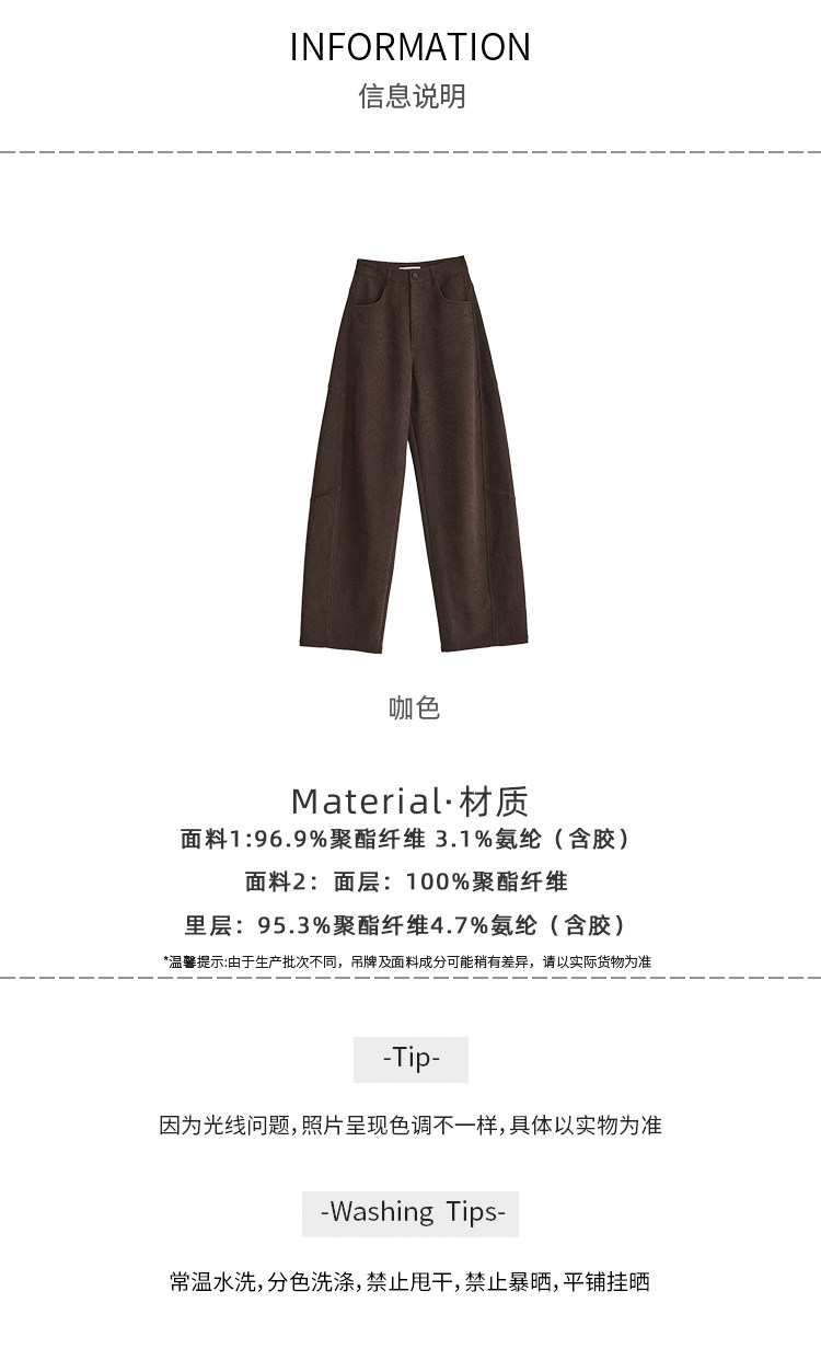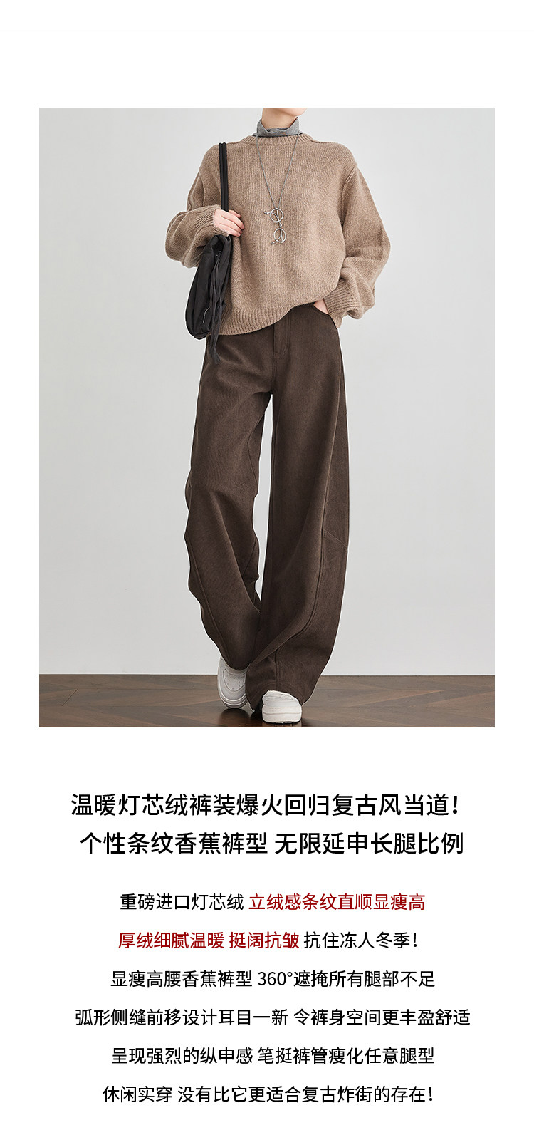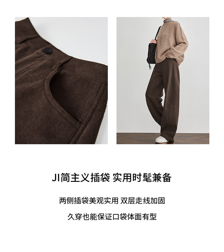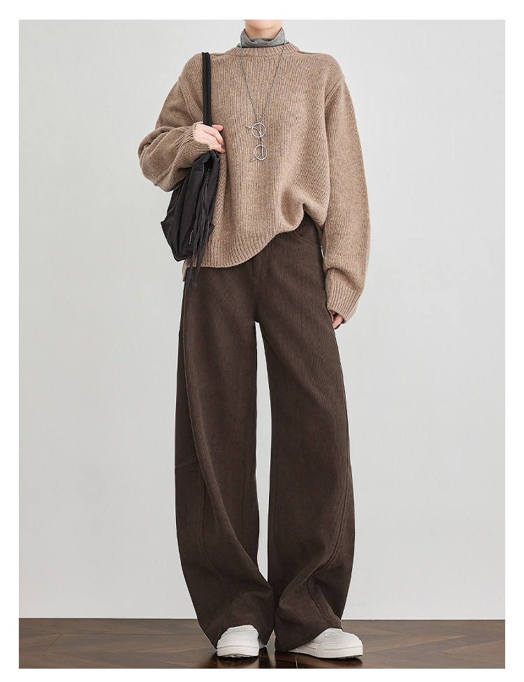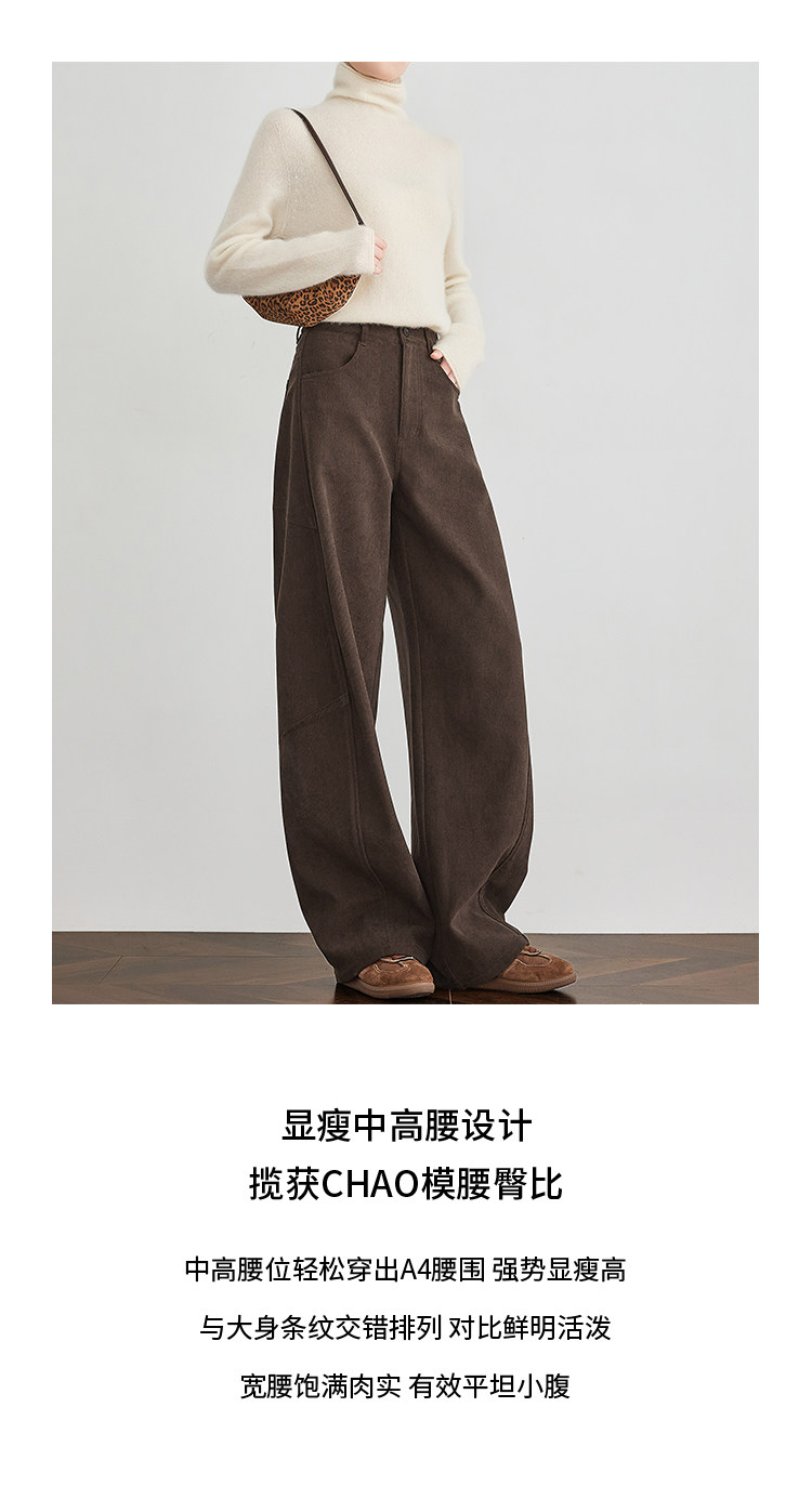 Faesslin【Vintage Melard】Coffee-Colored Corduroy Scimitar Pants with Fleece Lining, Thickened Wide-Leg Pants for Women, Winter Pants