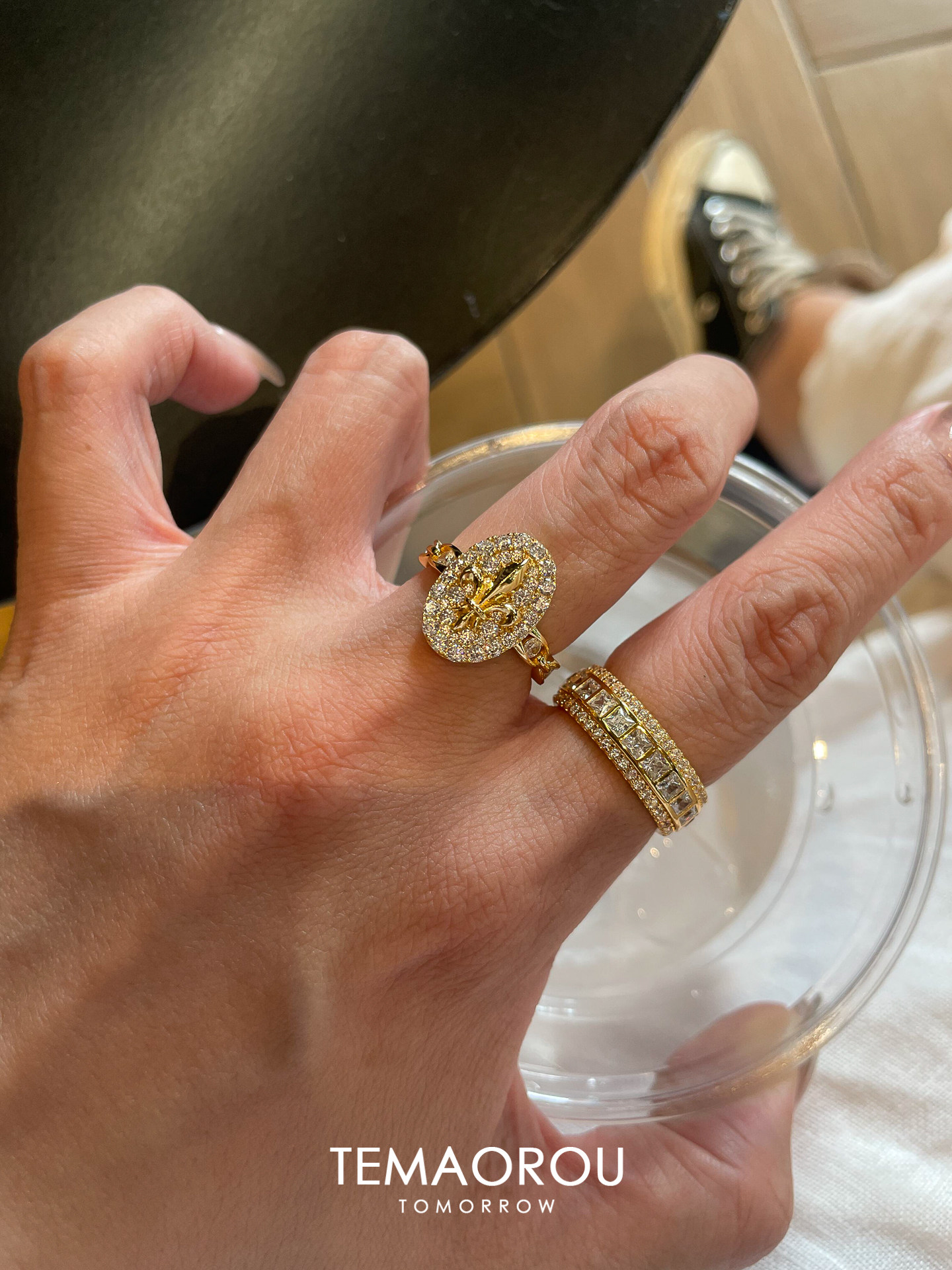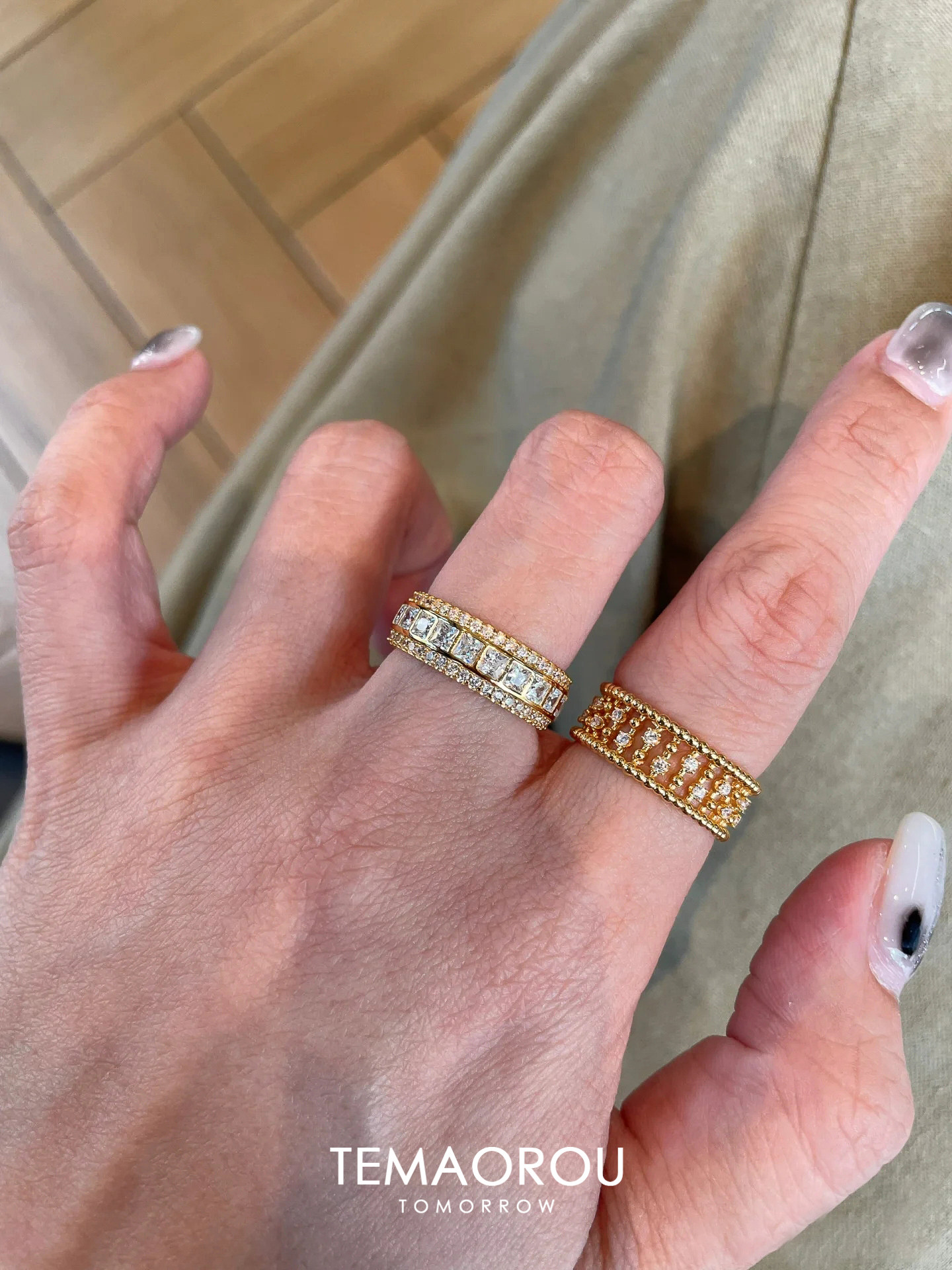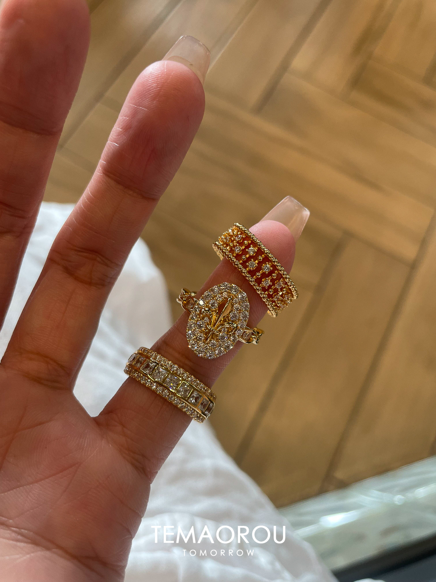 Vintage Stacked Rings with Ornate Gold and Diamond Accents, Dazzling Old Money Style Index Finger Rings with a High-End and Luxurious Feel for Autumn
