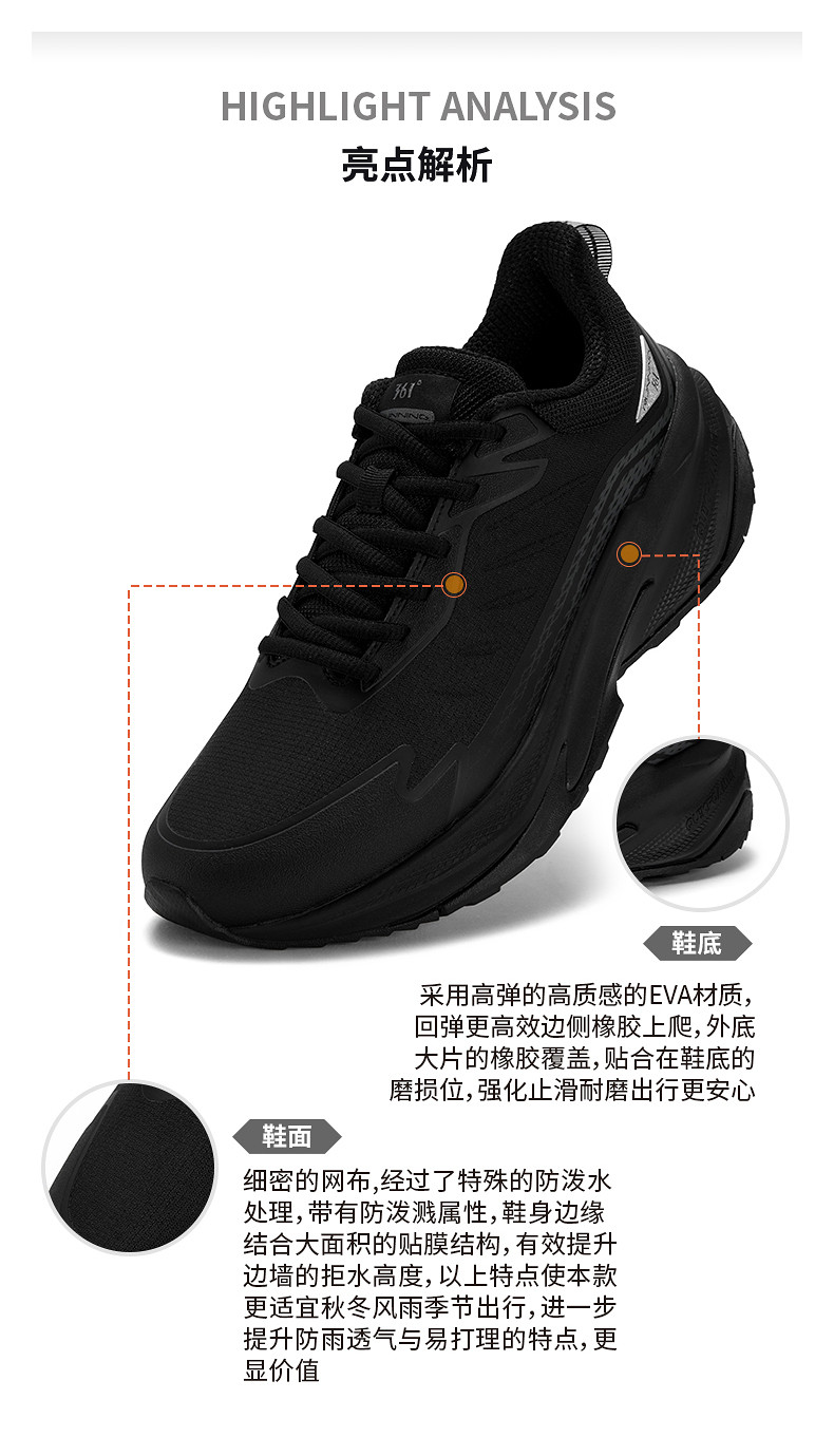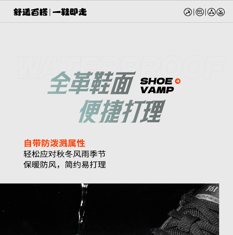 361 Yushan Yuping Running Shoes 2025 Winter Water-Repellent Sports Shoes Rainy Day Commuting Shoes Shock-Absorbing and Wear-Resistant Running Shoes