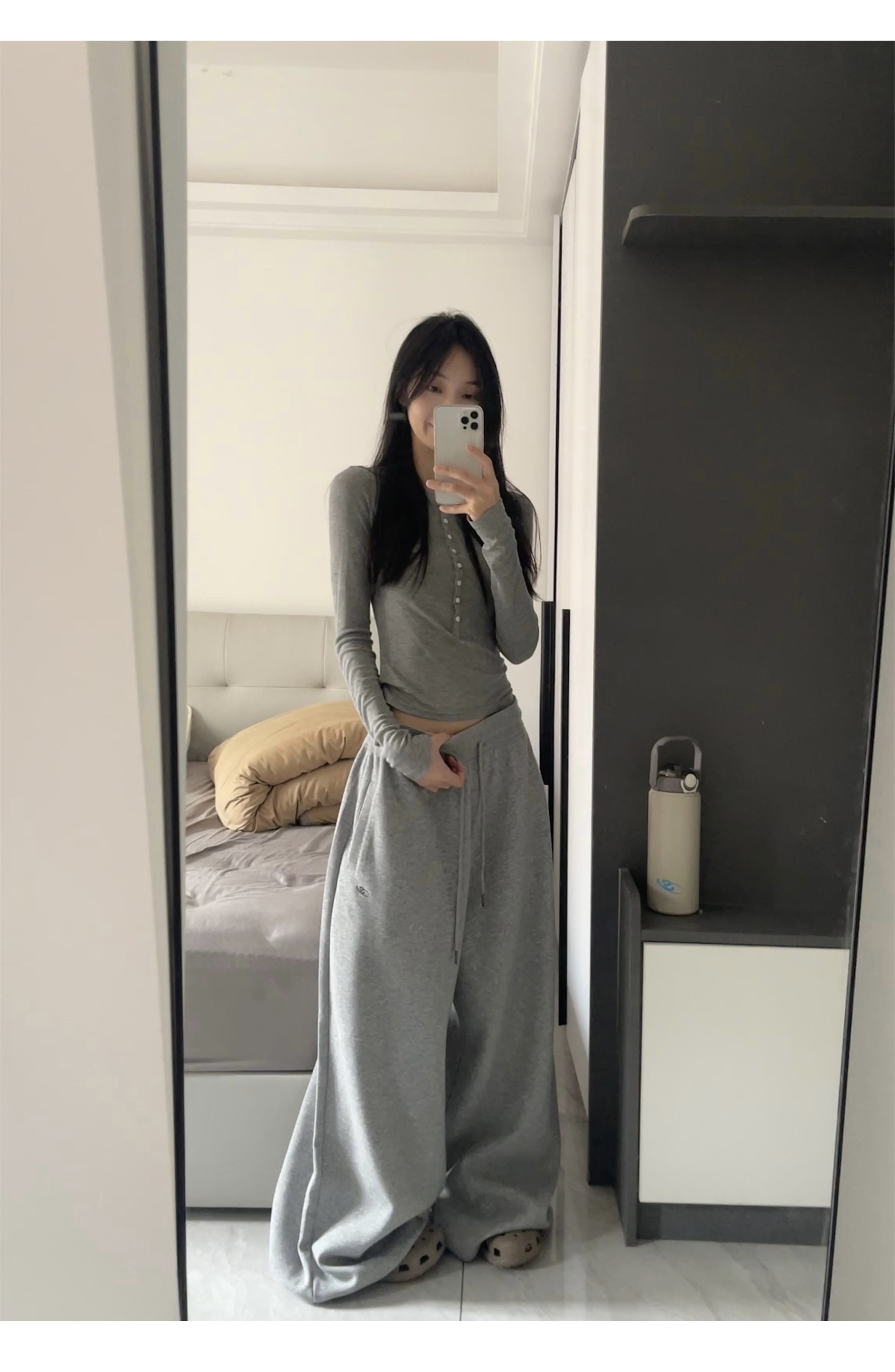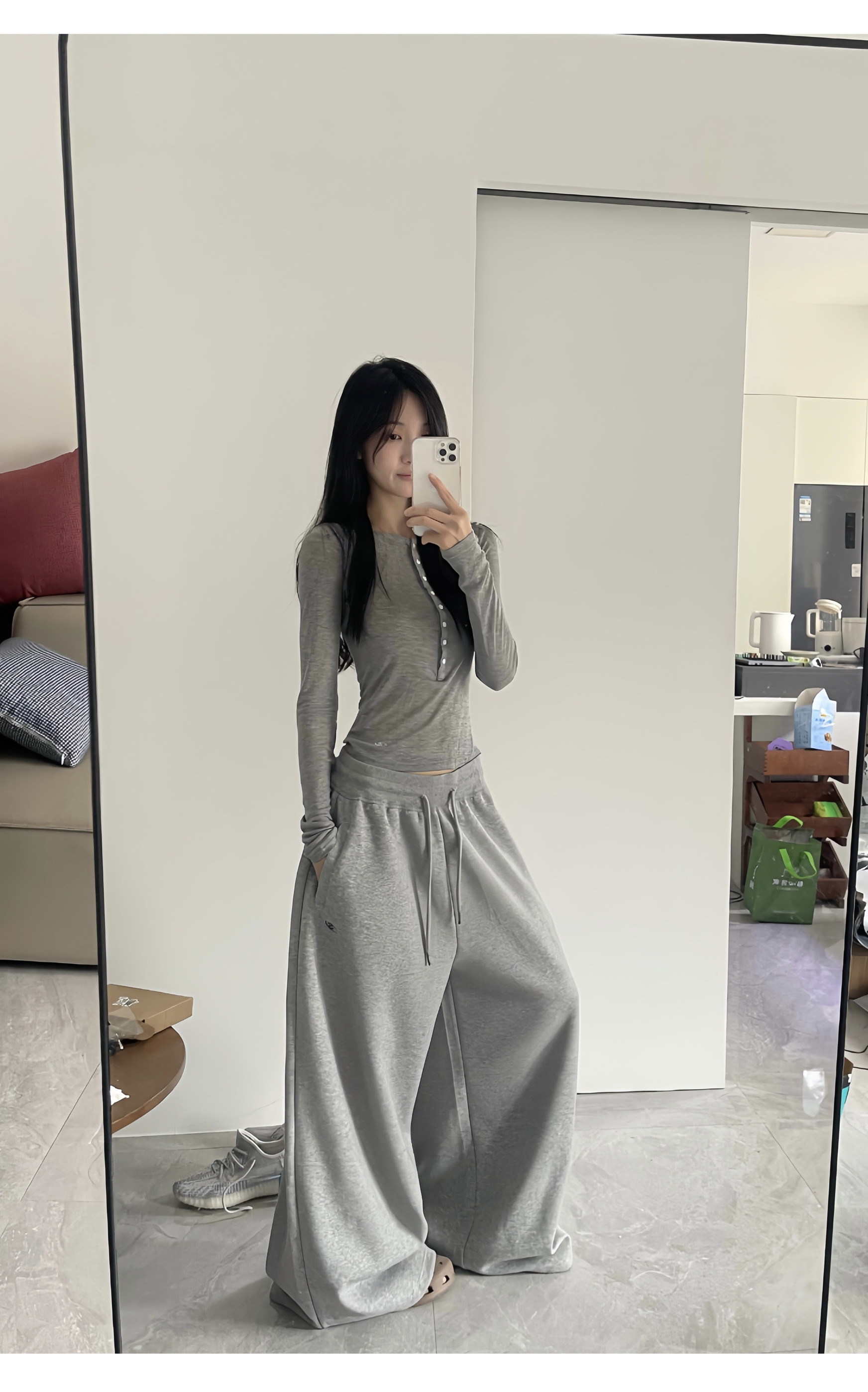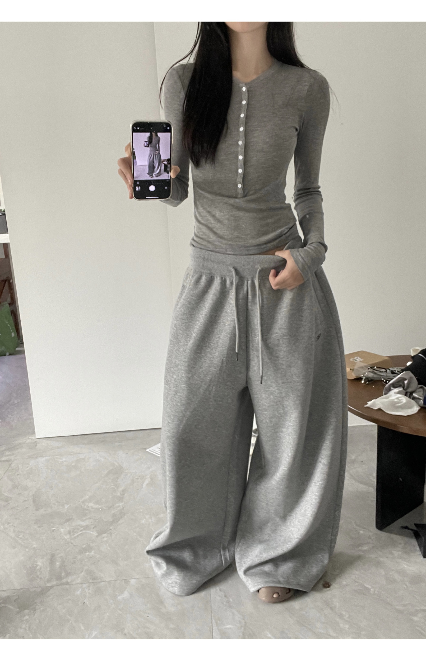 Yusan American-Style Casual Sweatpants, Composite Cotton, Elastic Ribbed Waist, Loose Drawstring Sports Pants, Unisex, 380g