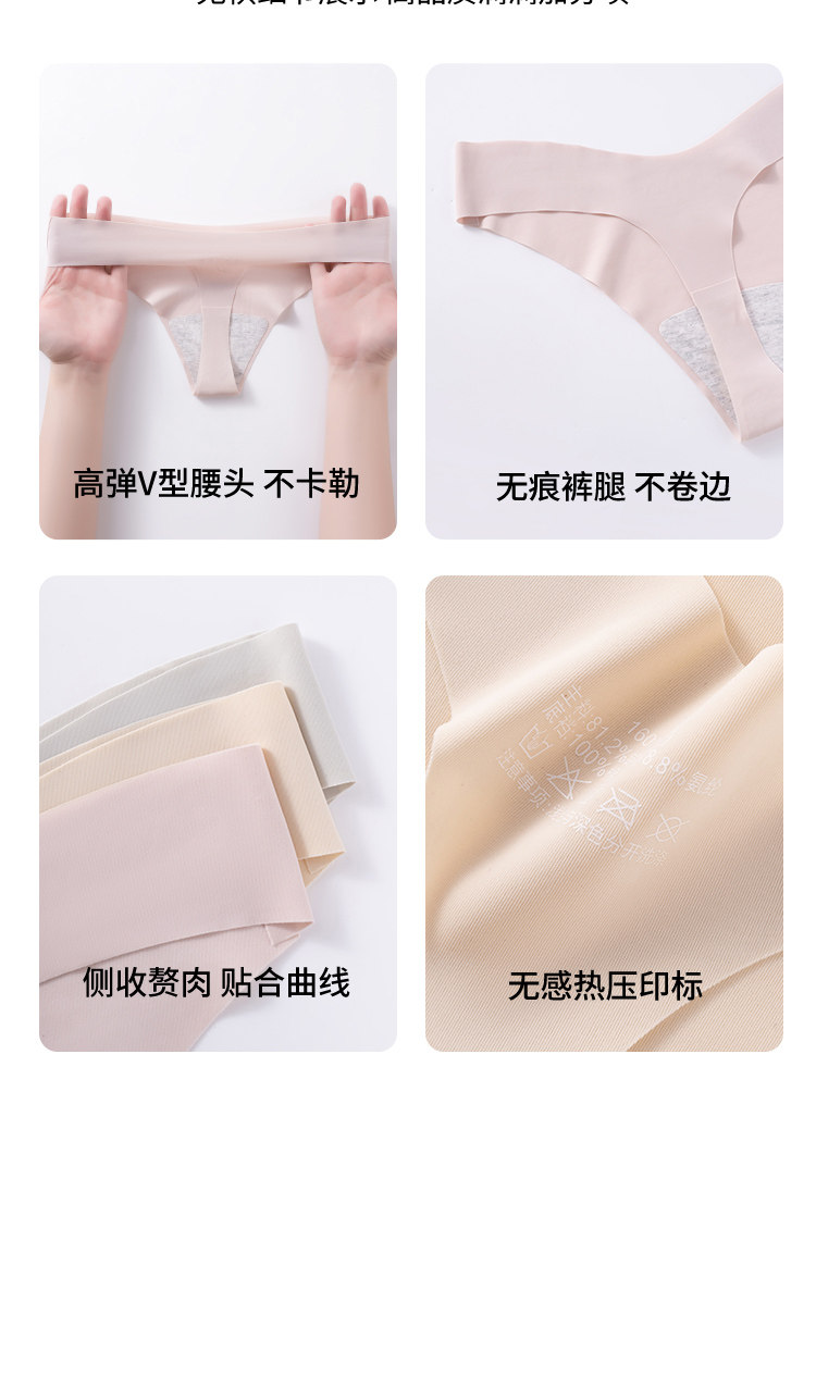 Seamless Underwear for Women, Yoga Thong, Ultra-Thin Antibacterial Pure Cotton Crotch, Sexy Invisible Sports Fitness, Non-Pinching, Ice Silk
