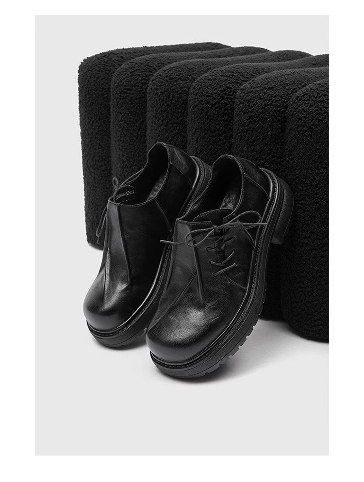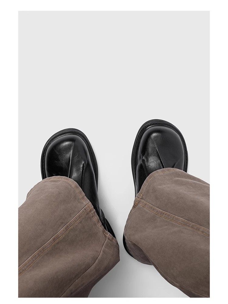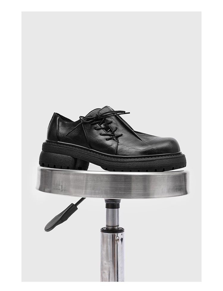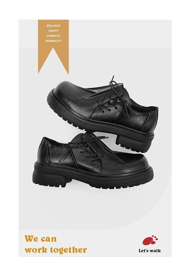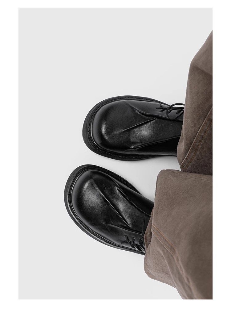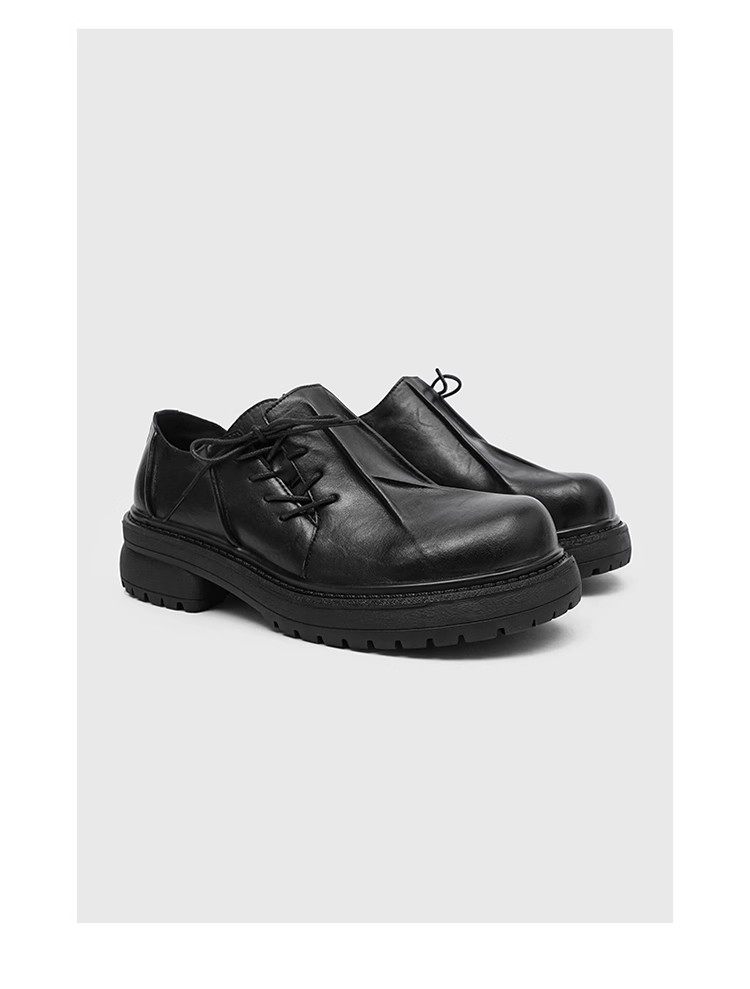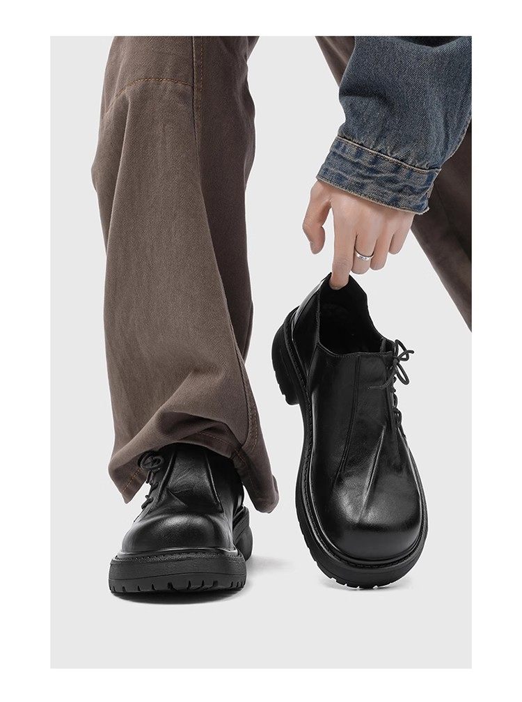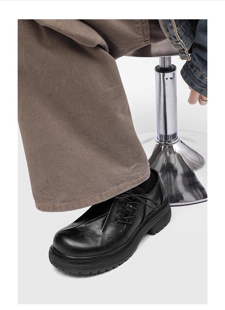 First-Layer Cowhide Pleated Leather Shoes for Men, Genuine Leather Wedding Style, Height-Increasing Casual Derby Shoes, Versatile, High-End Thick-Soled Leather Shoes