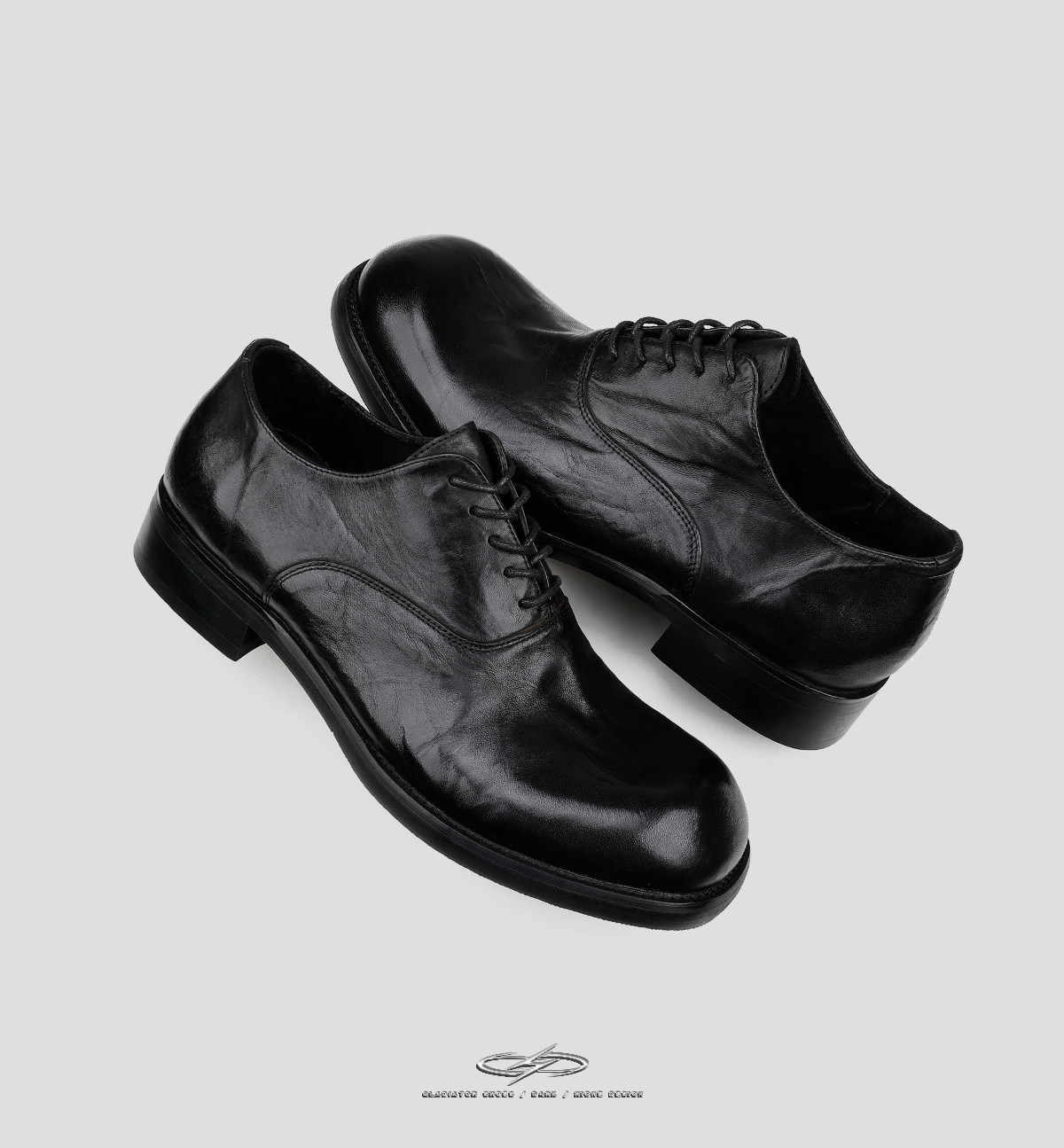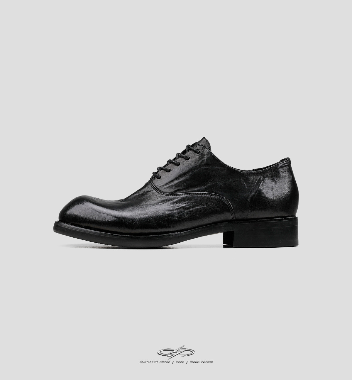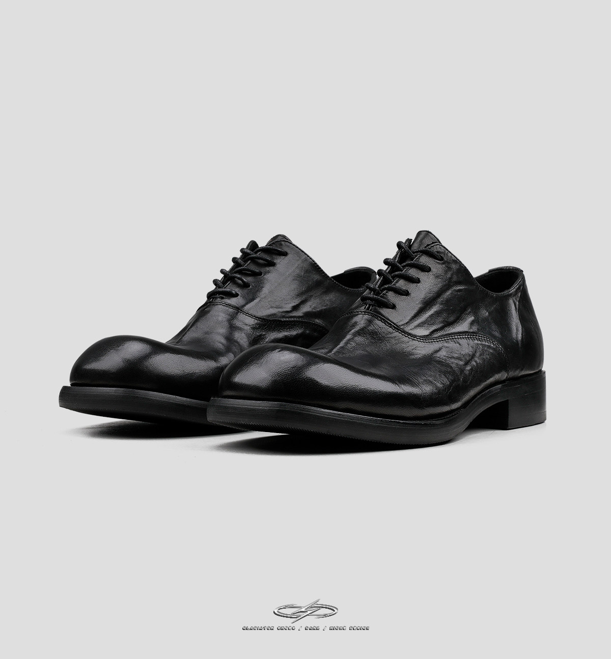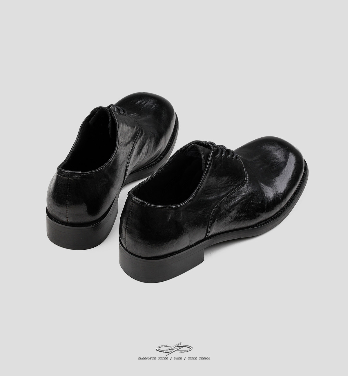 Hanqiao Diary [Black Blood Series] "Cross-Cut" Imported Washed Horse Leather Commuting Elegant Leather Shoes Square Round Toe Derby Shoes