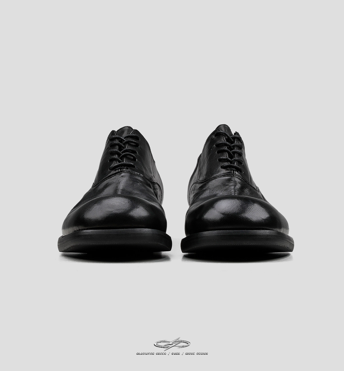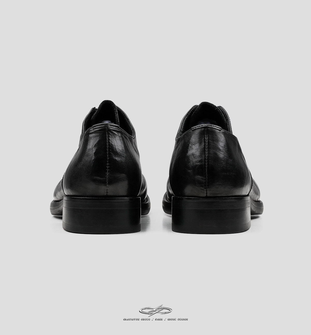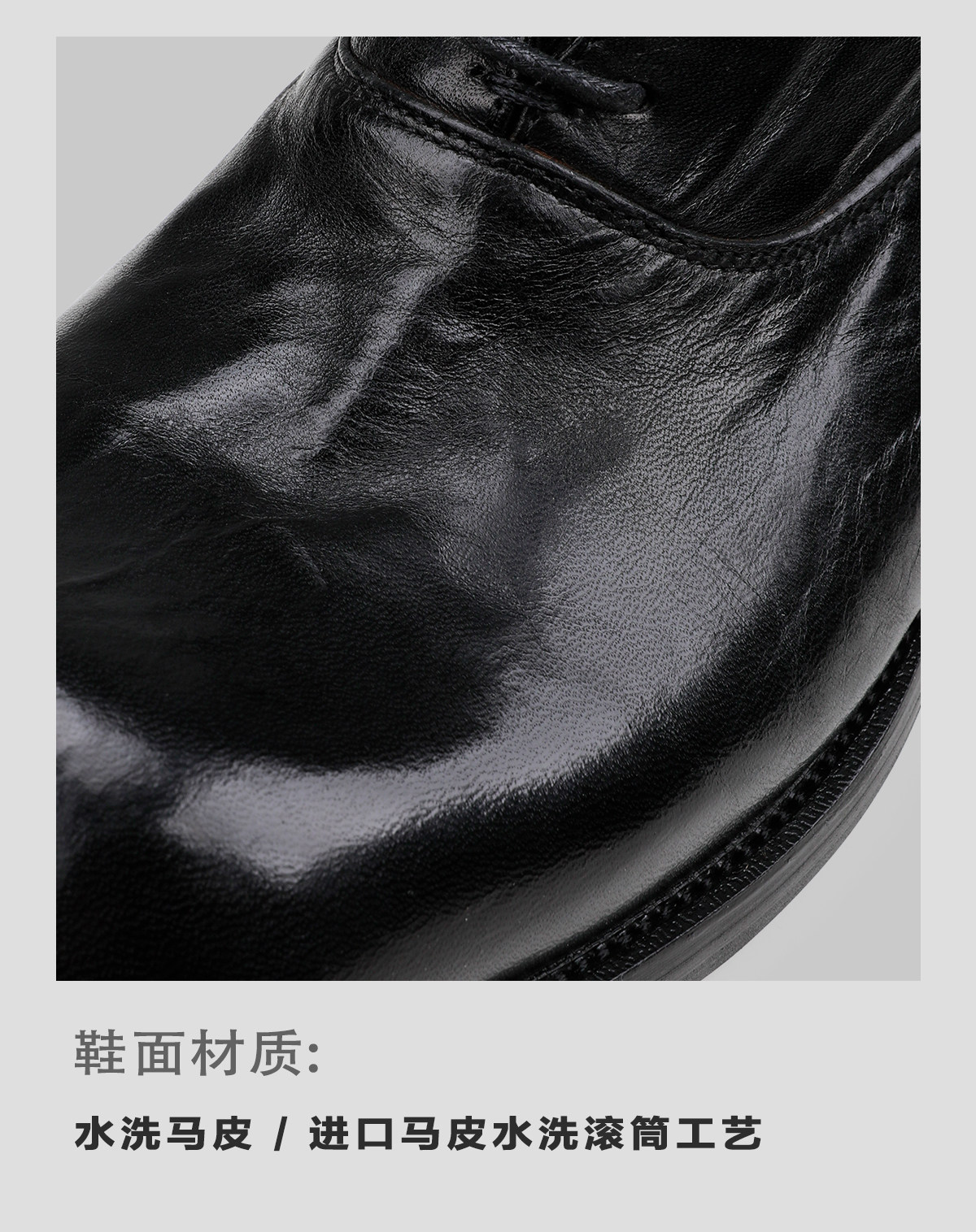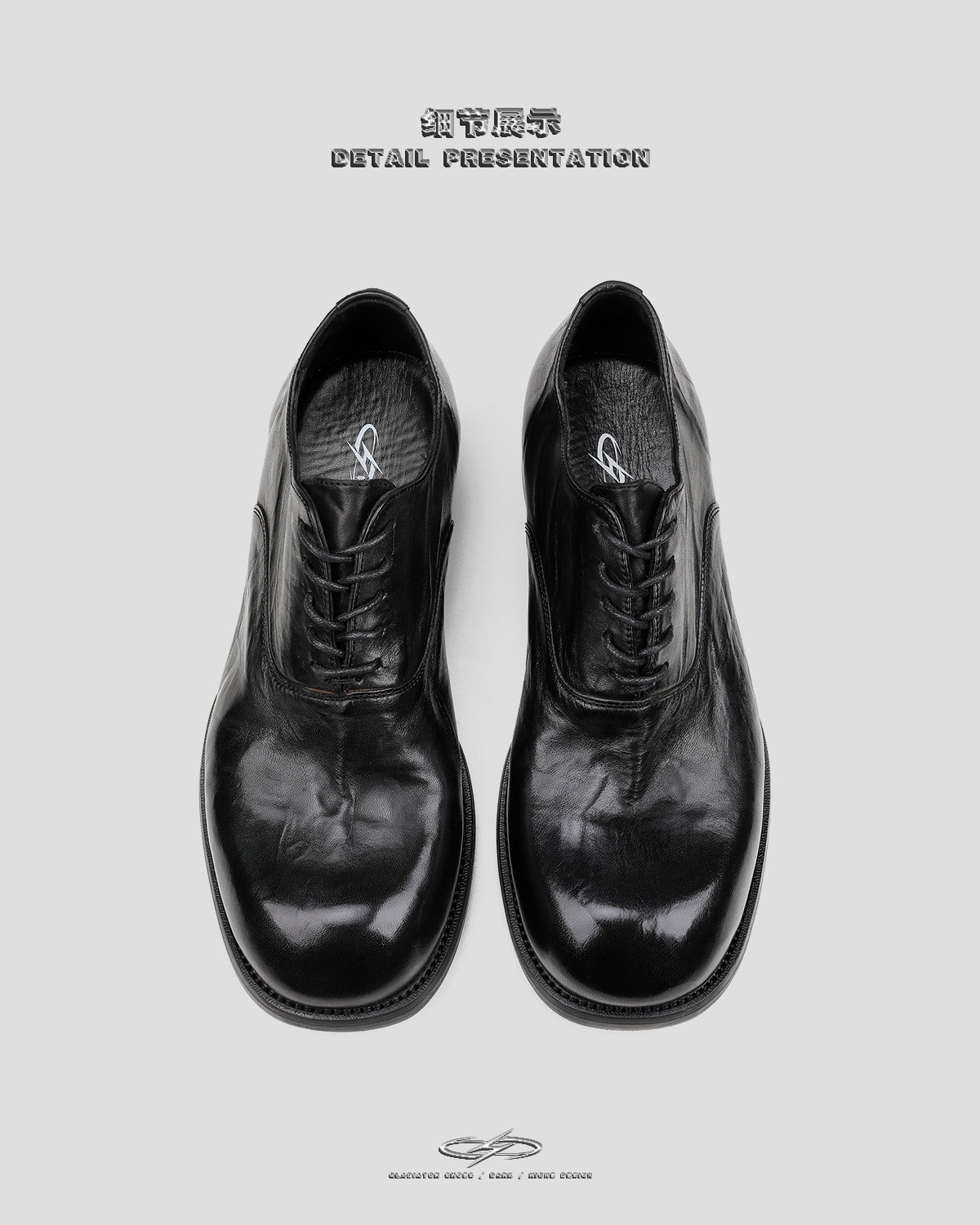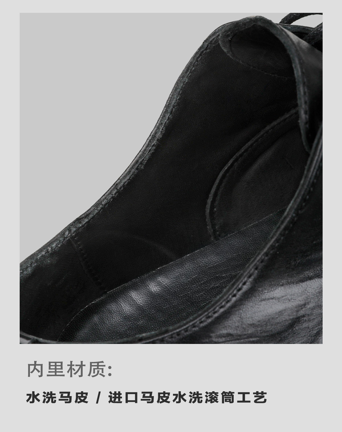 Hanqiao Diary [Black Blood Series] "Cross-Cut" Imported Washed Horse Leather Commuting Elegant Leather Shoes Square Round Toe Derby Shoes