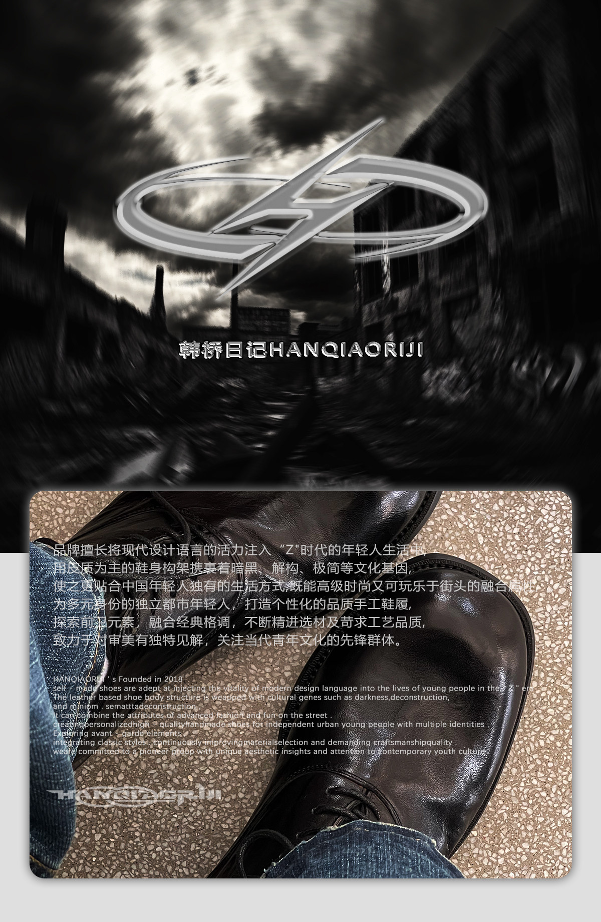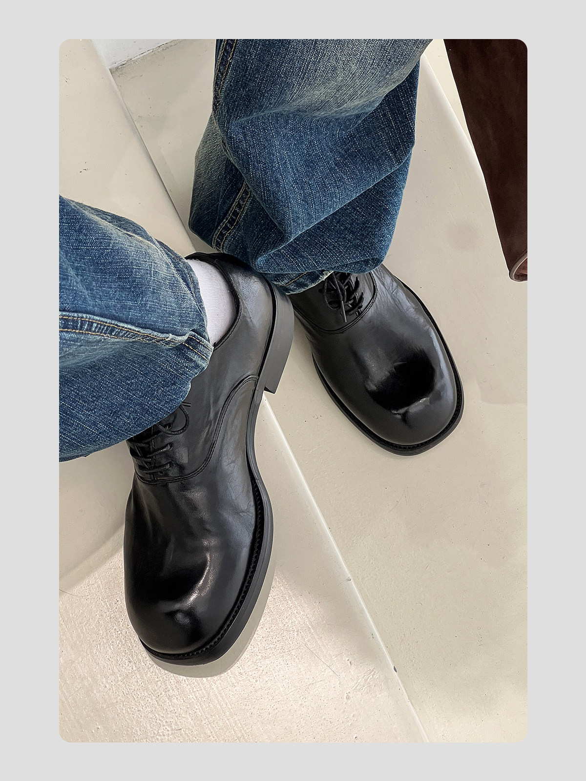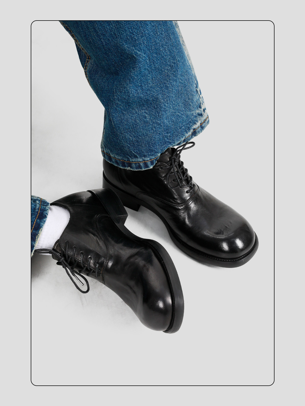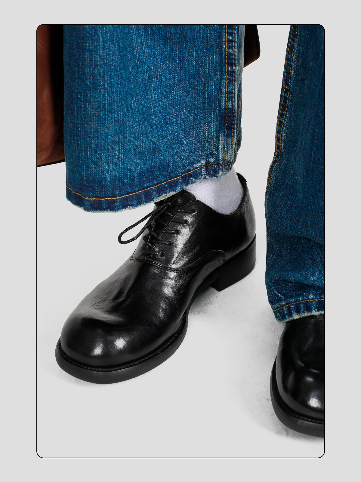 Hanqiao Diary [Black Blood Series] "Cross-Cut" Imported Washed Horse Leather Commuting Elegant Leather Shoes Square Round Toe Derby Shoes