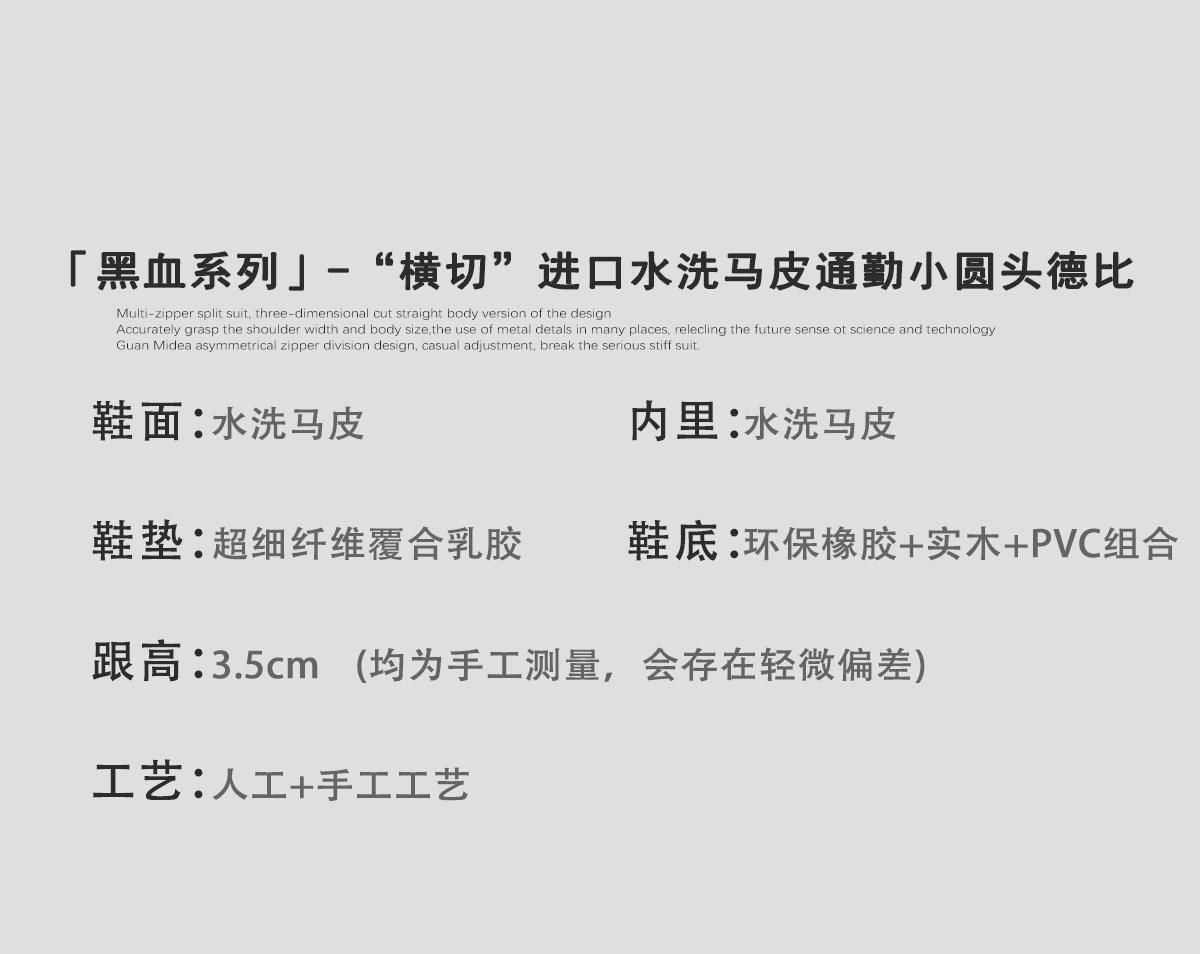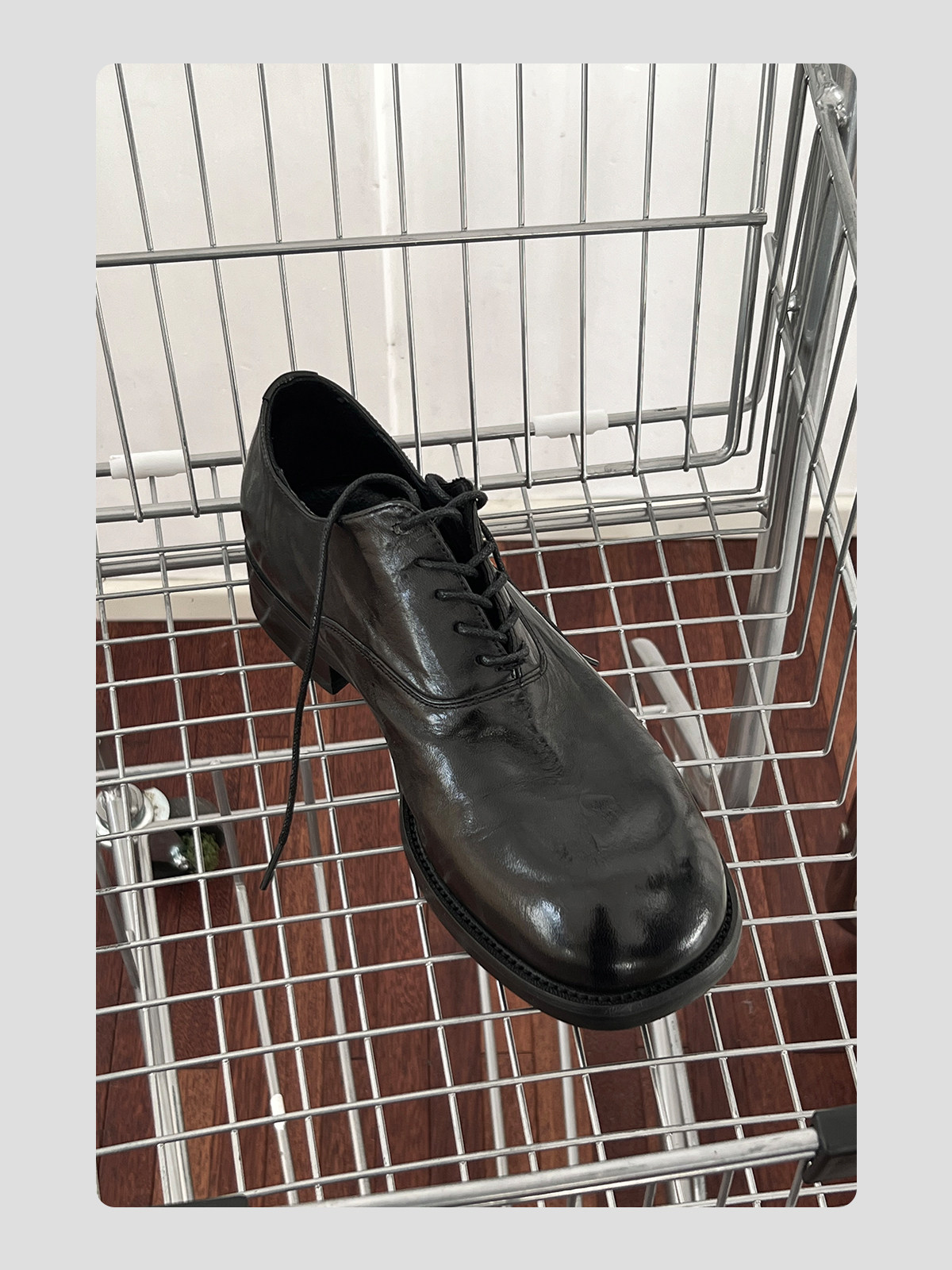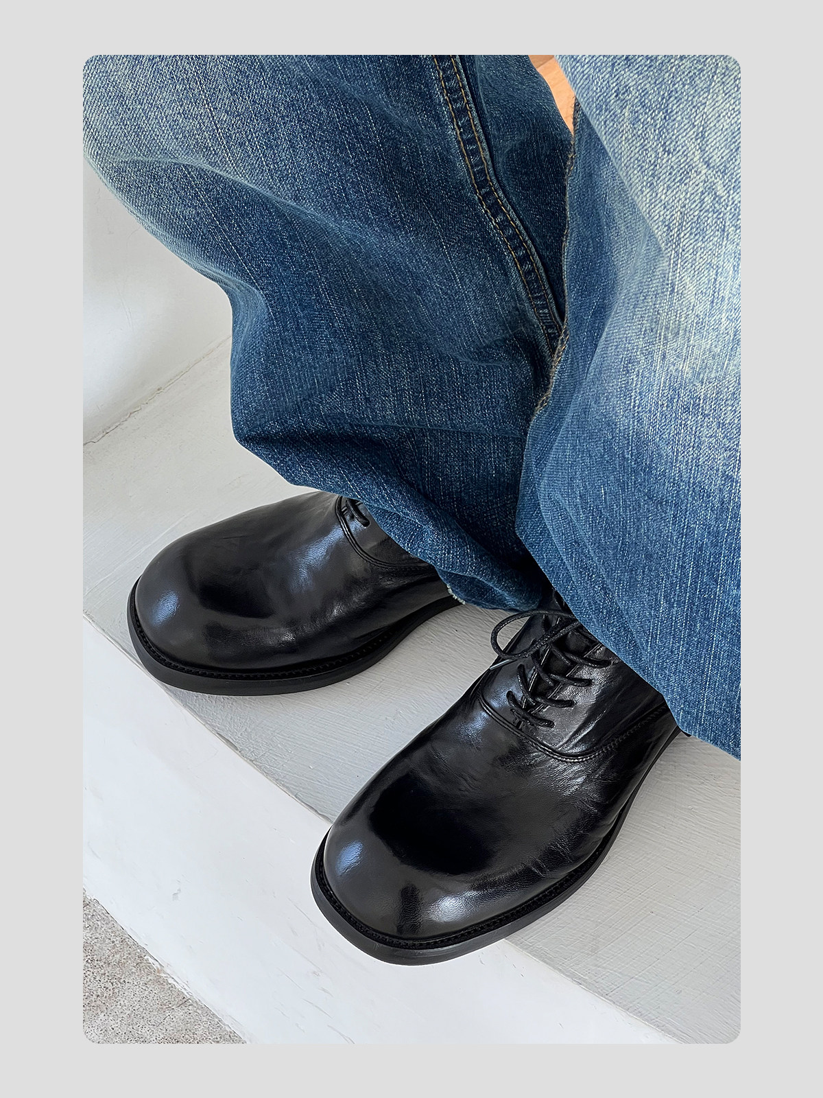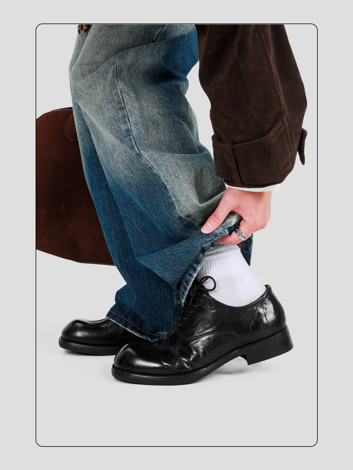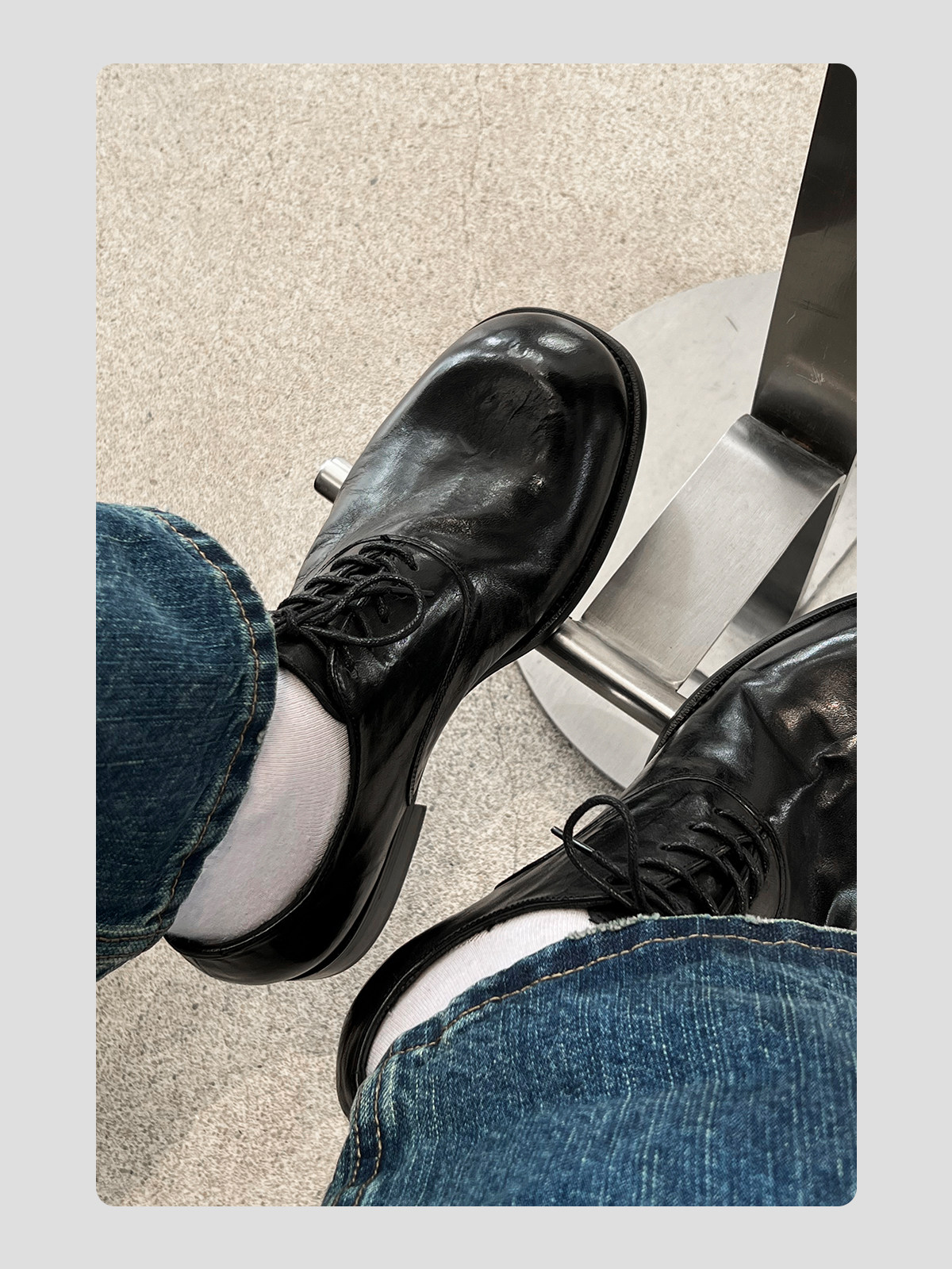 Hanqiao Diary [Black Blood Series] "Cross-Cut" Imported Washed Horse Leather Commuting Elegant Leather Shoes Square Round Toe Derby Shoes
