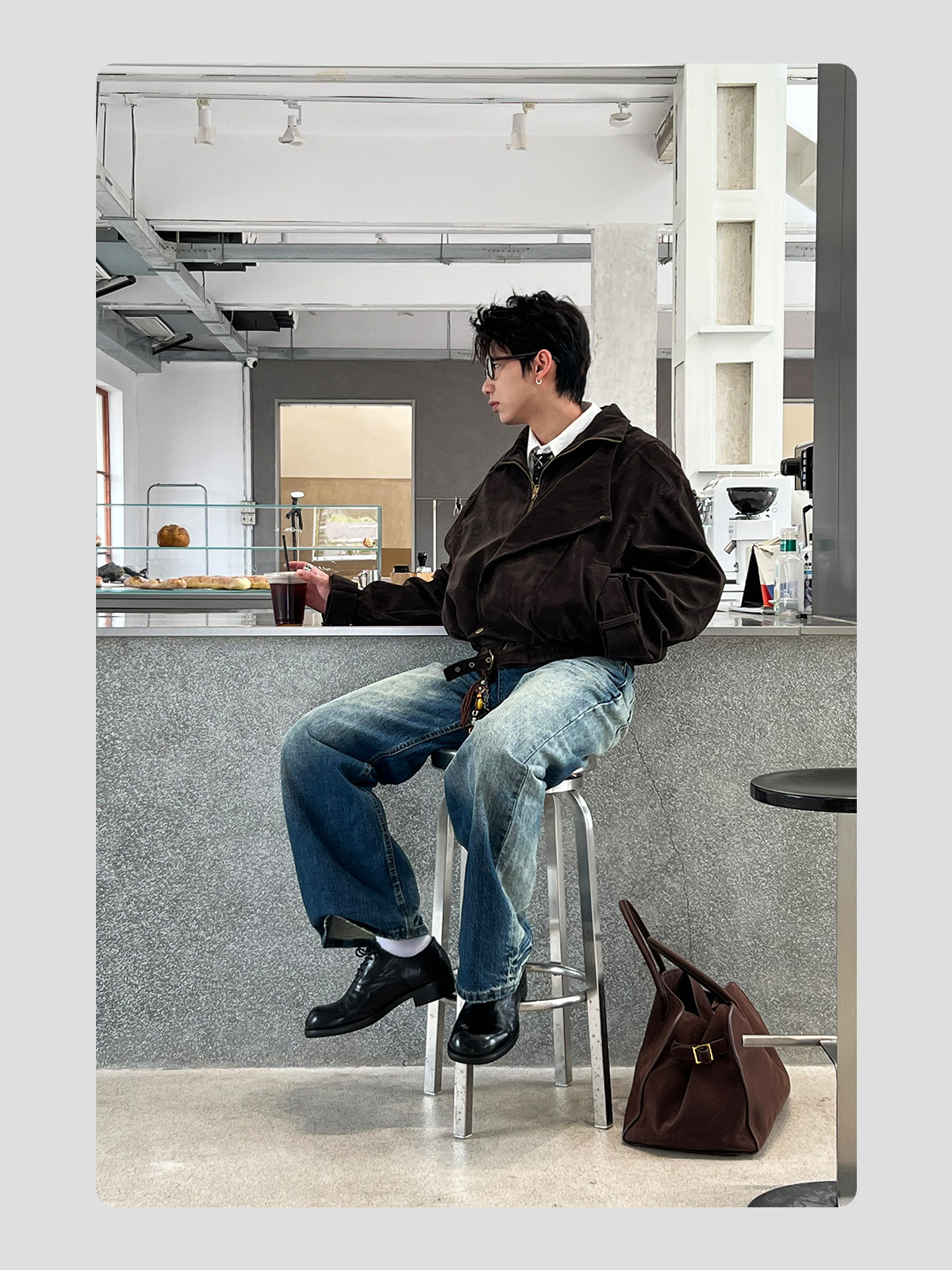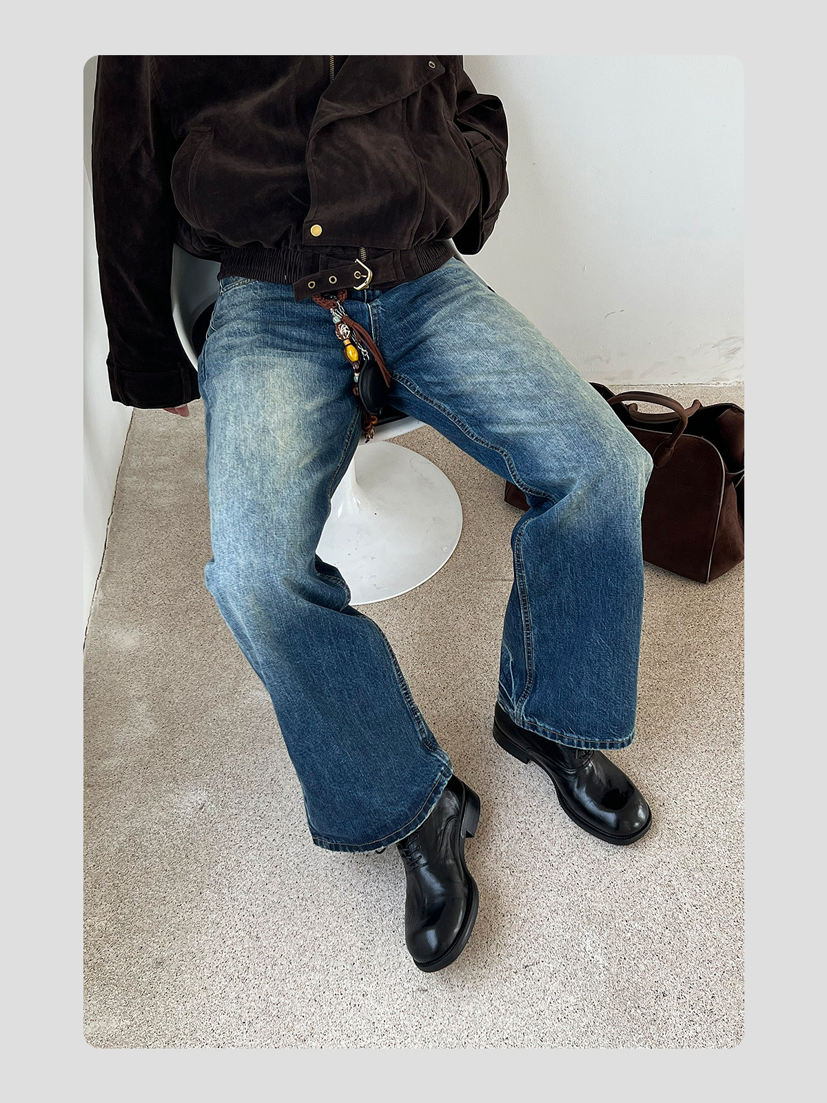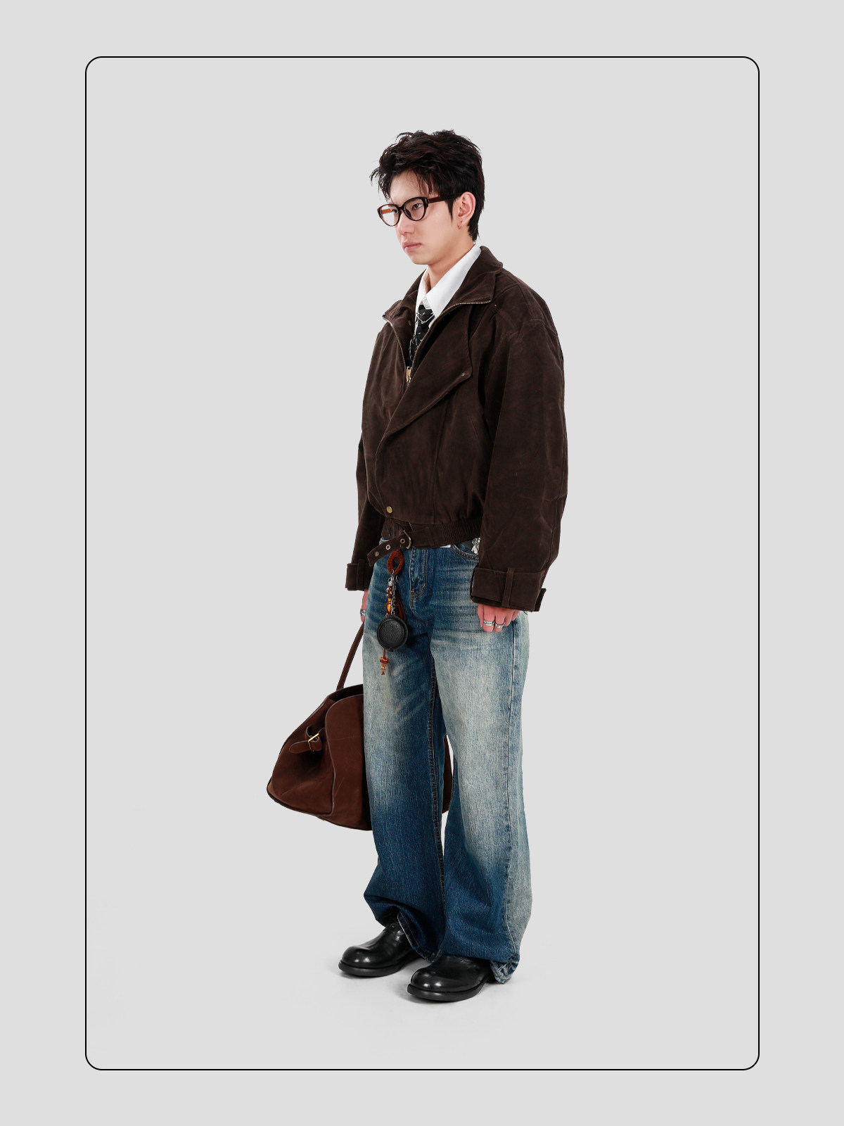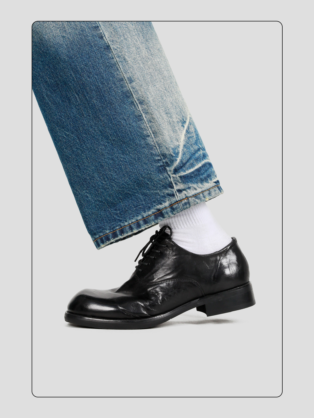 Hanqiao Diary [Black Blood Series] "Cross-Cut" Imported Washed Horse Leather Commuting Elegant Leather Shoes Square Round Toe Derby Shoes