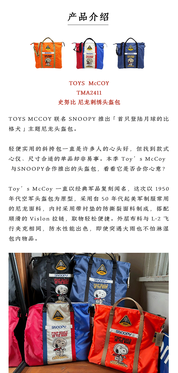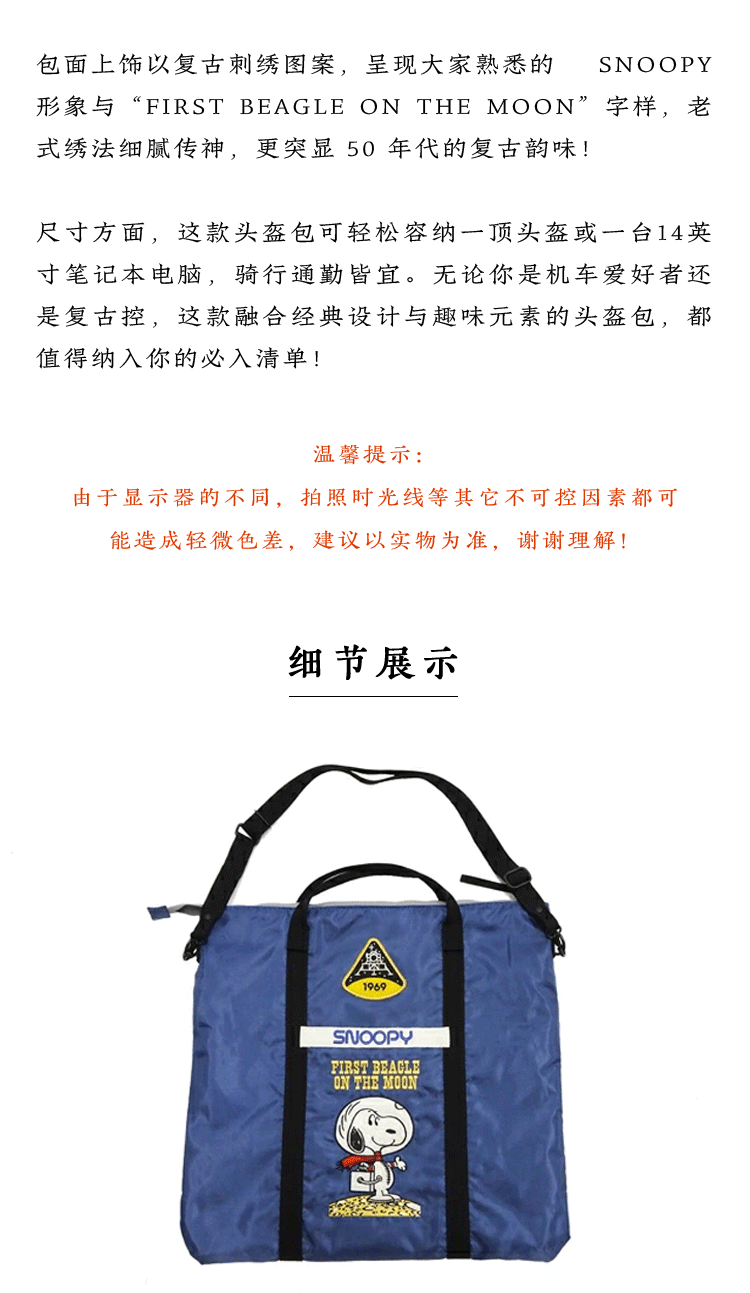 Toys Mccoy Japanese-Made Snoopy Embroidered Nylon Shoulder Crossbody Helmet Bag Tma2411