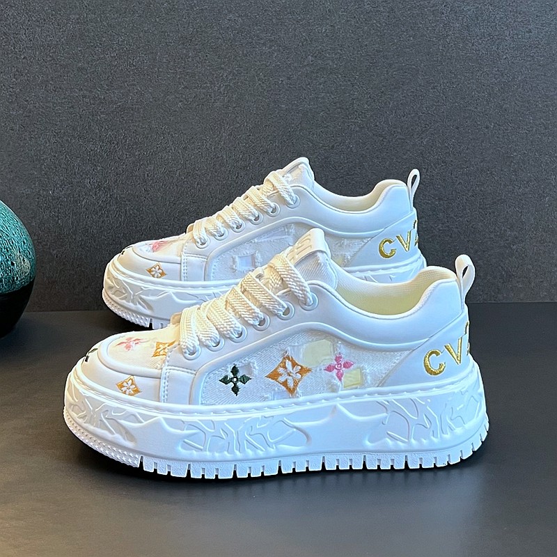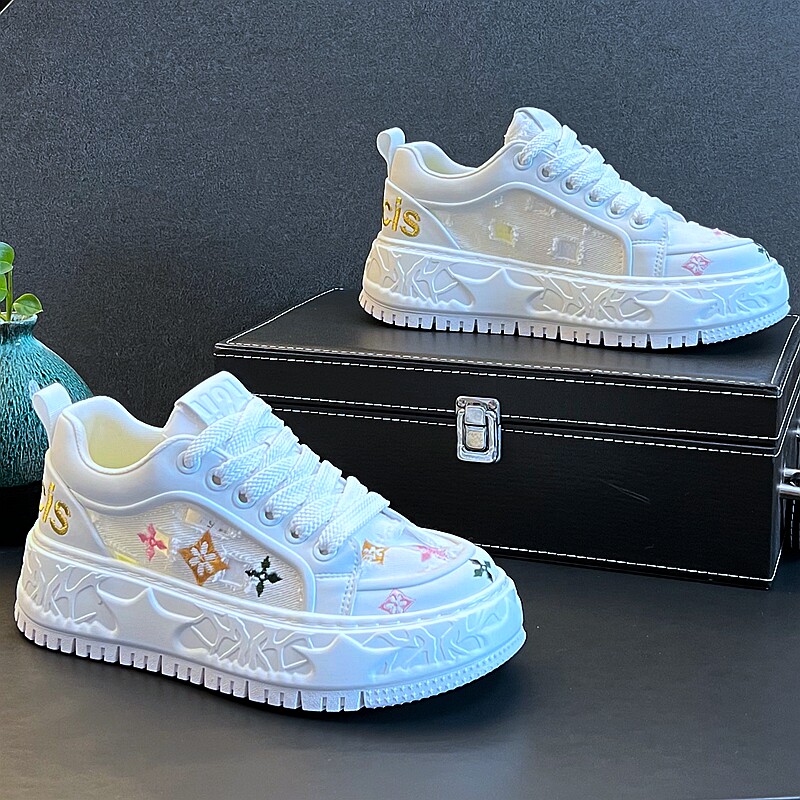 Summer Breathable White Shoes for Men, Mesh Canvas Shoes, Fashionable Trendy Embroidered Sneakers, 2025 New White Casual Shoes