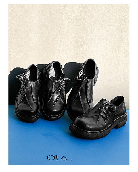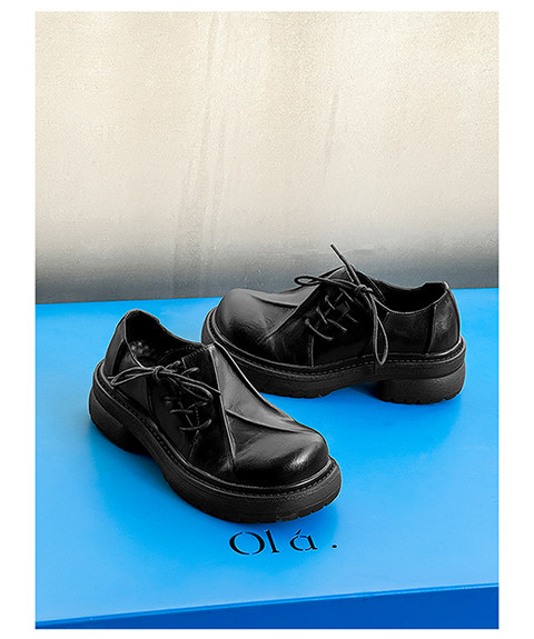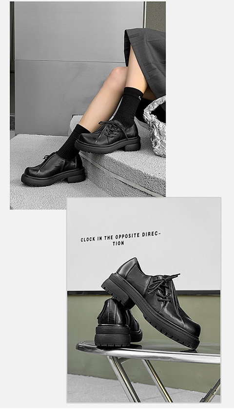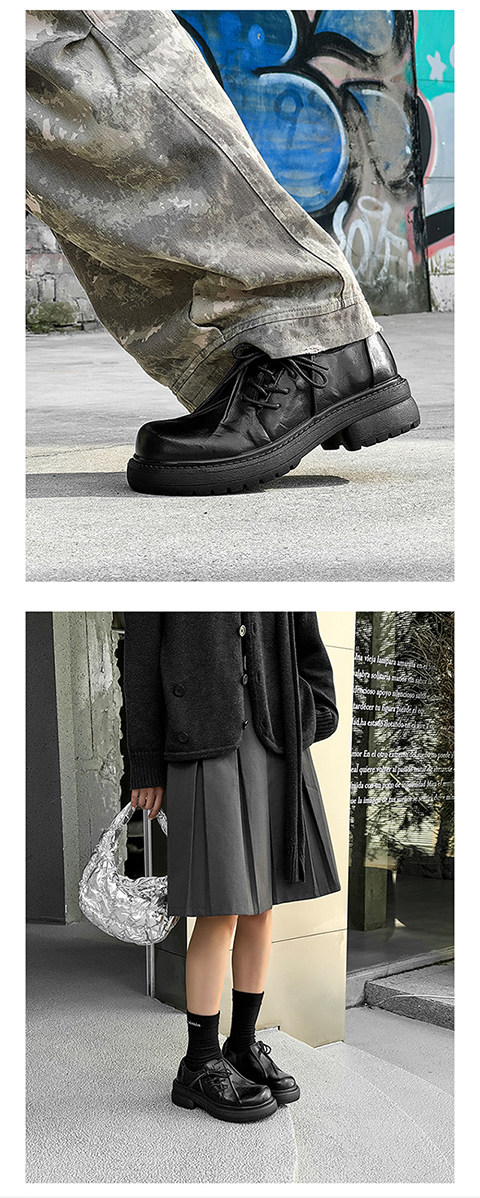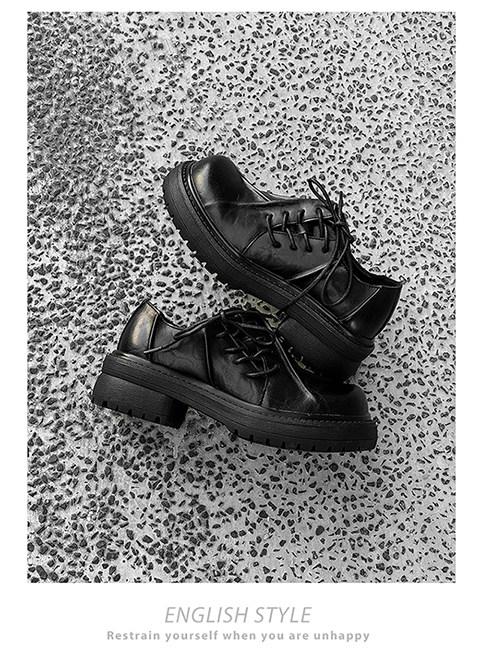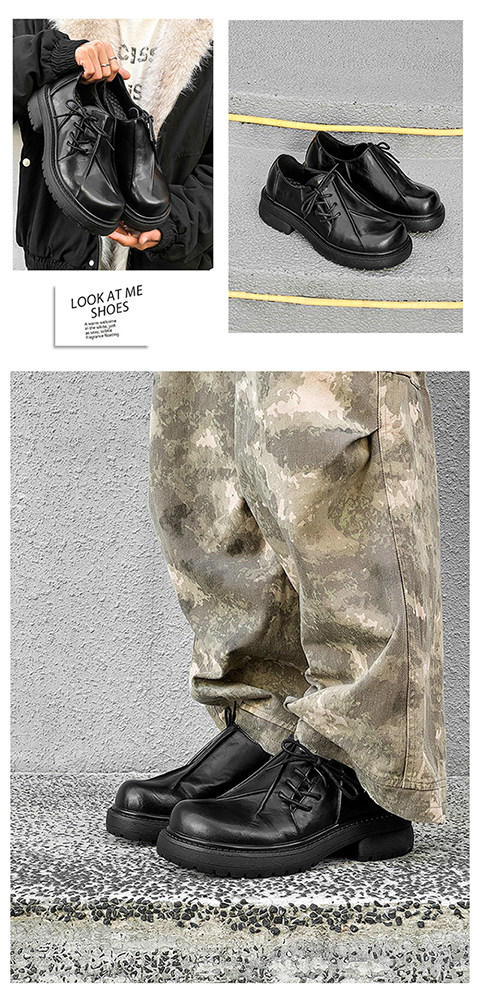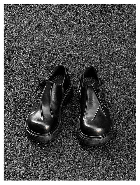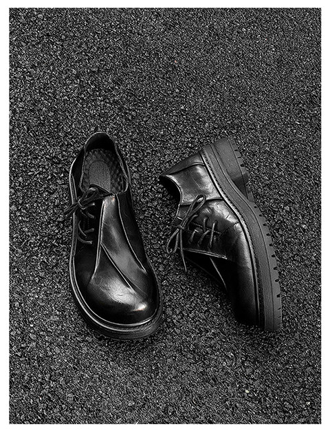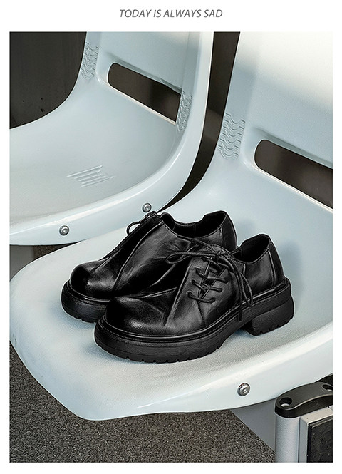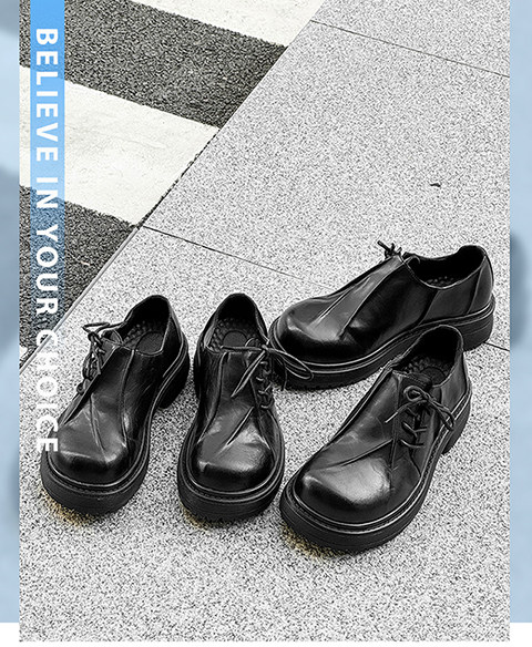 Cleanfit Derby Shoes for Men, Black Large Leather Shoes, British Style, Raised Toe, Wrinkled, High-End Commuter Trendy Shoes