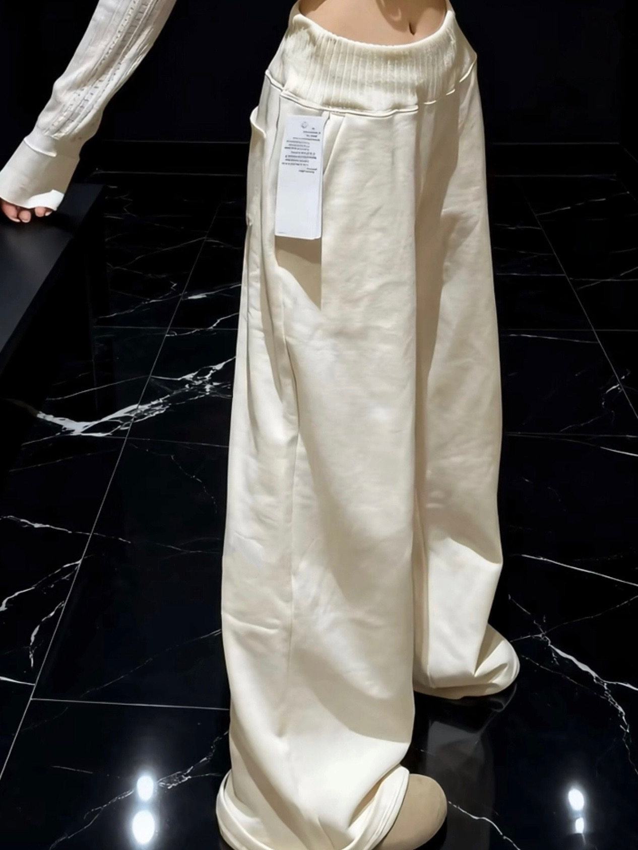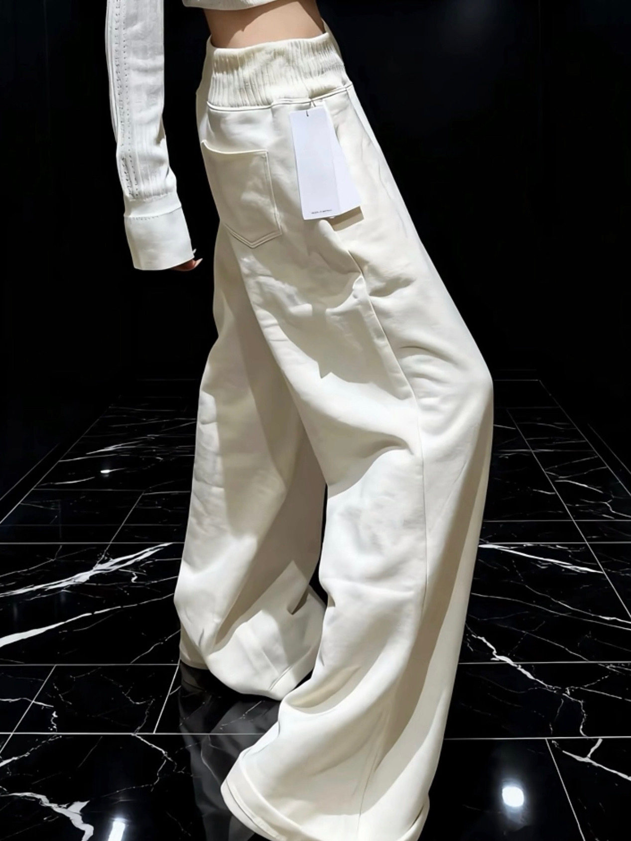 Korean Retro Lazy Style Fleece-Lined Sweatpants for Women, Spring, Autumn, and Winter, High-Waisted, Slimming, Soft and Comfortable, Casual Straight-Leg Wide-Leg Pants