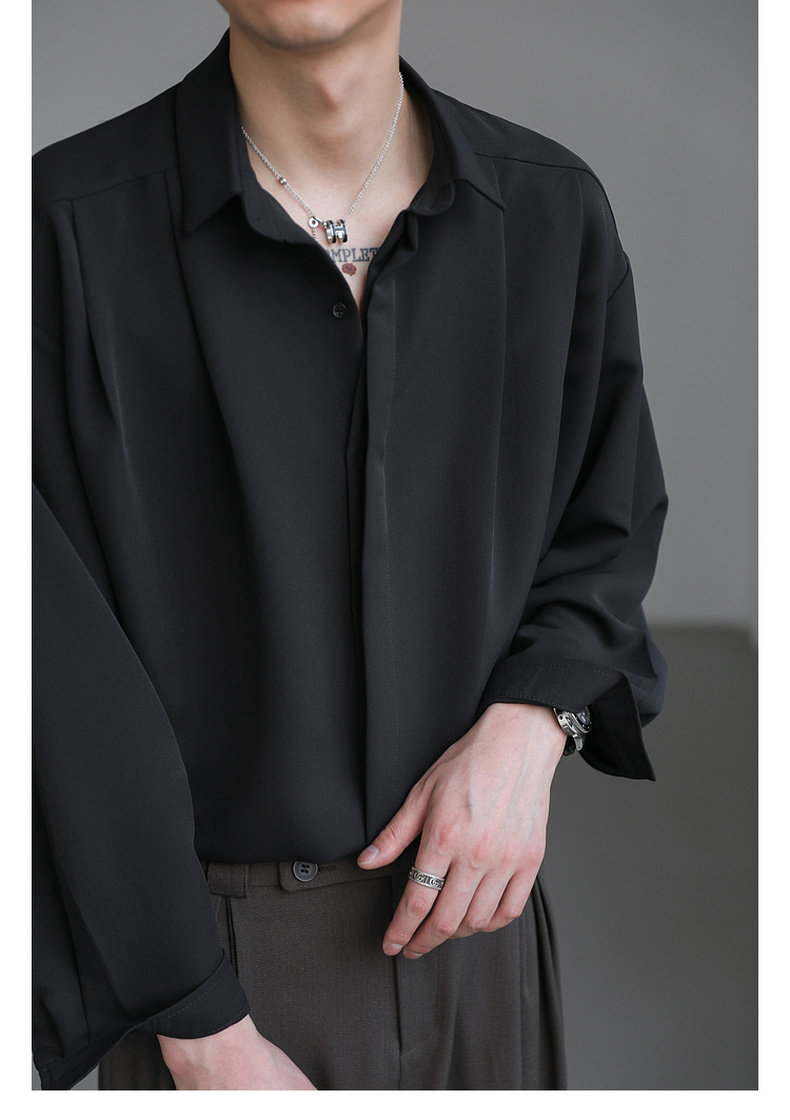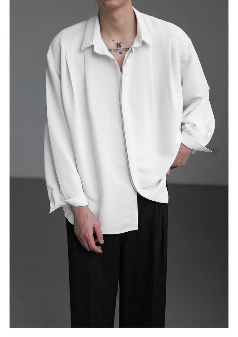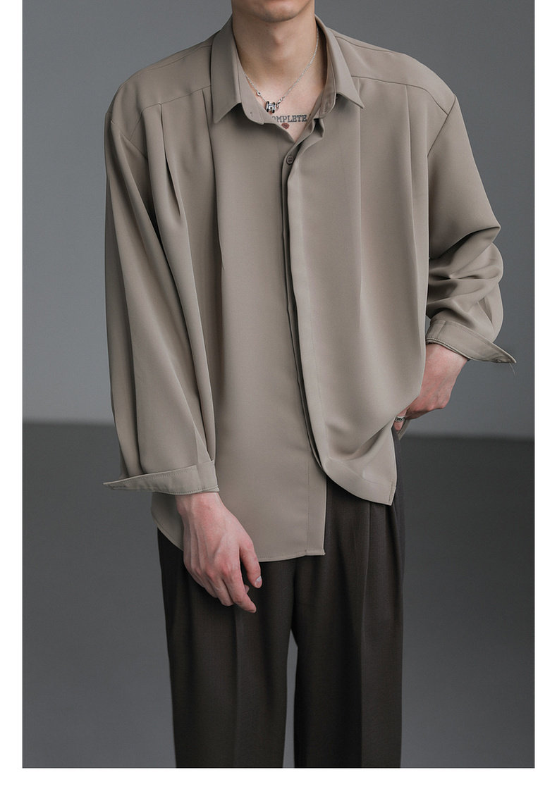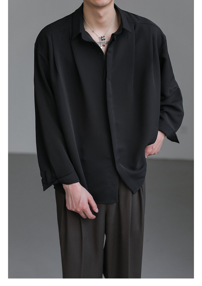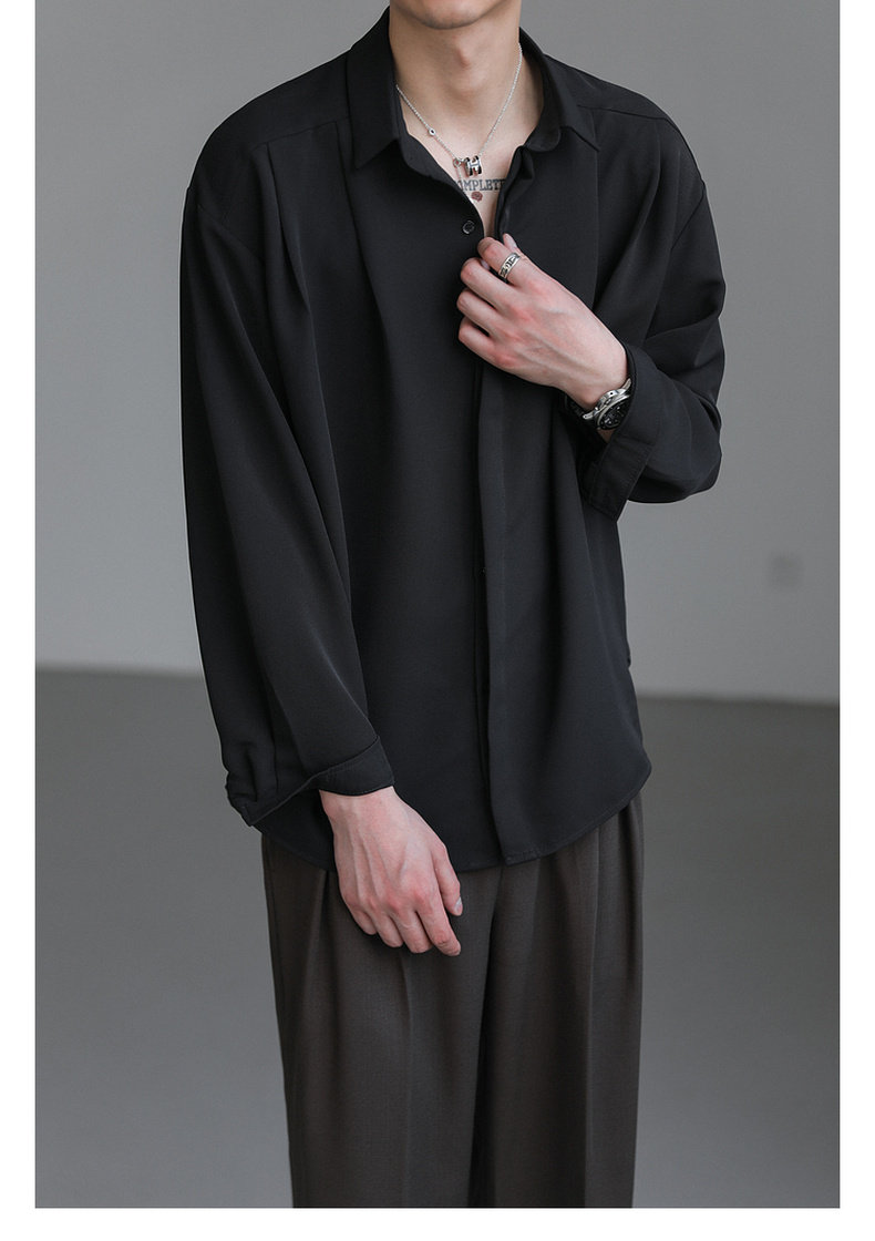 Zpz Korean Loose-Fitting Solid Color High-End Drape Long-Sleeve Shirt Men's Spring and Autumn Top Trendy Cool No-Iron Shirt
