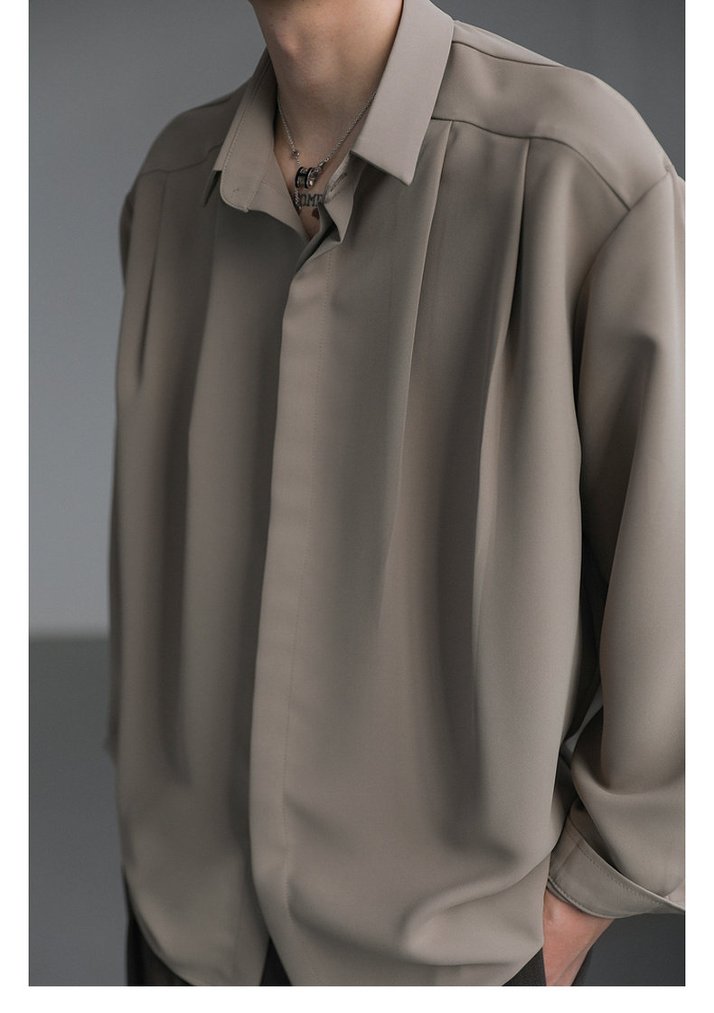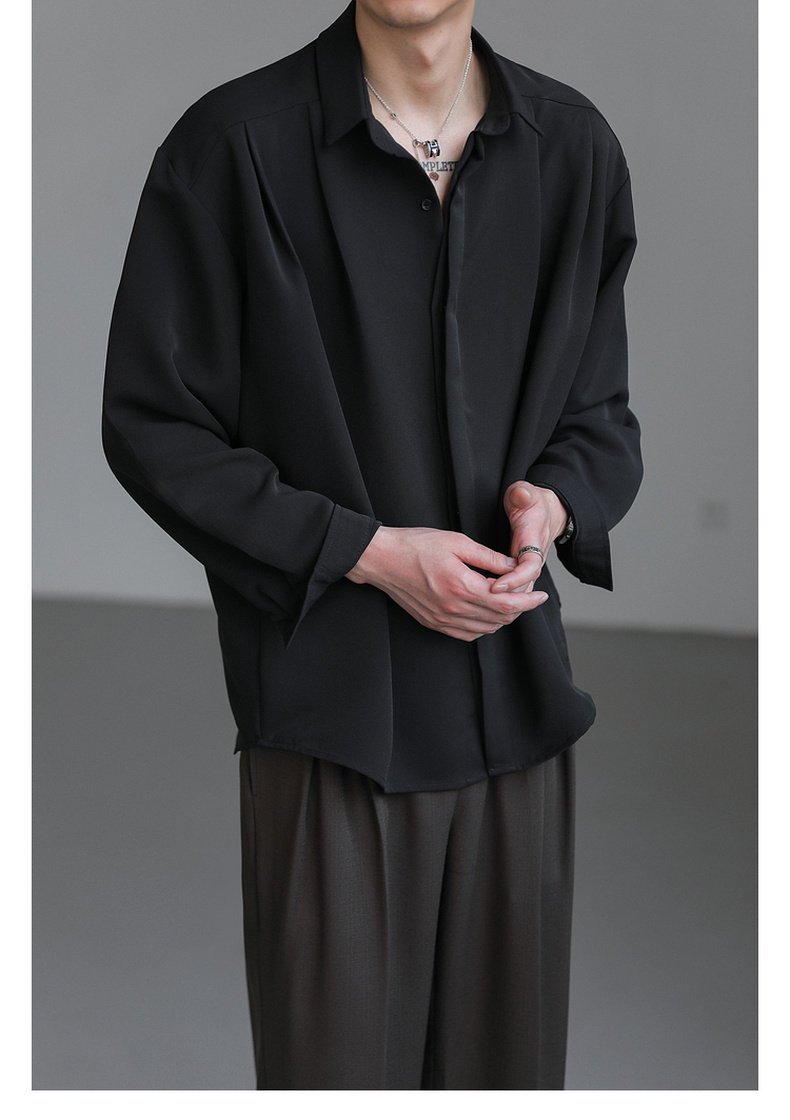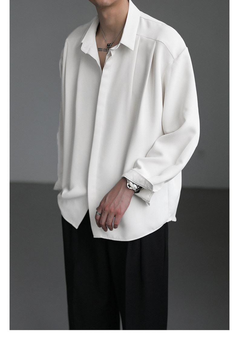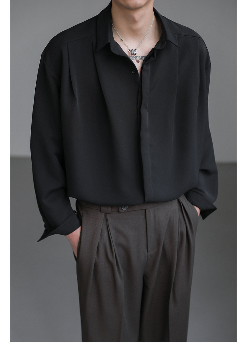 Zpz Korean Loose-Fitting Solid Color High-End Drape Long-Sleeve Shirt Men's Spring and Autumn Top Trendy Cool No-Iron Shirt