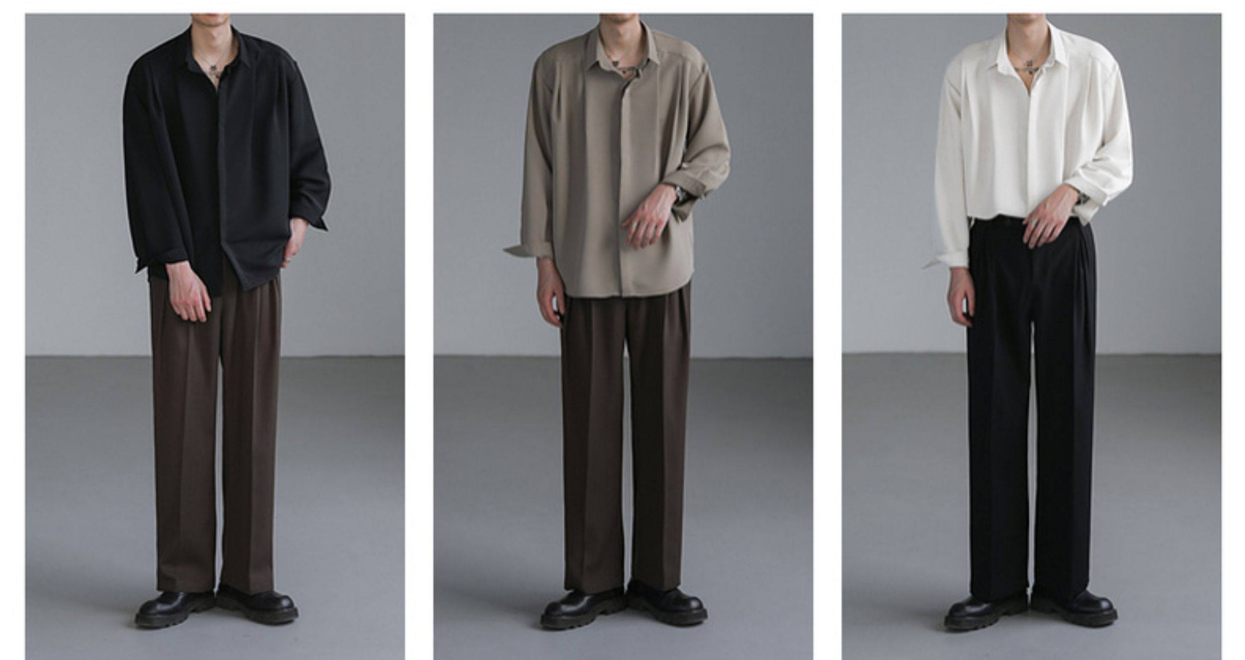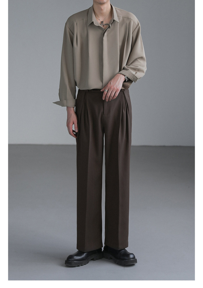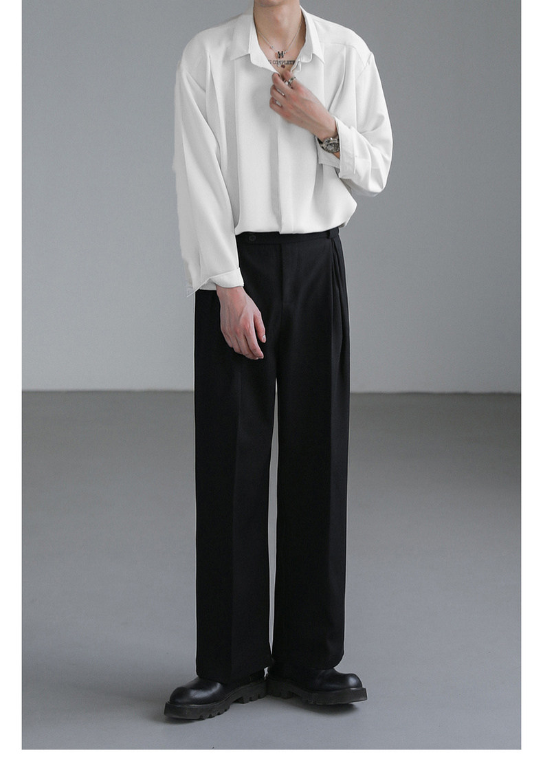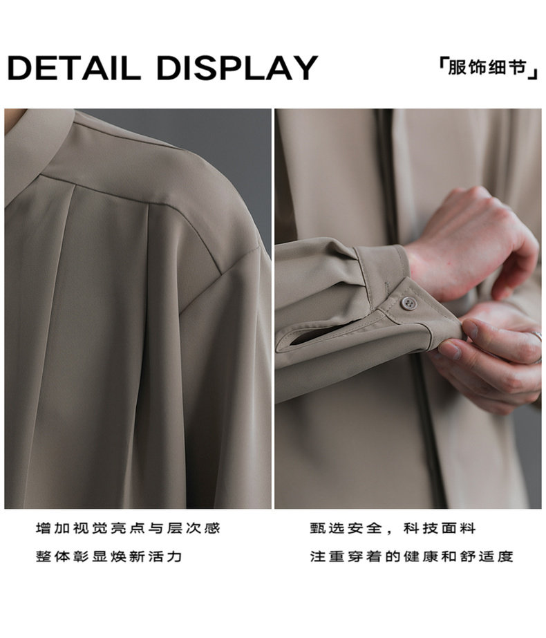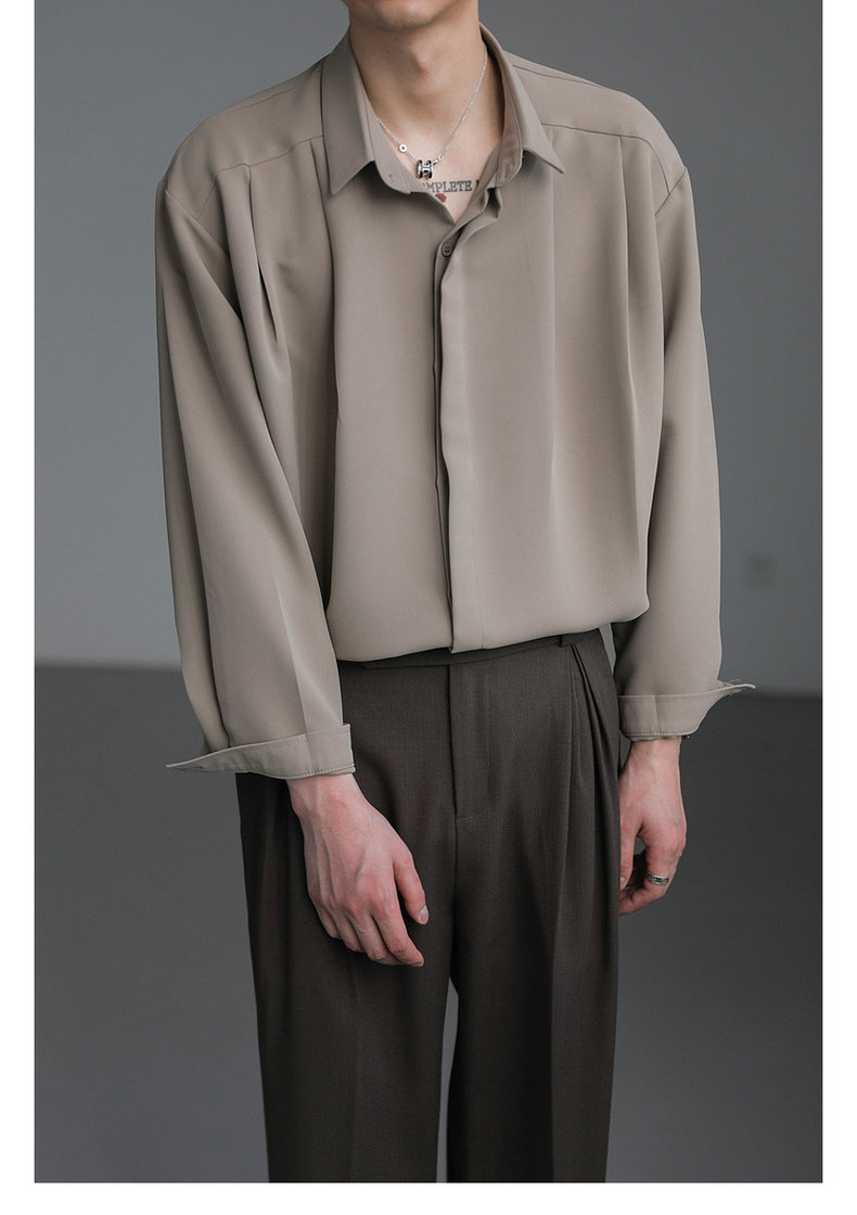 Zpz Korean Loose-Fitting Solid Color High-End Drape Long-Sleeve Shirt Men's Spring and Autumn Top Trendy Cool No-Iron Shirt
