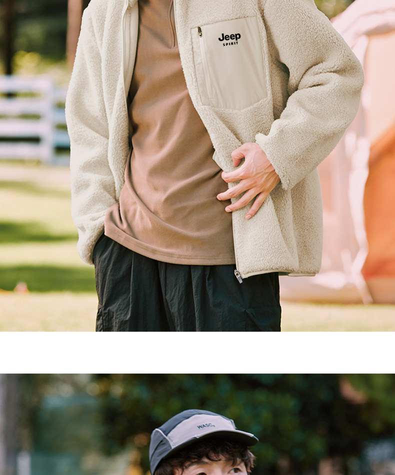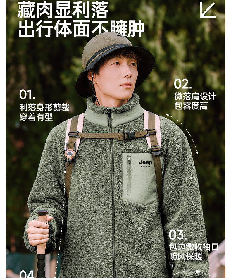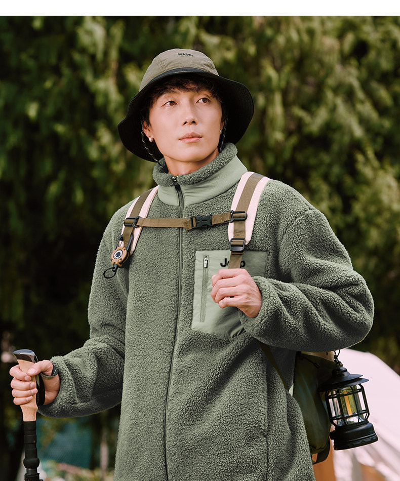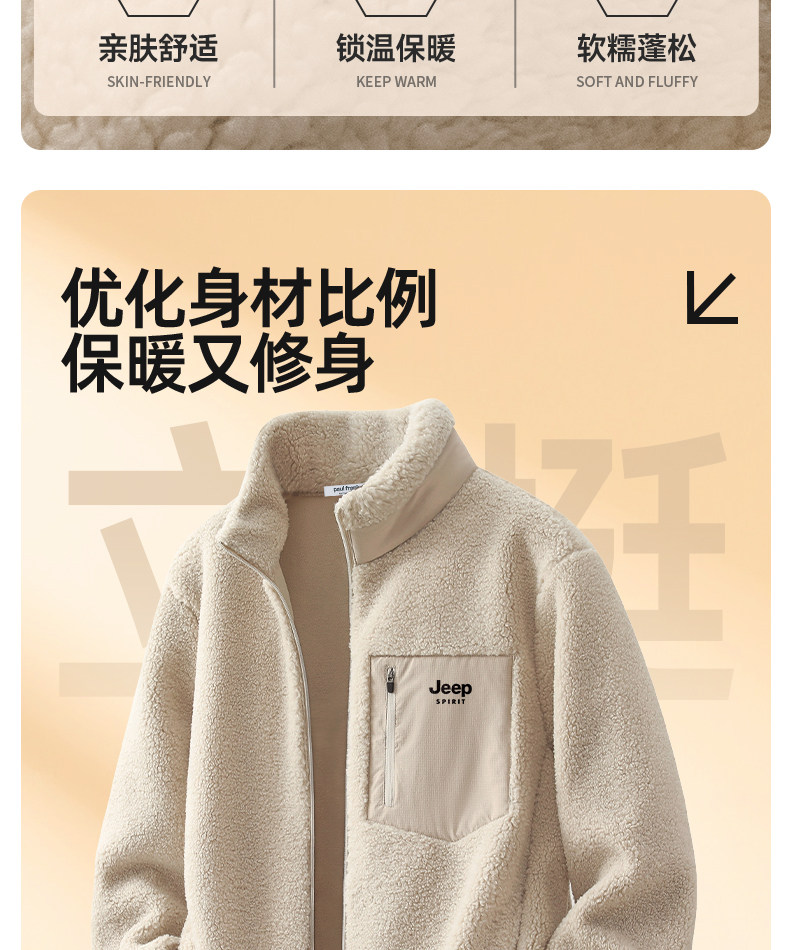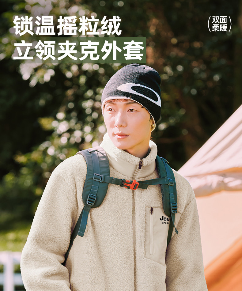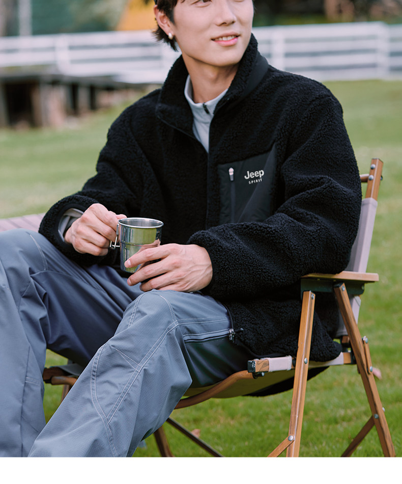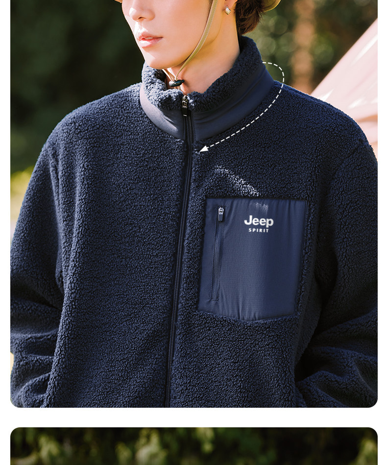 Jeep Fleece Stand-Up Collar Jacket Men's Winter Style Youth Fleece Jacket Cotton Lining L