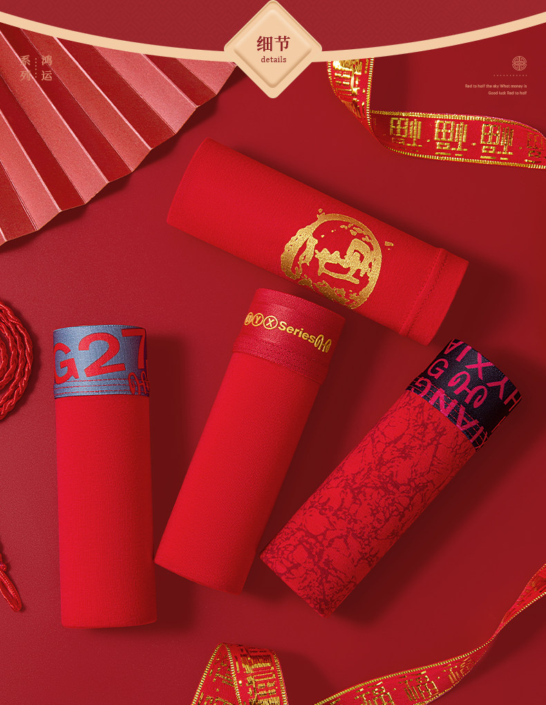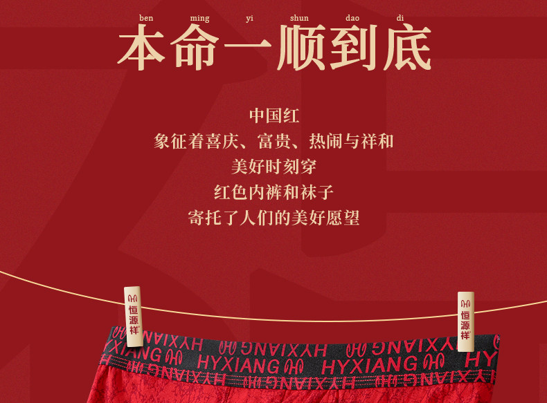 Hengyuanxiang Zodiac Year Men's Red Underwear Pure Cotton Wedding Men's Style 2026 Year of the Horse Gift Boxer Shorts