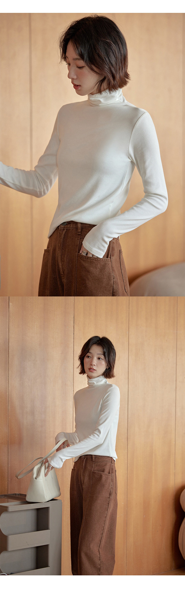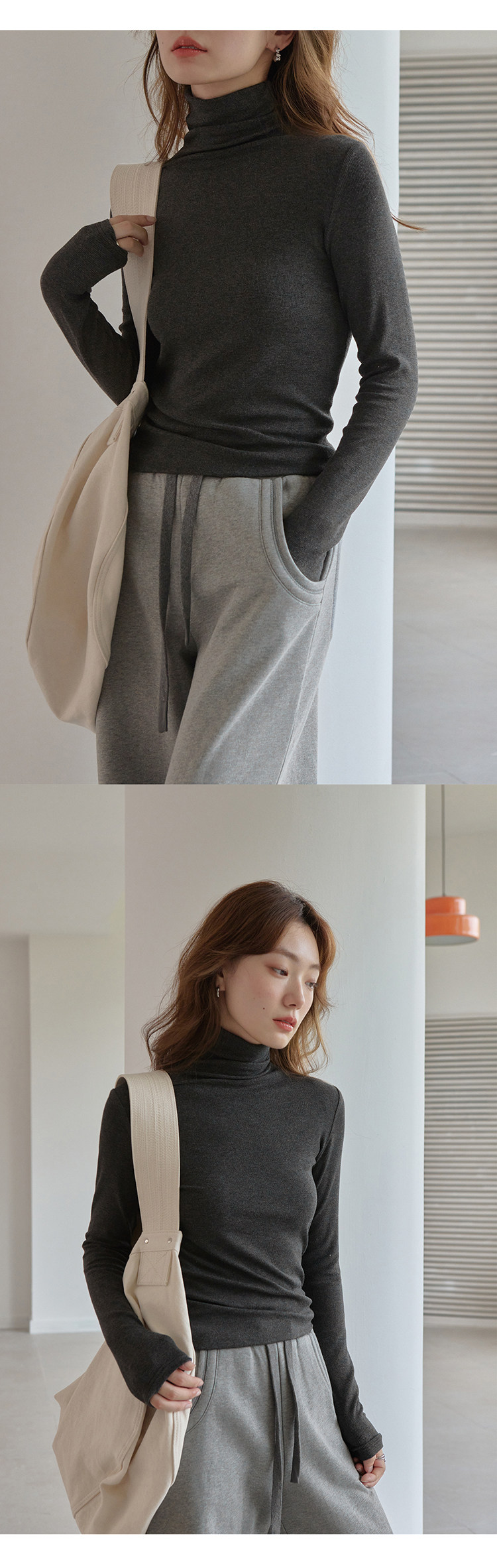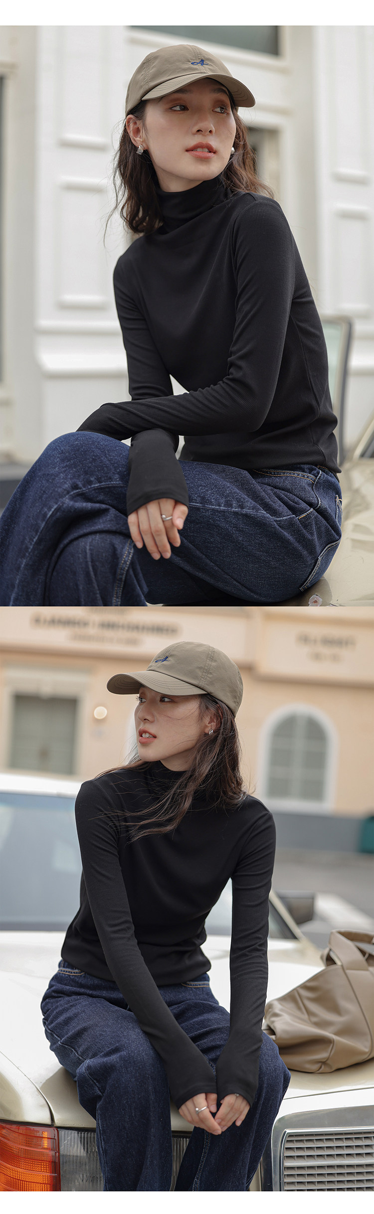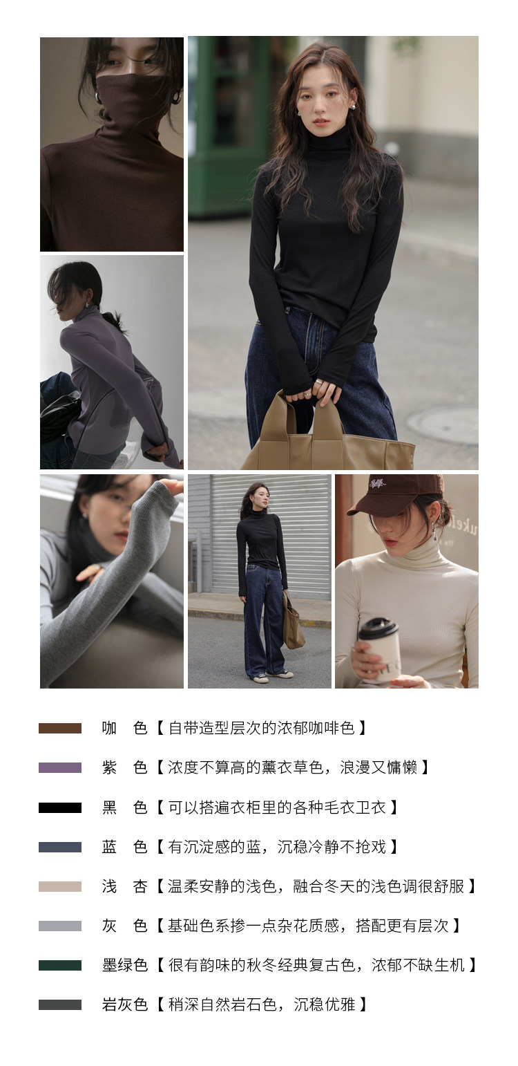 [in Stock] 1313's Ultimate Layering Piece! Multi-Colored High-Neck Slim Fit Base Shirt for Autumn and Winter, Black Slimming Long-Sleeve T-Shirt