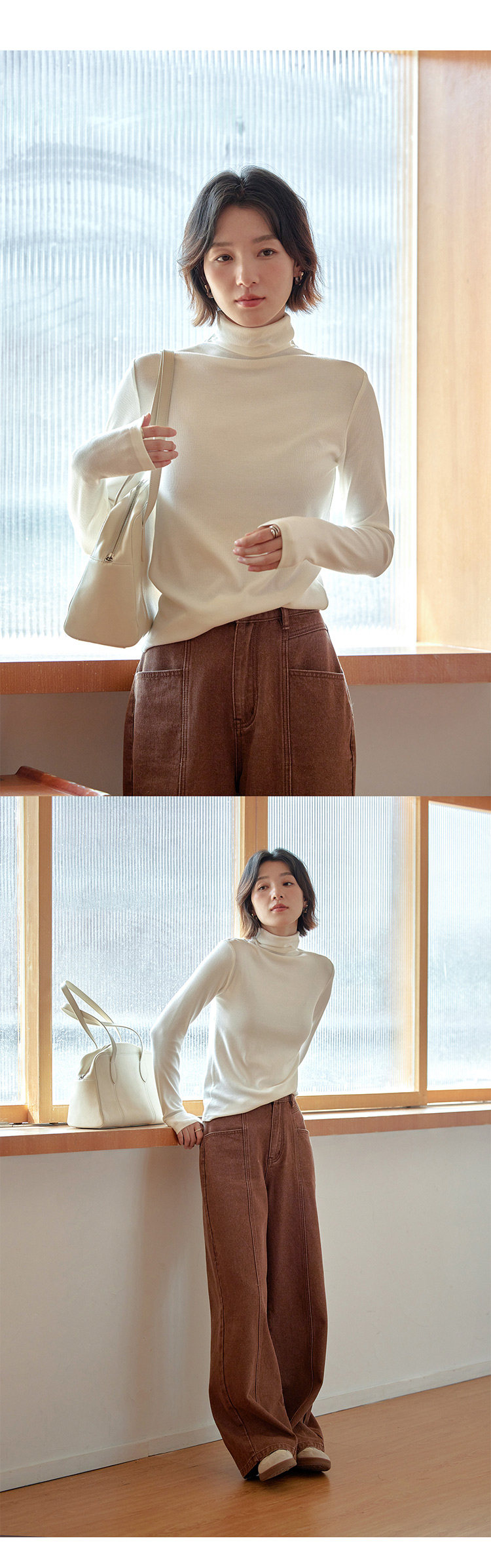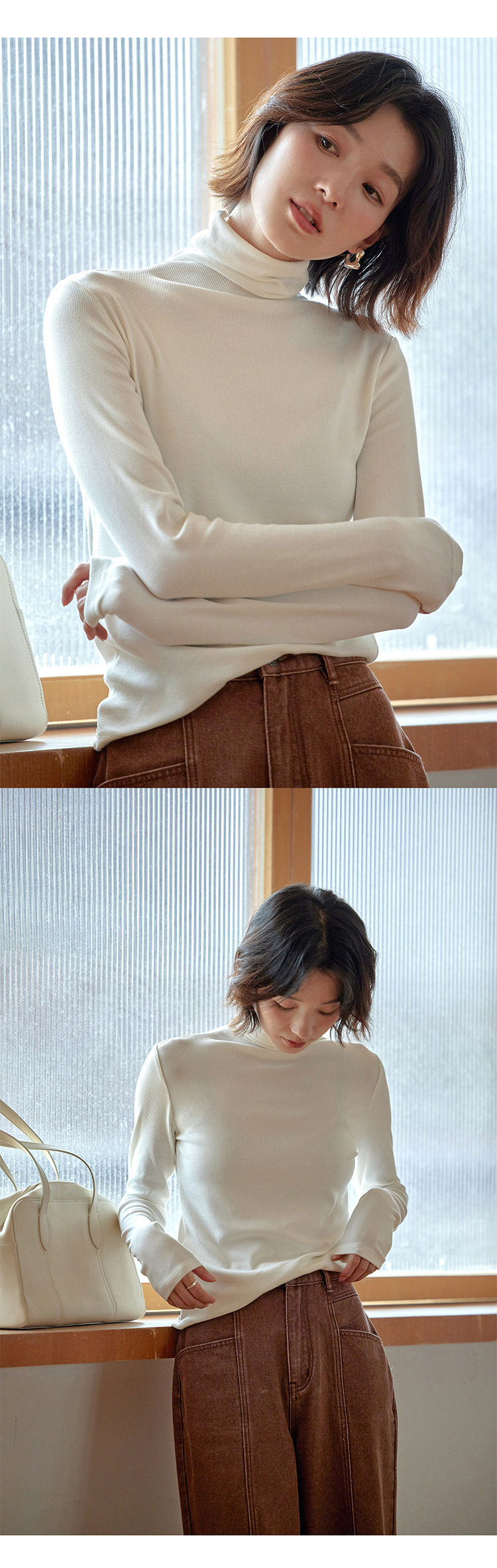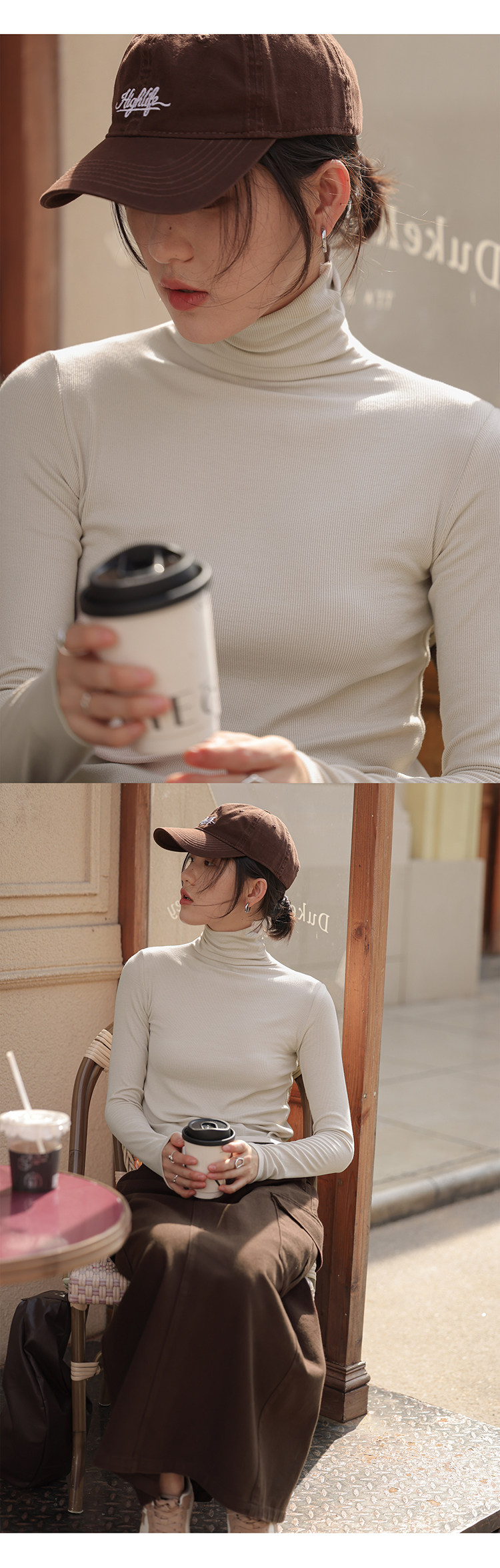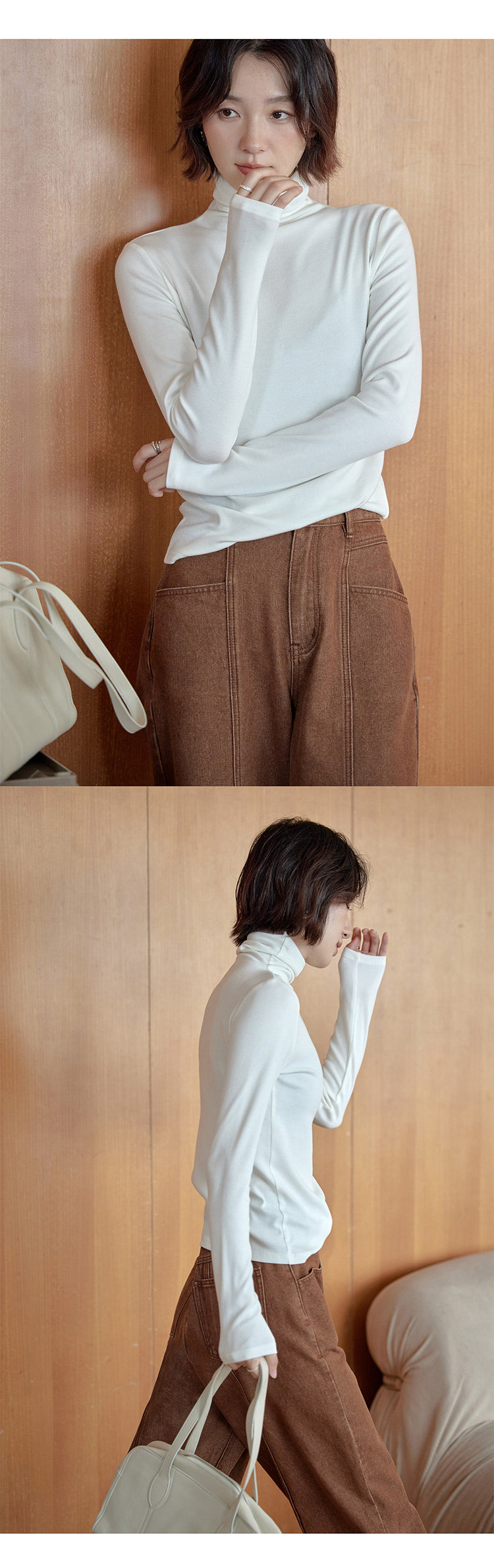 [in Stock] 1313's Ultimate Layering Piece! Multi-Colored High-Neck Slim Fit Base Shirt for Autumn and Winter, Black Slimming Long-Sleeve T-Shirt