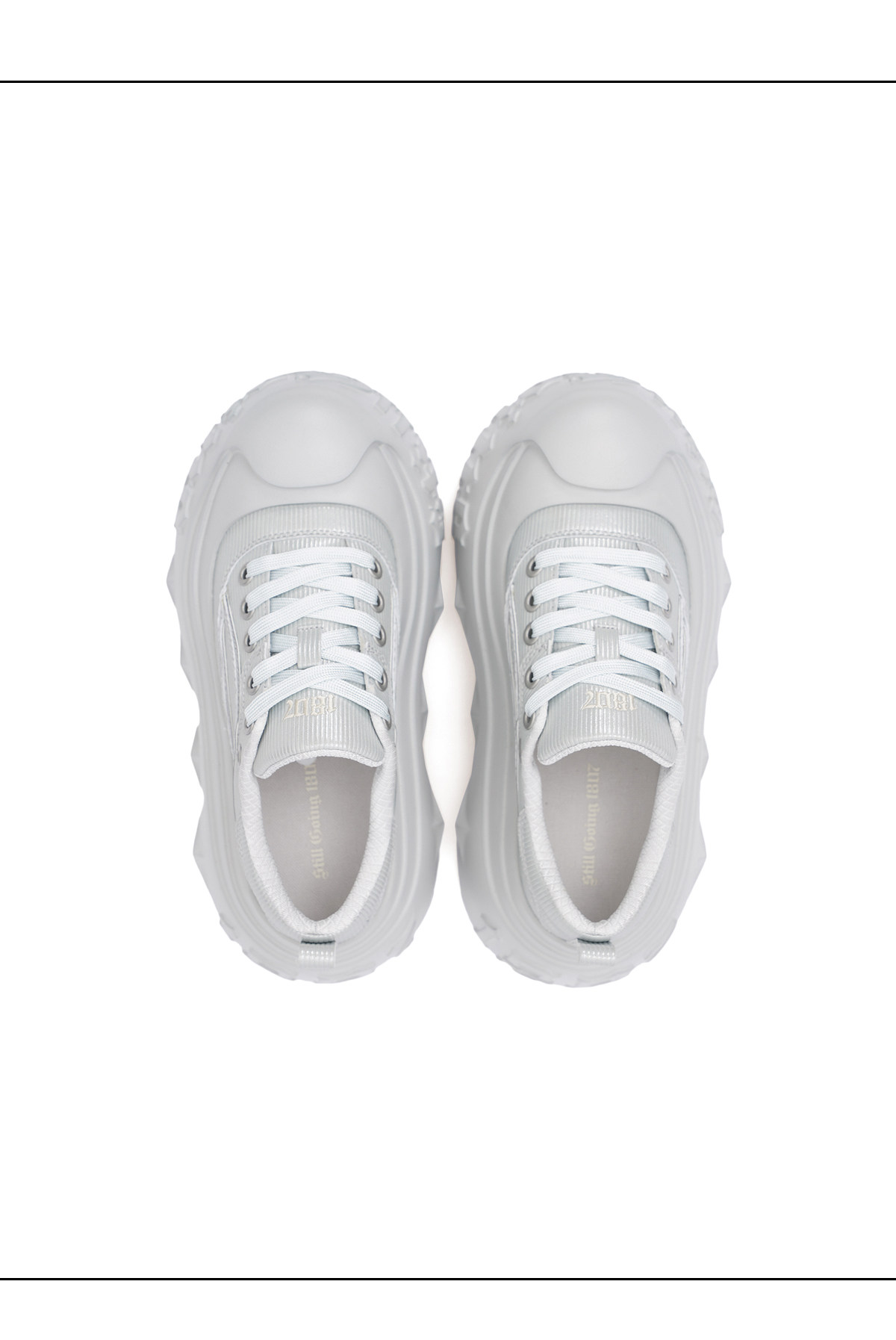 1807Inf-008 Gothic Lace up Gothic Platform Canvas Shoes in Gray and Silver, American Casual Style, Height-Increasing