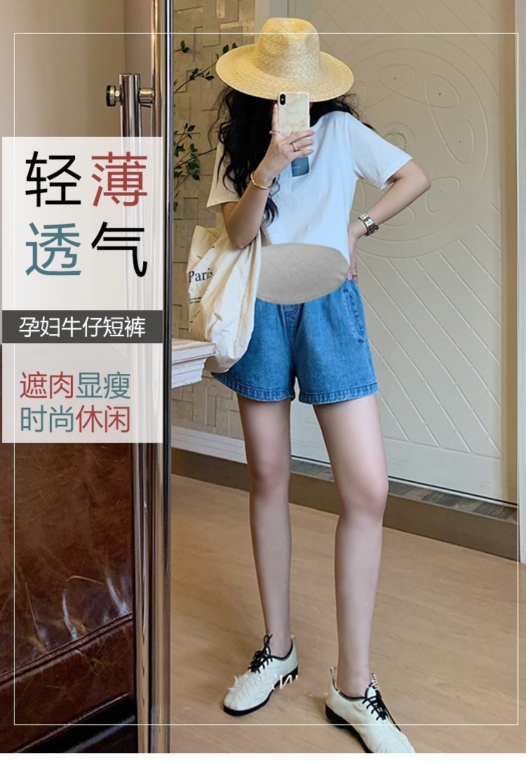 2025 Summer Thin Maternity Pants Plus Size Denim Shorts Loose and Stylish Slimming Wide-Leg Pants Fashionable Outerwear Mid-Length Pants