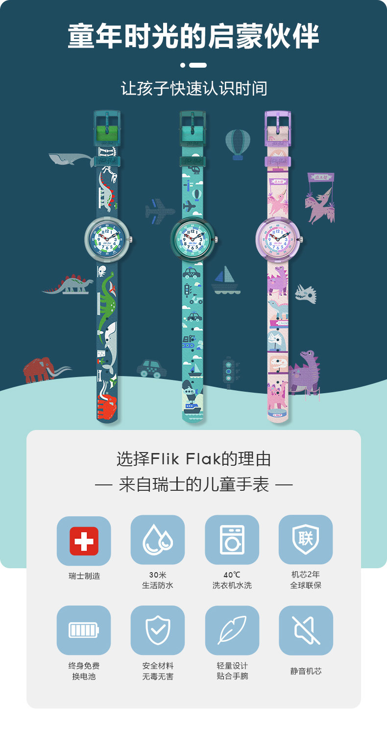 Flik Flak Swiss Children's Watch Silent Pointer Cartoon Quartz Watch for Boys and Girls New Year's Gift