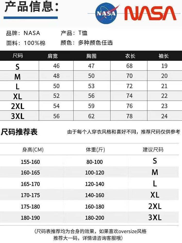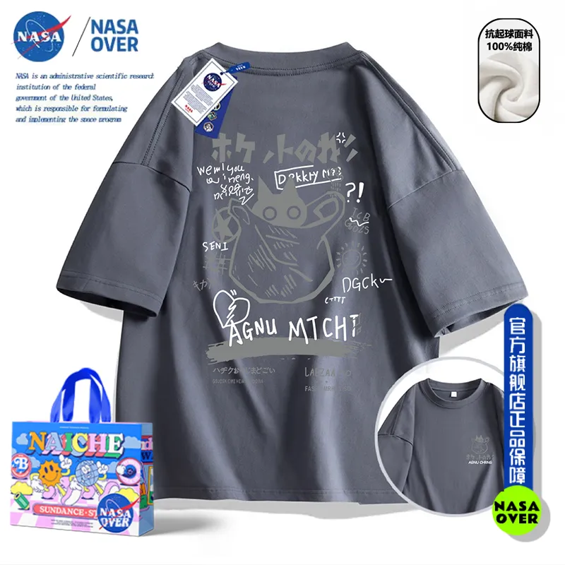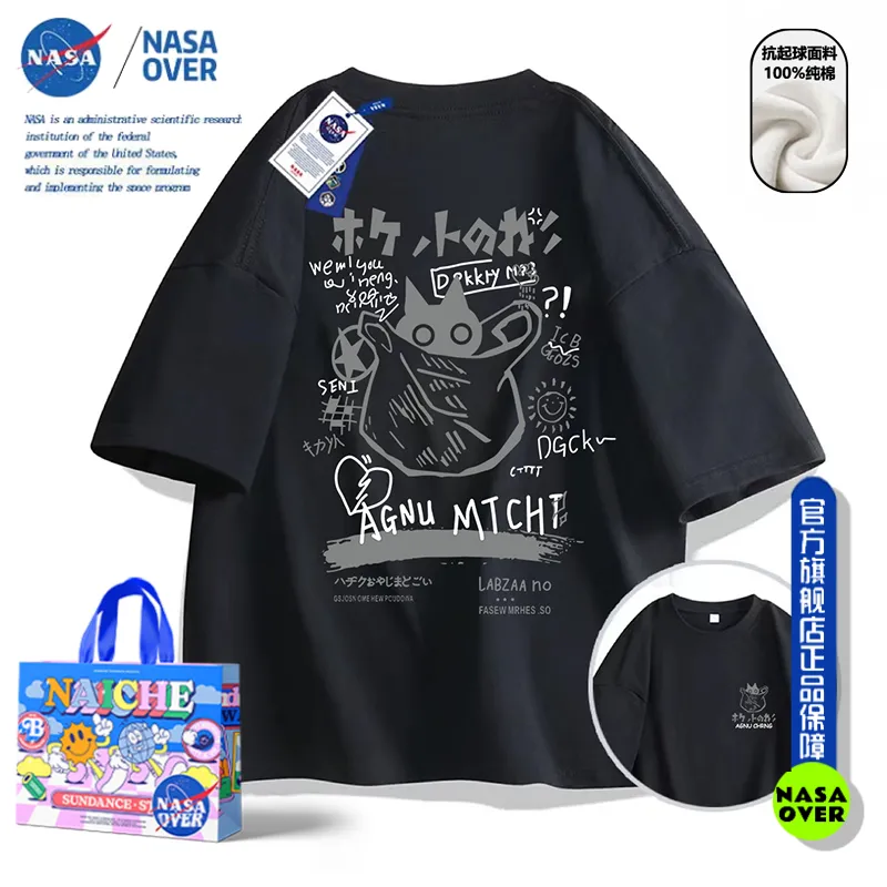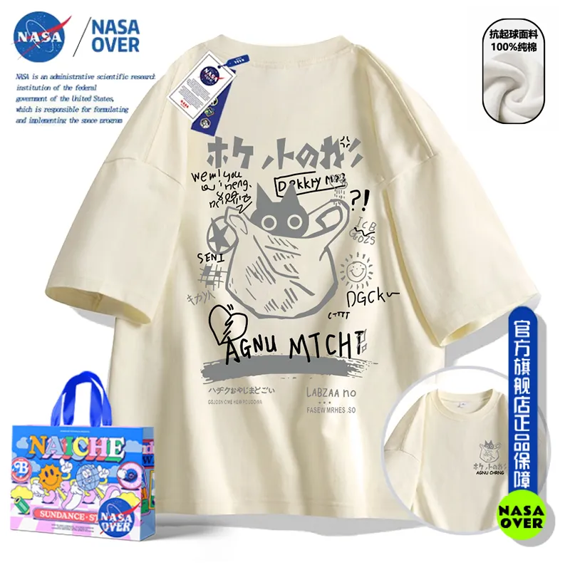Nasa Co-Branded American High Street Pure Cotton Heavyweight Short-Sleeved T-Shirt for Men and Women 2024 Summer New Loose Couple Tops