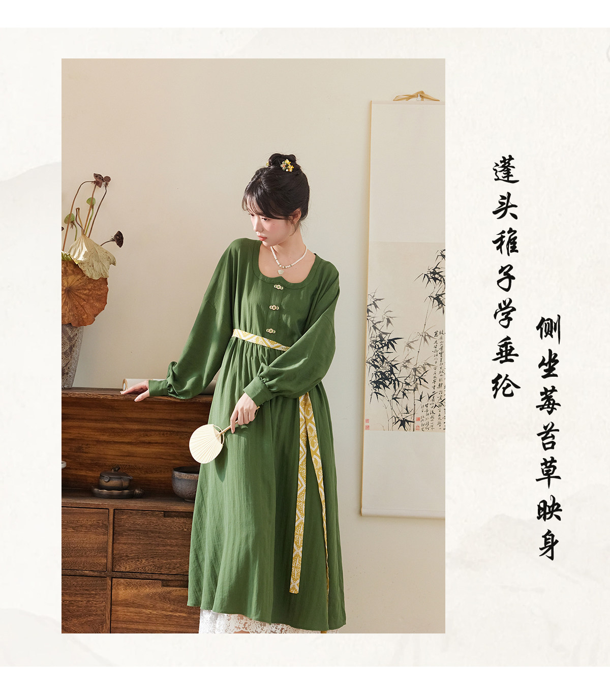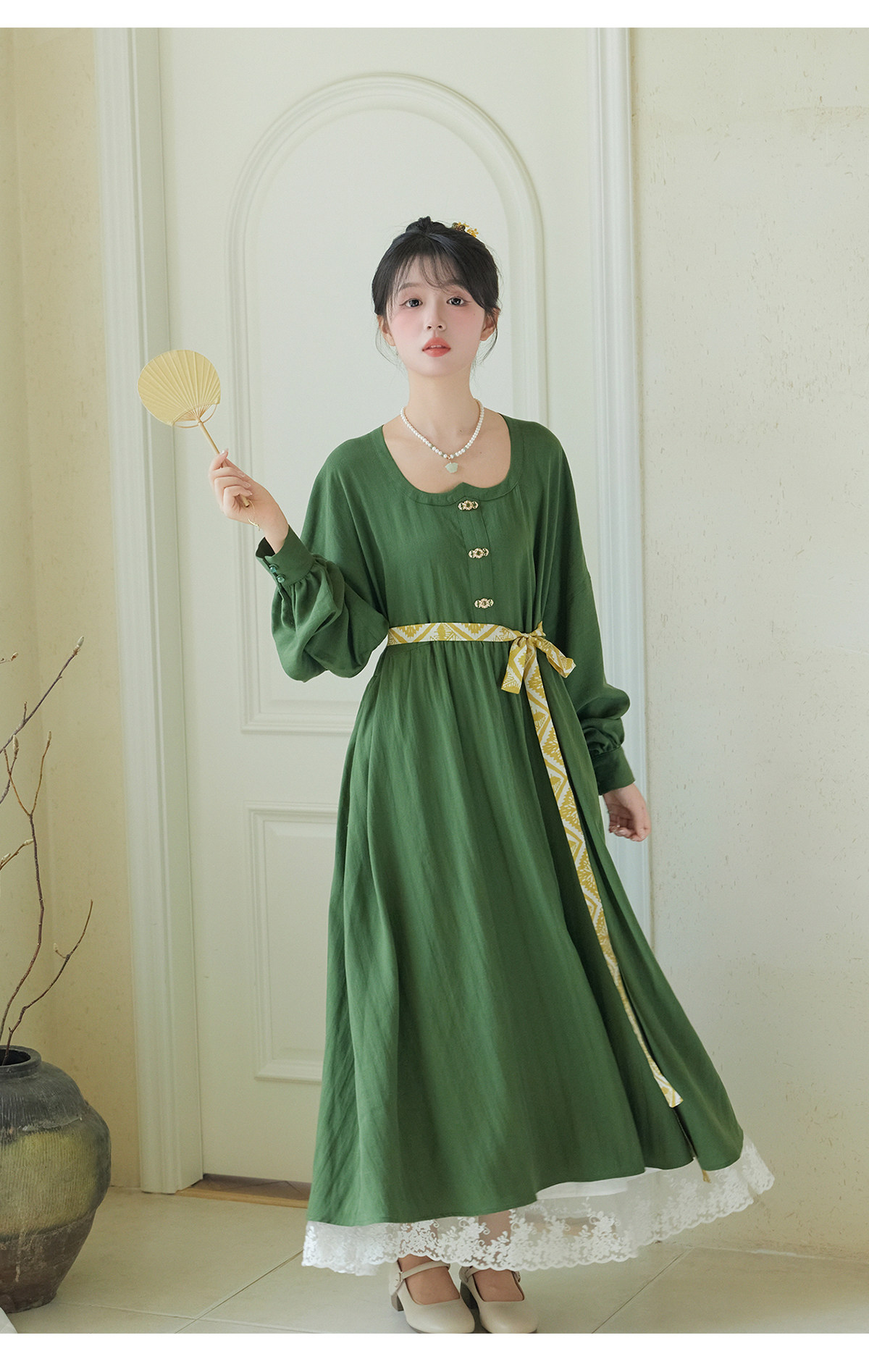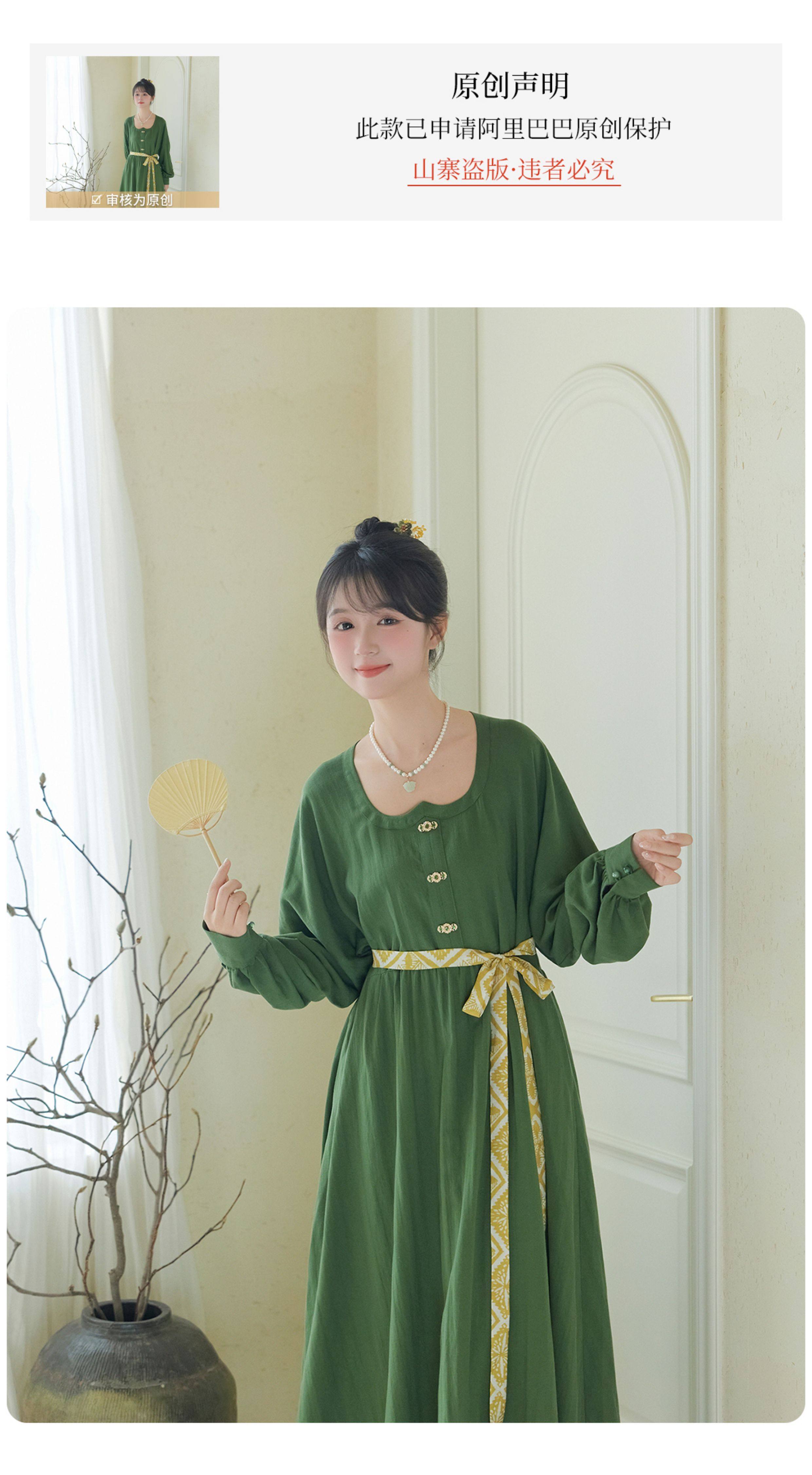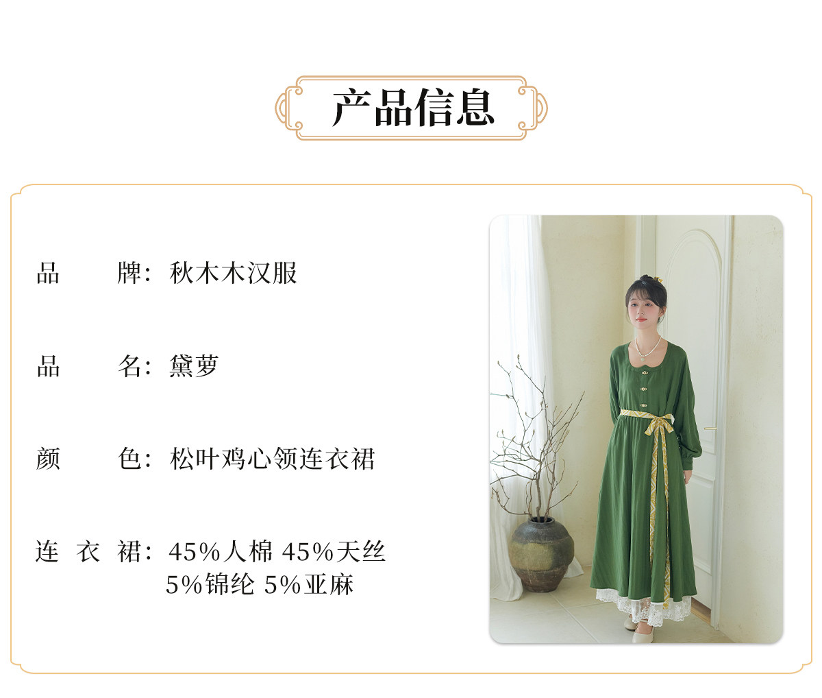Qi Mumu Hanfu [Dailuo] Chicken-Crow Collar Lantern Sleeves Printed Tie Original Modified Slimming Dress