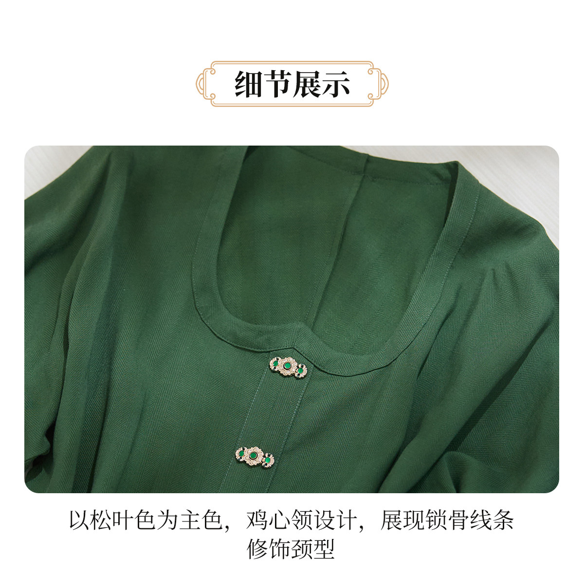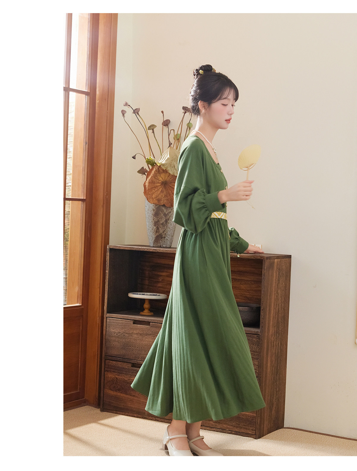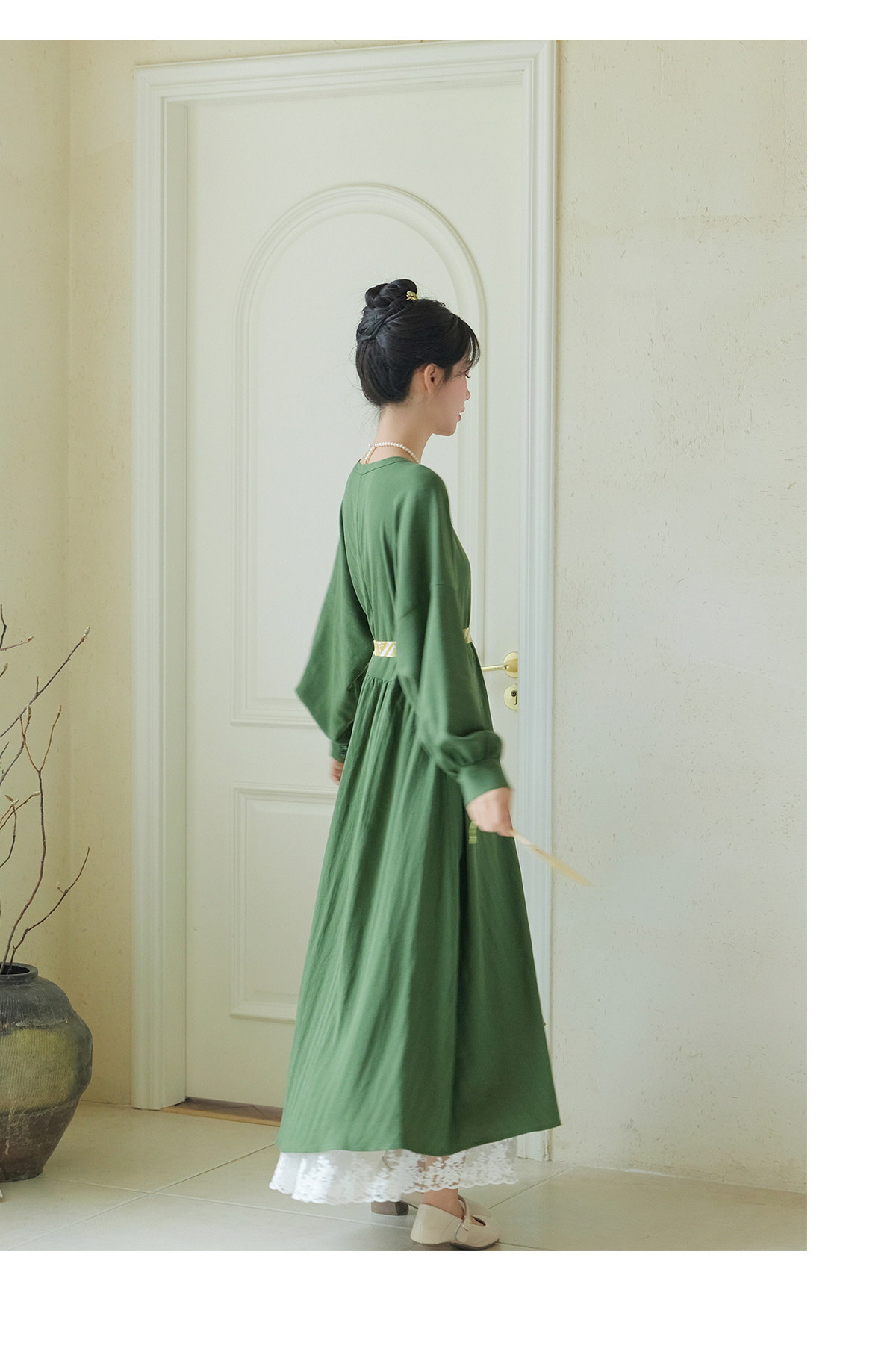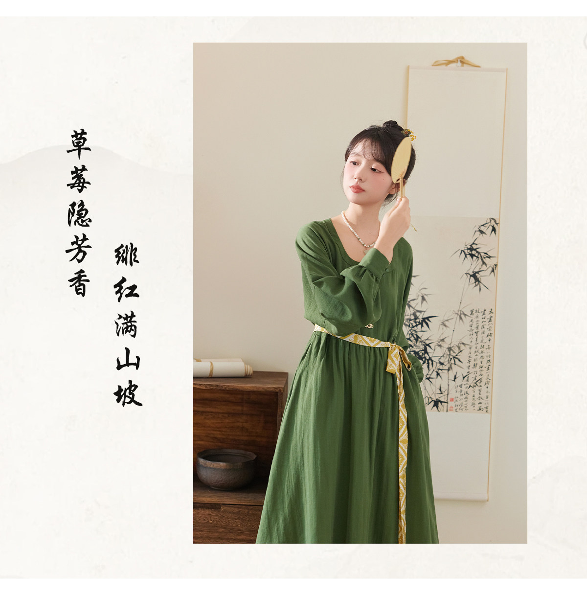 Qi Mumu Hanfu [Dailuo] Chicken-Crow Collar Lantern Sleeves Printed Tie Original Modified Slimming Dress