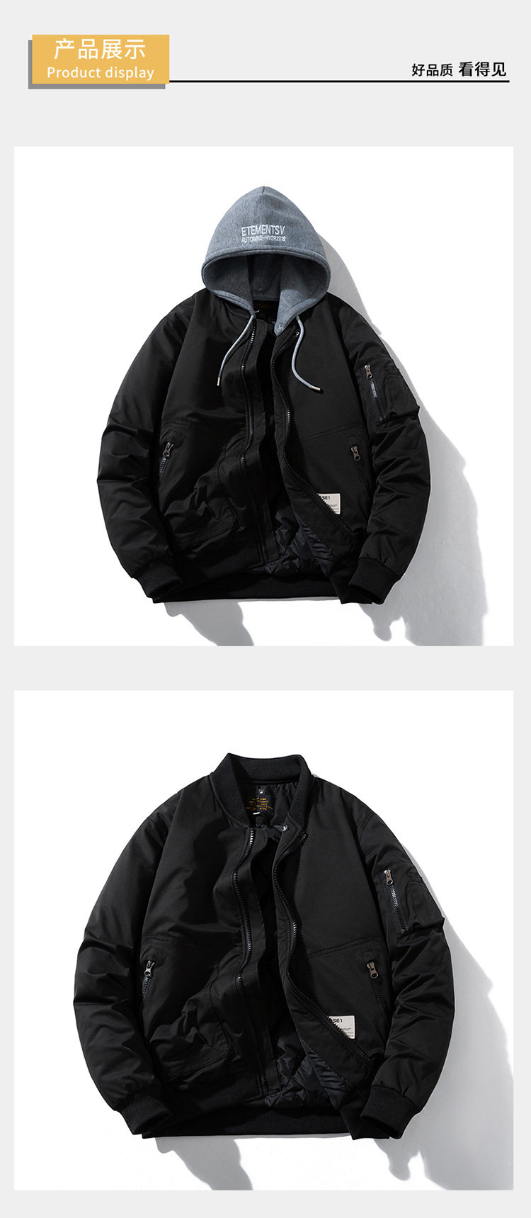 American Retro Ma1 Bomber Jacket, Cotton Jacket, Thickeneded Cotton Jacket for Men and Women, Baseball Uniform, Military Green Work Jacket
