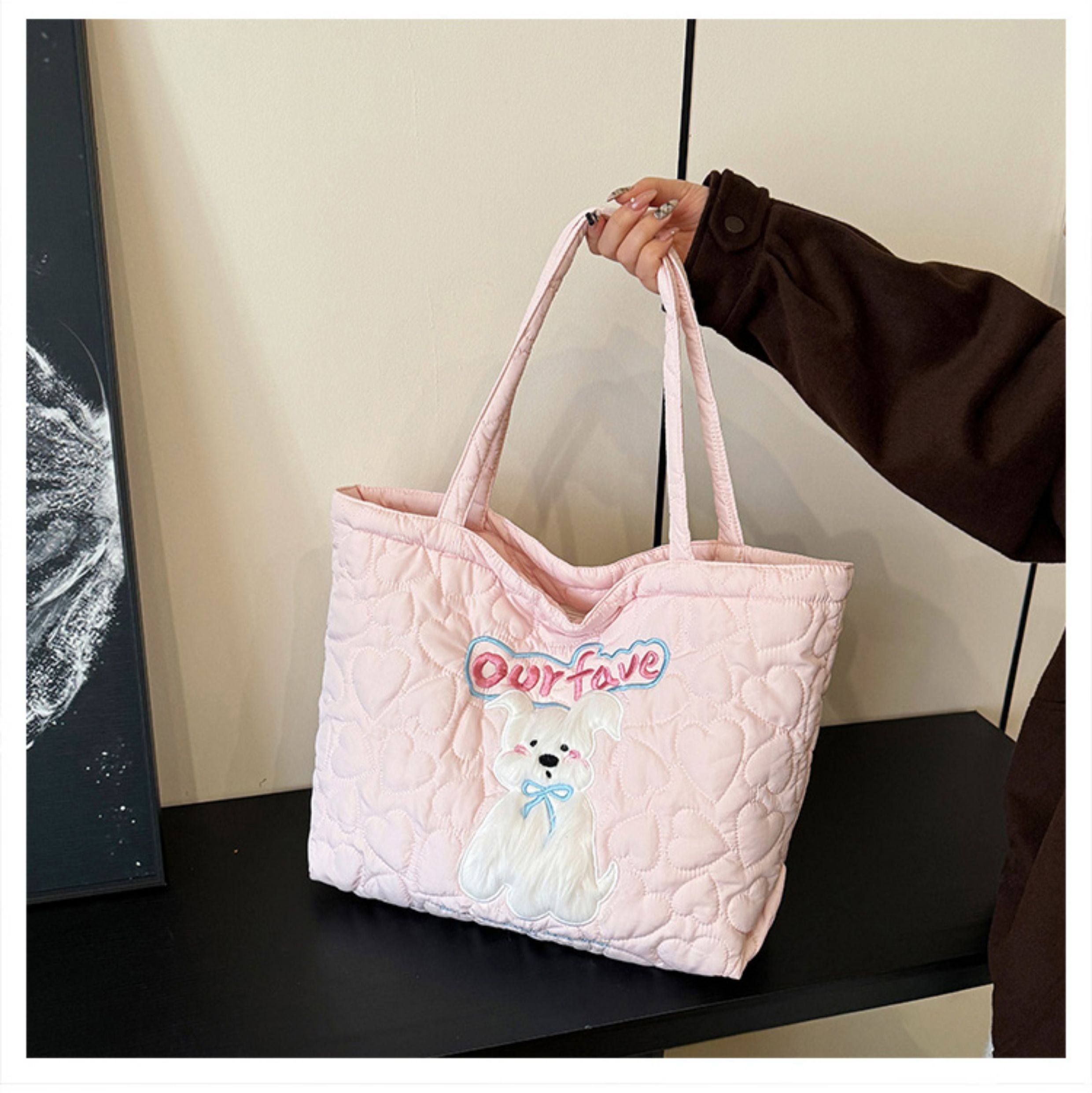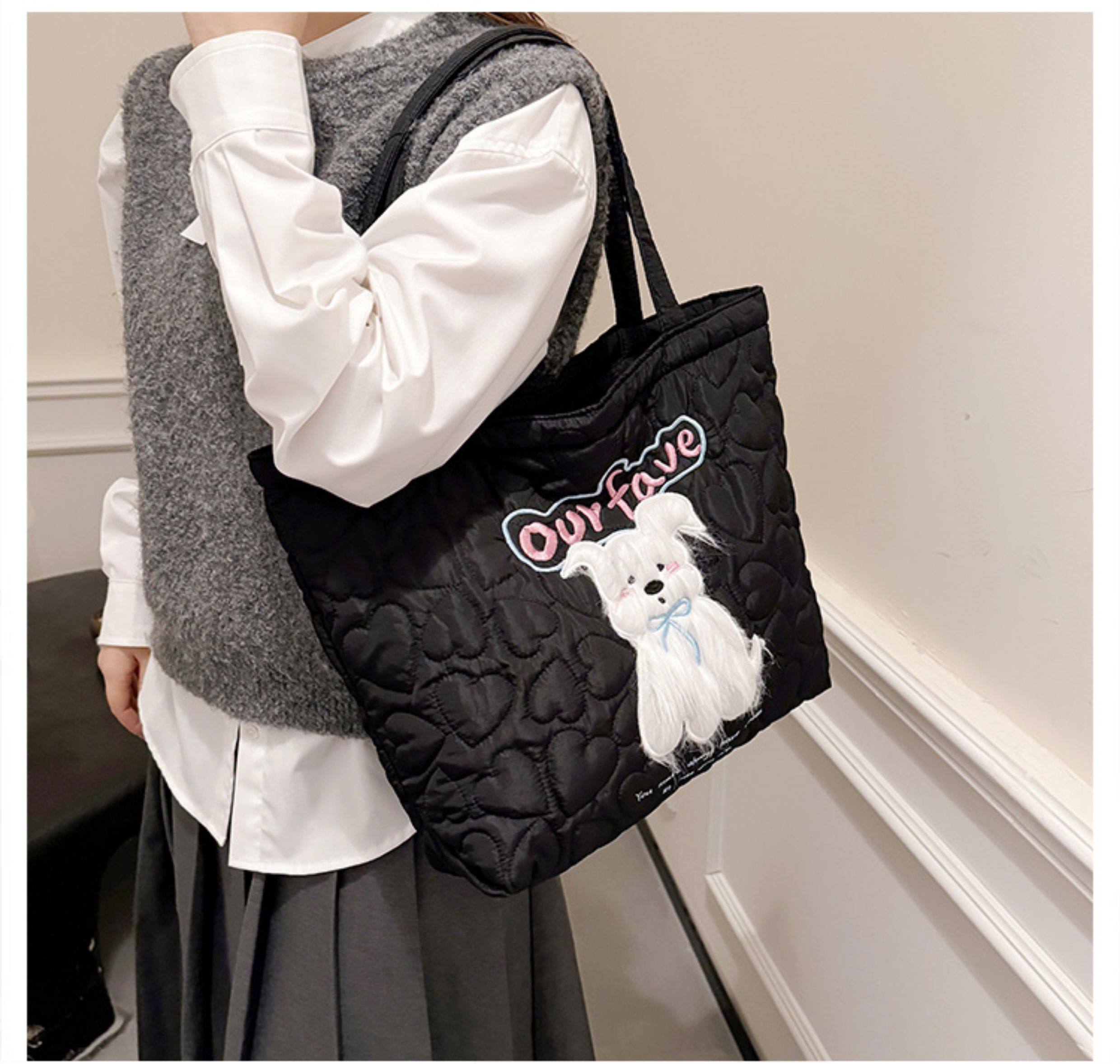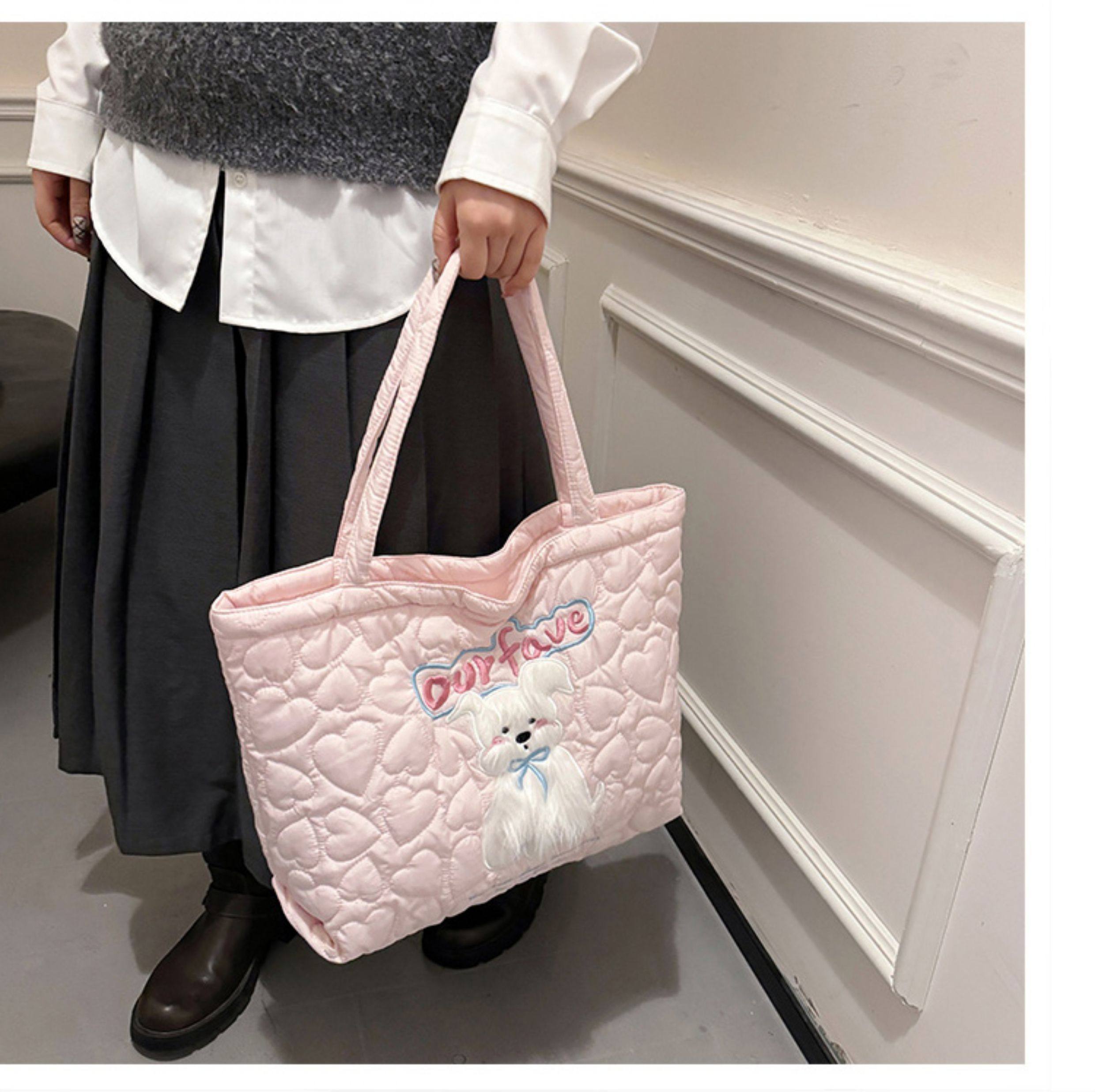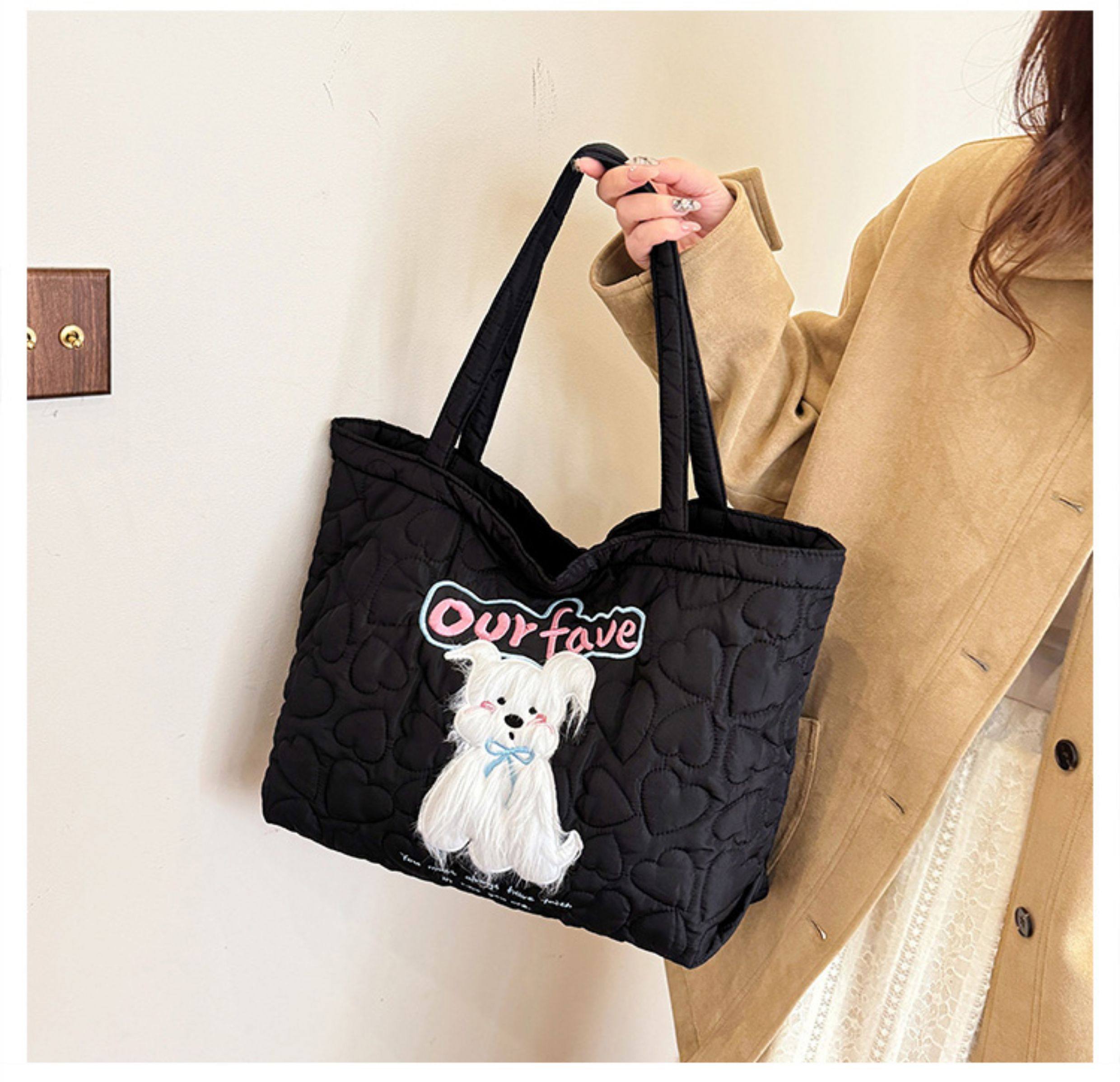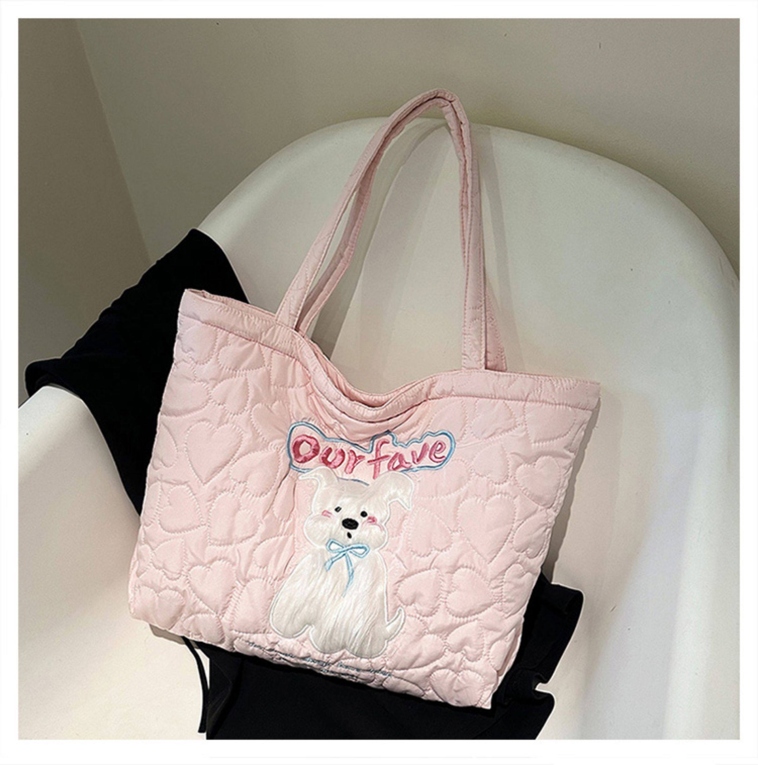 2025 New Large-Capacity Commuter Tote Bag for Women with Cartoon Embroidery, Casual Crossbody Bag, Lightweight, Versatile and Cute Shoulder Bag