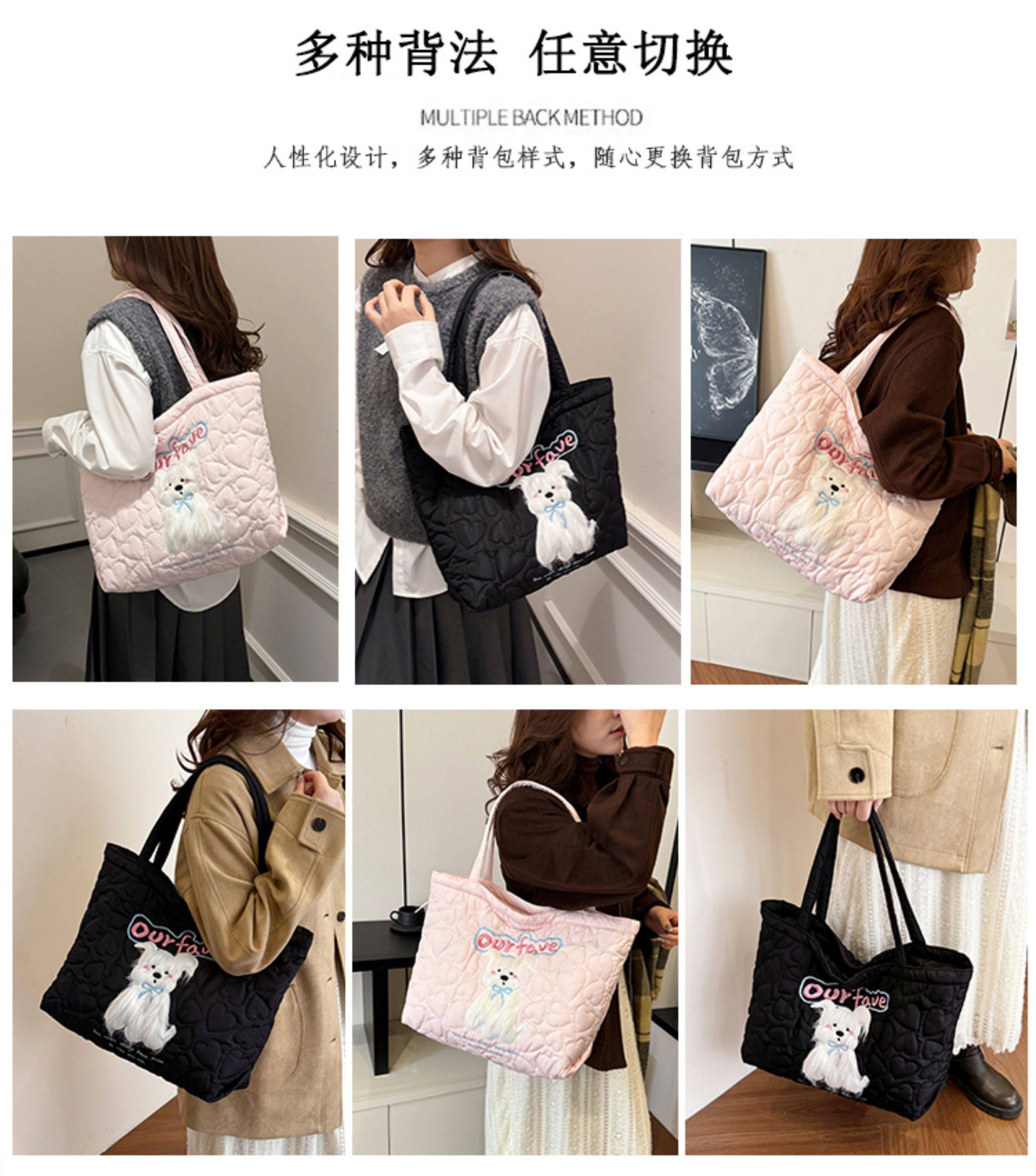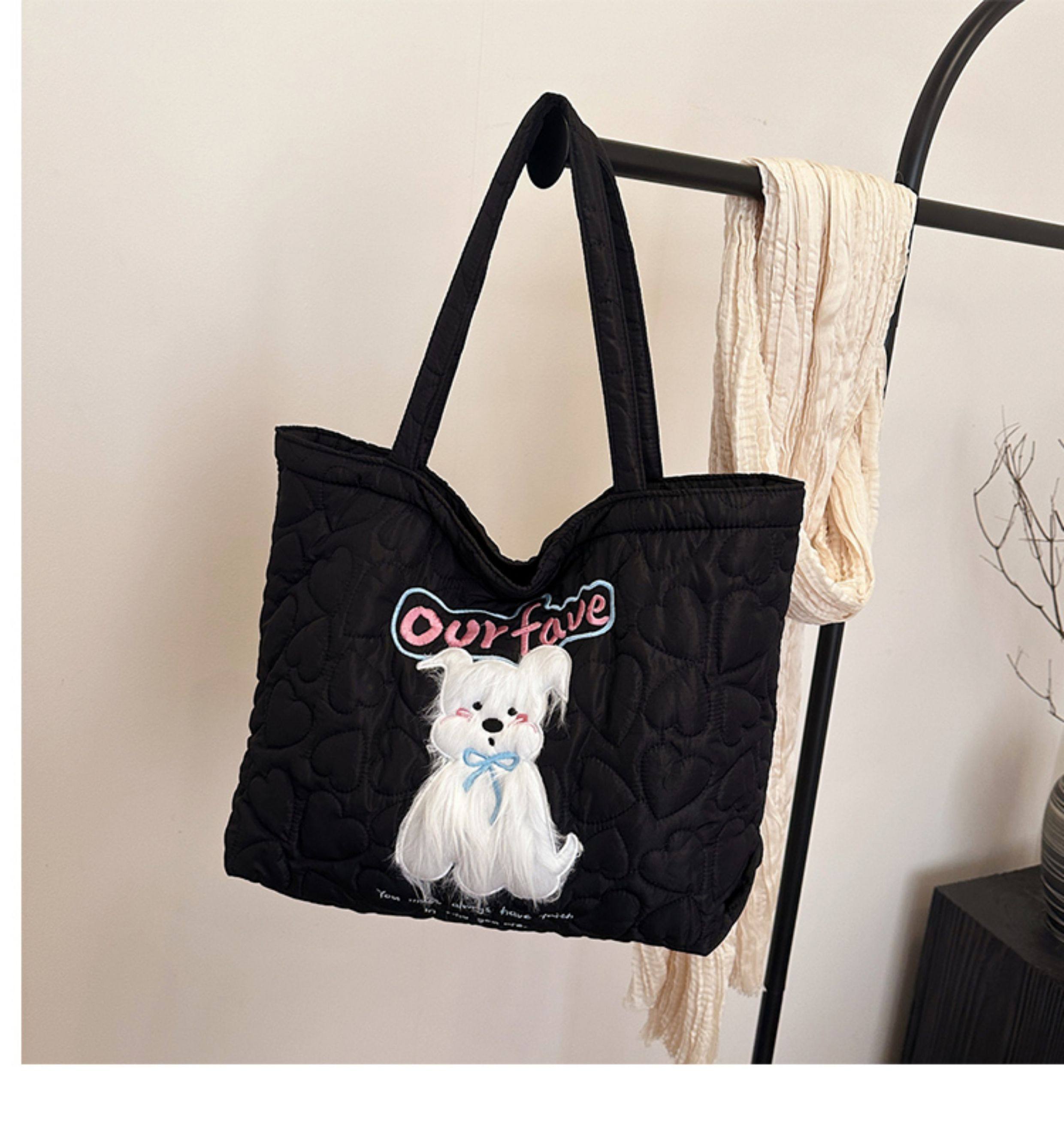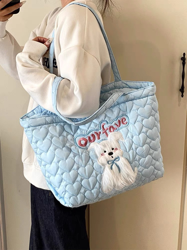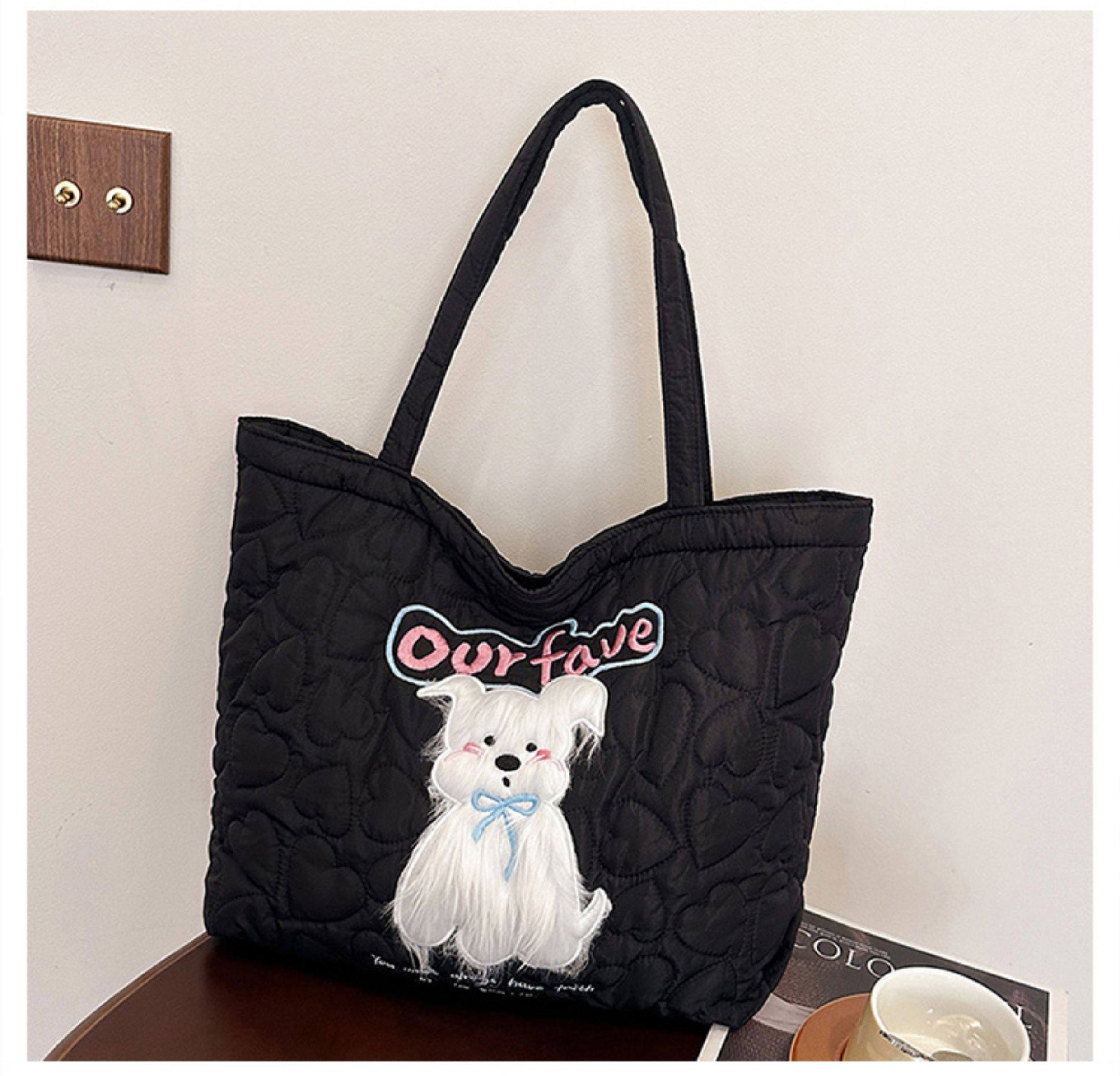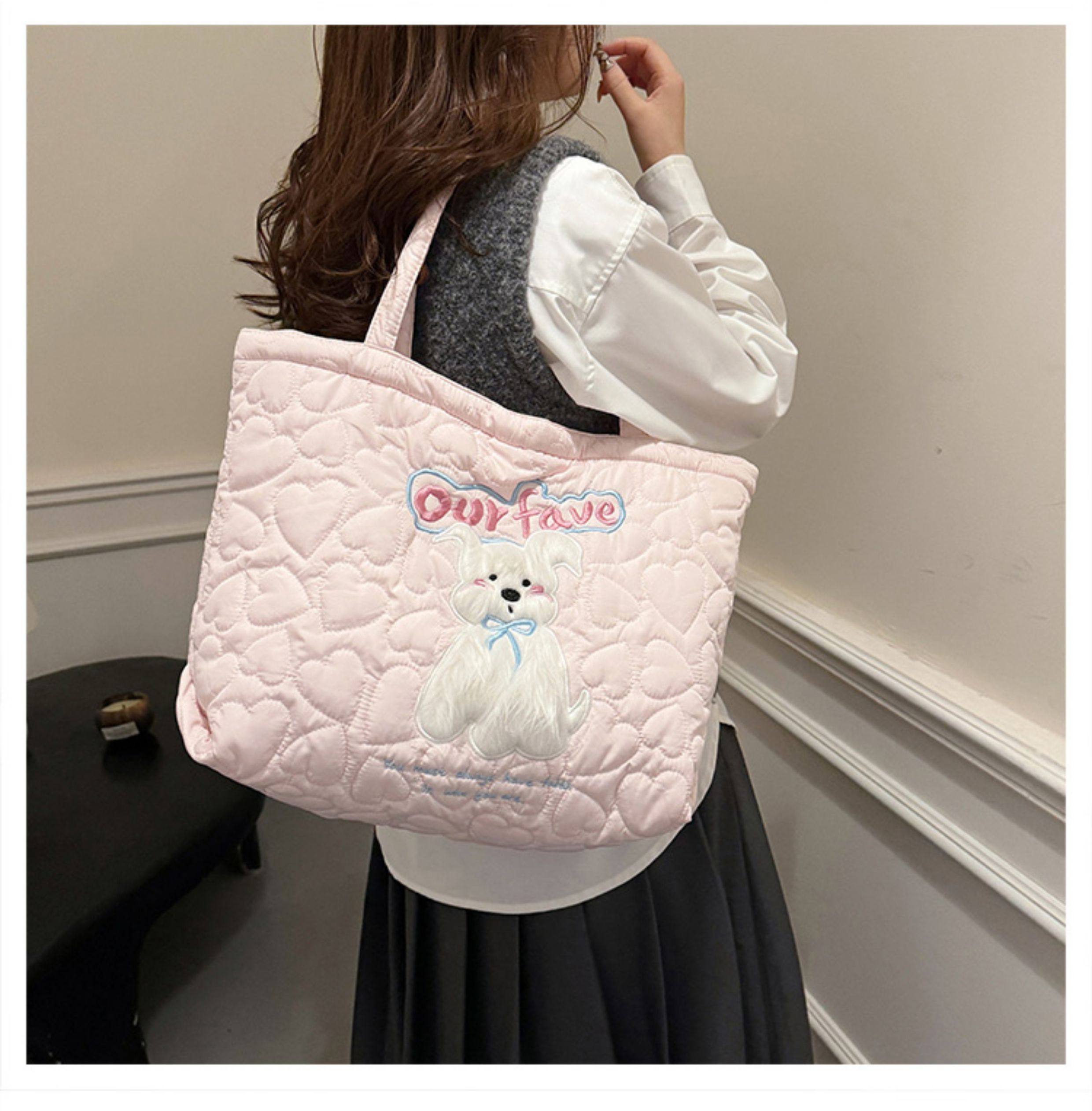 2025 New Large-Capacity Commuter Tote Bag for Women with Cartoon Embroidery, Casual Crossbody Bag, Lightweight, Versatile and Cute Shoulder Bag