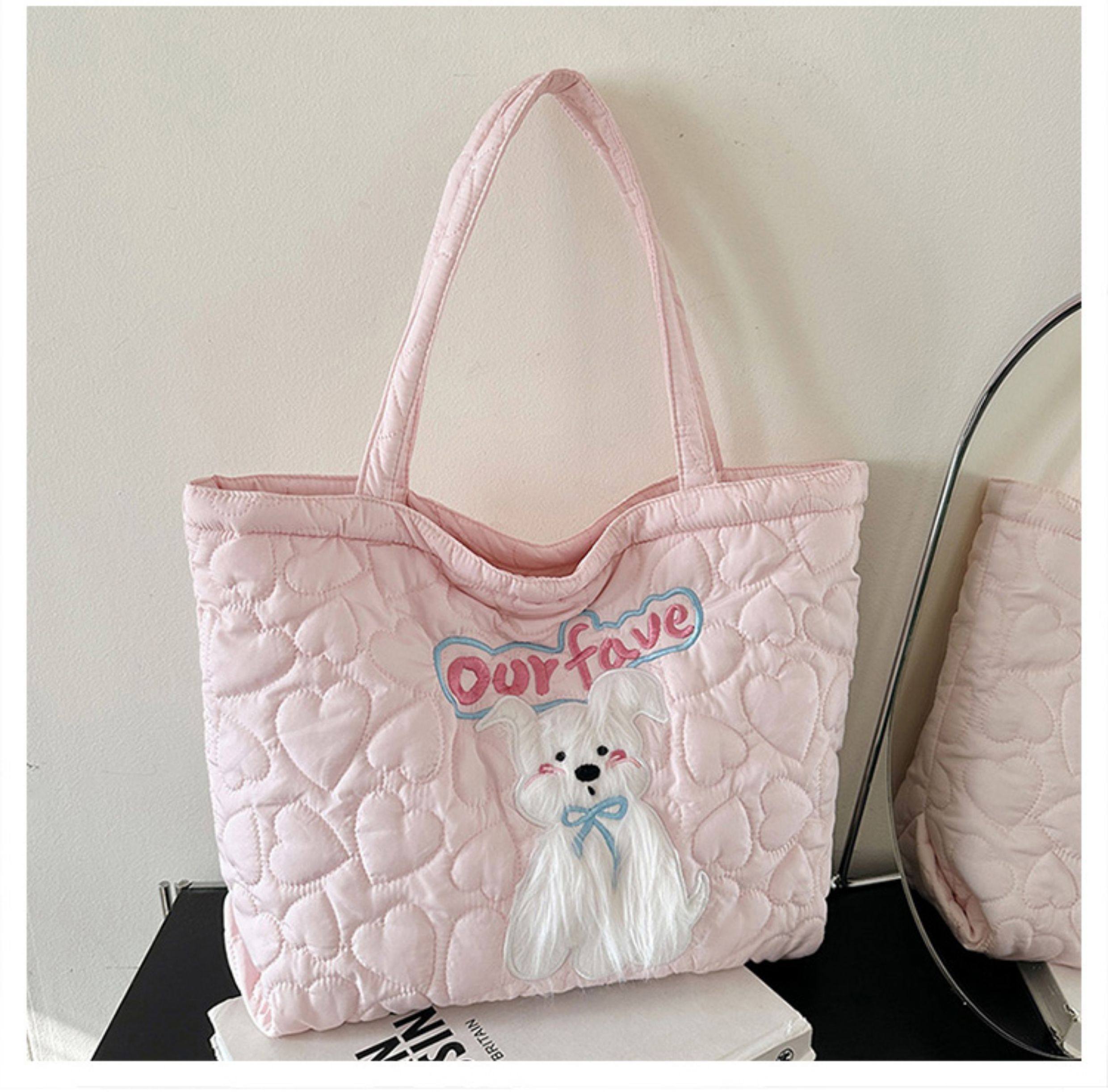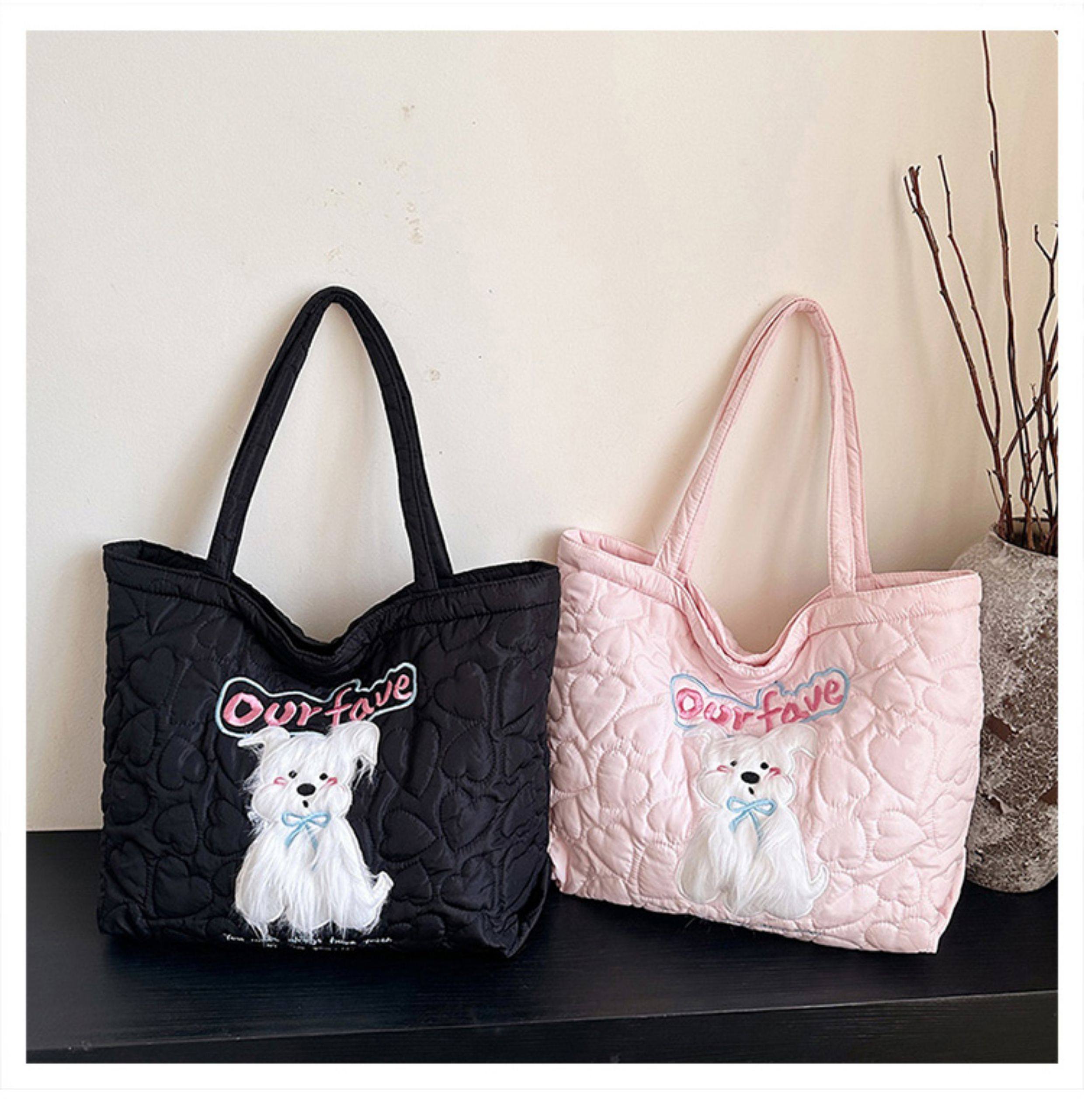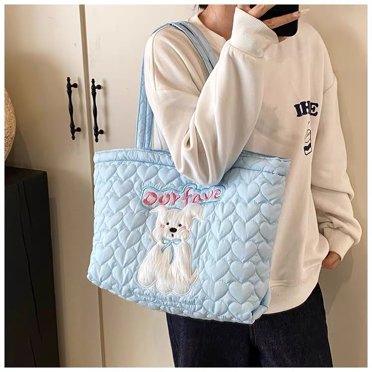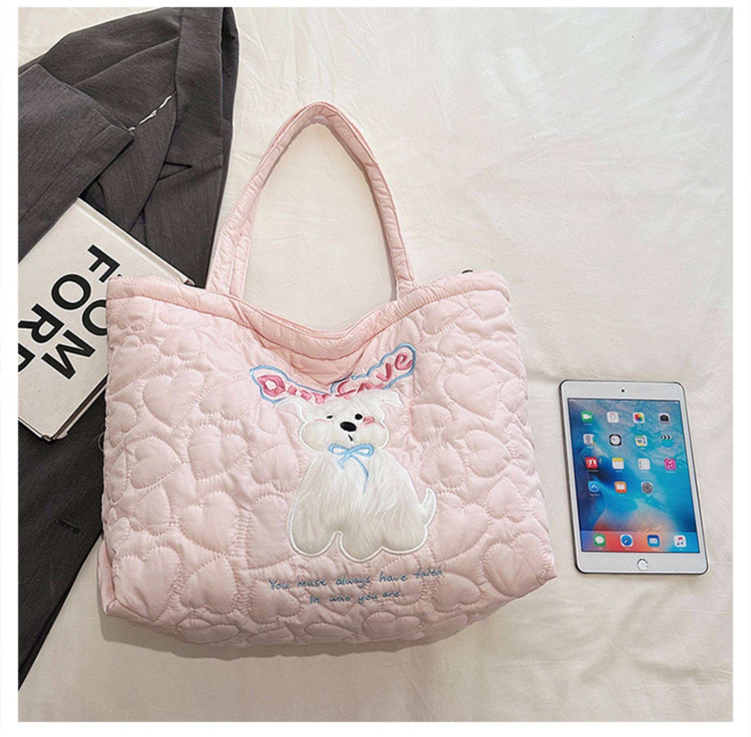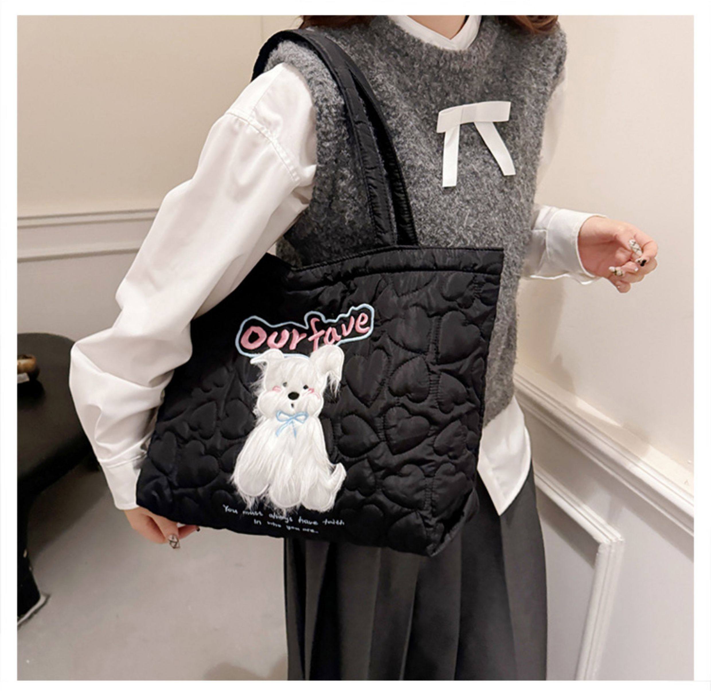 2025 New Large-Capacity Commuter Tote Bag for Women with Cartoon Embroidery, Casual Crossbody Bag, Lightweight, Versatile and Cute Shoulder Bag